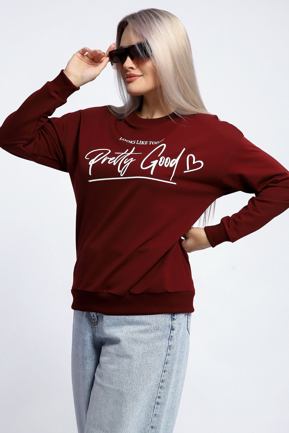 Толстовка свободного кроя "оверсайз" со спущенной линией плеча прекрасный вариант для прохладной погоды! Мягкое, эластичное кашкорсе в тон ткани использовано для отделки горловины, манжет и пояса. На полочке декоративный принт.
