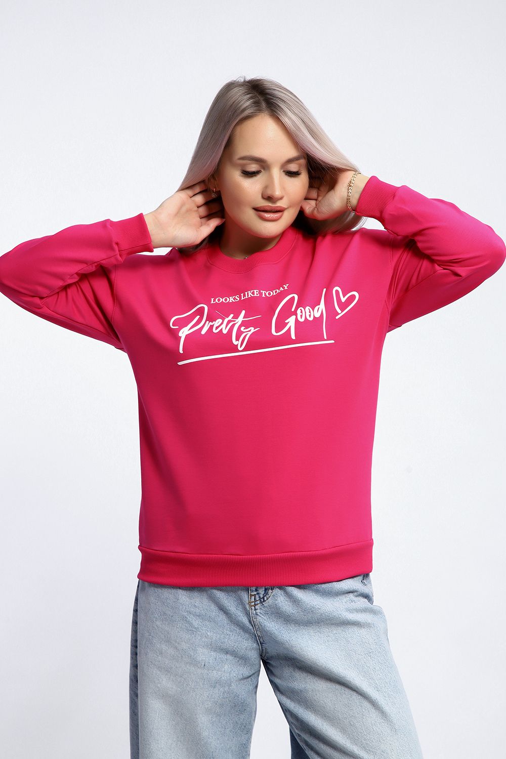 Толстовка свободного кроя "оверсайз" со спущенной линией плеча прекрасный вариант для прохладной погоды! Мягкое, эластичное кашкорсе в тон ткани использовано для отделки горловины, манжет и пояса. На полочке декоративный принт.