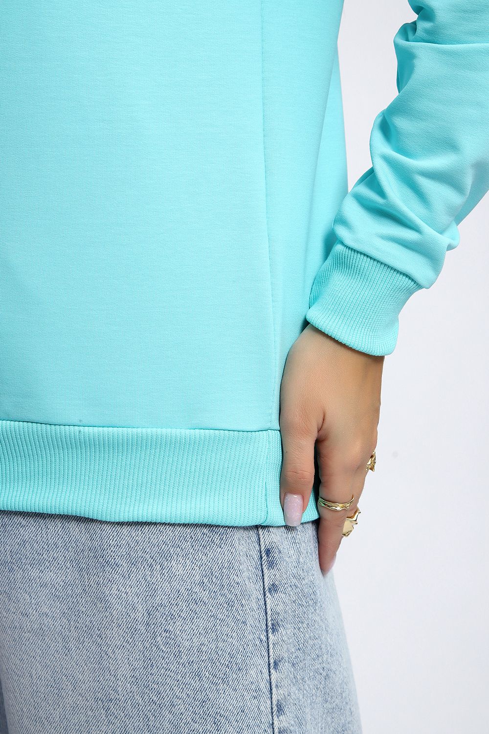 Толстовка свободного кроя "оверсайз" со спущенной линией плеча прекрасный вариант для прохладной погоды! Мягкое, эластичное кашкорсе в тон ткани использовано для отделки горловины, манжет и пояса. На полочке декоративный принт.