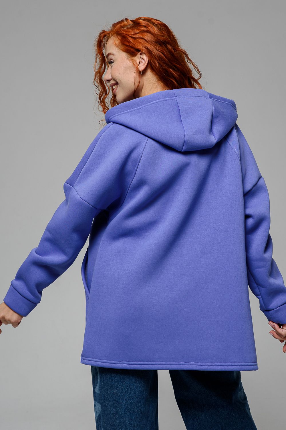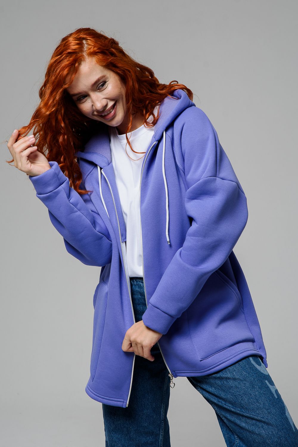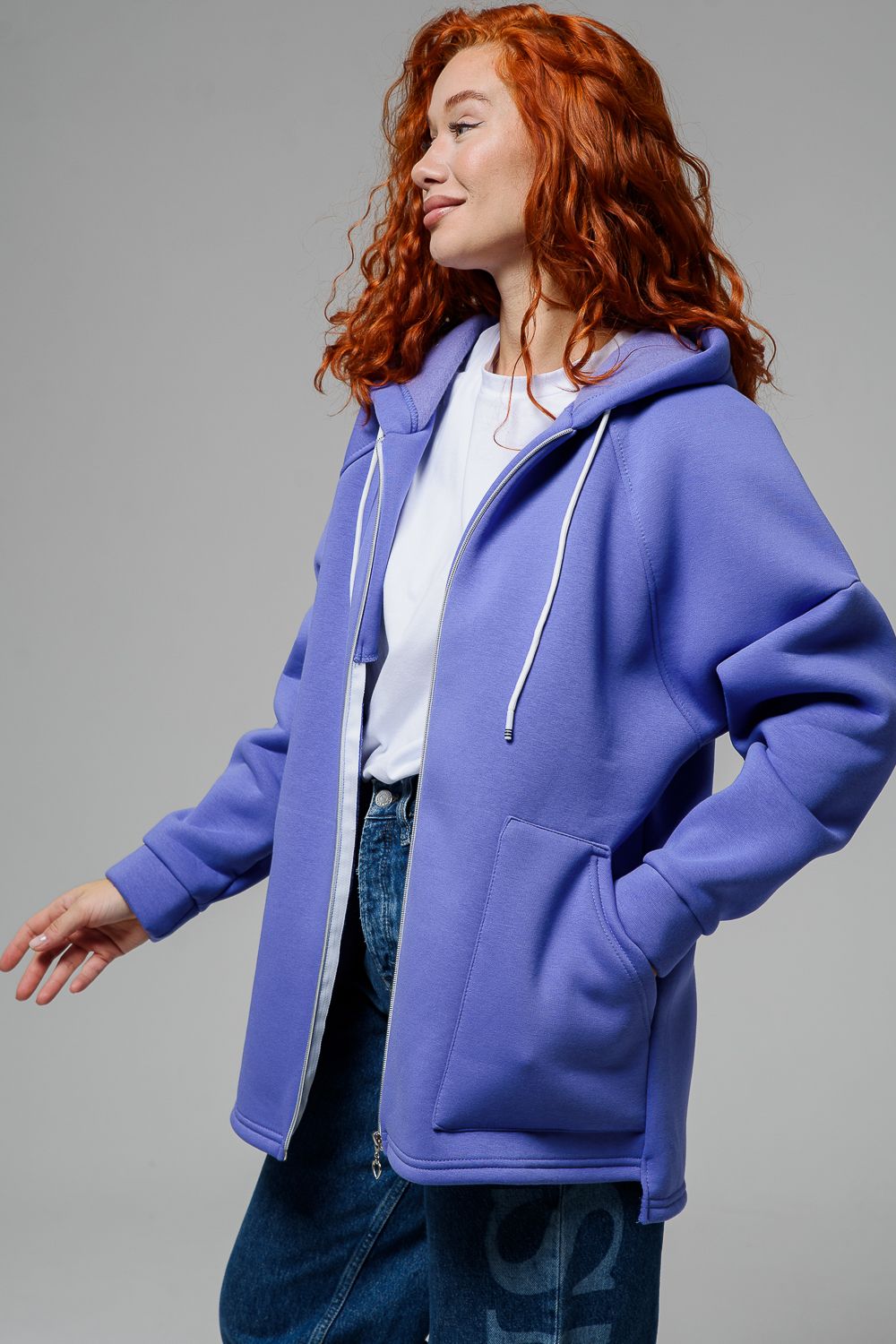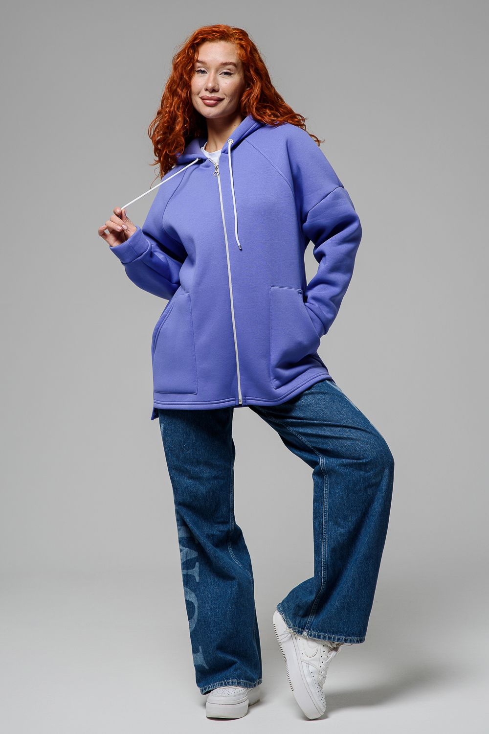 Толстовка утепленная, прямая, свободная, на молнии, с удлиненной спинкой, с капюшоном. Рукав длинный, на эластичном манжете. Полочка и спинка с фигурными кокетками. В нижней части полочки расположены удобные накладные карманы.