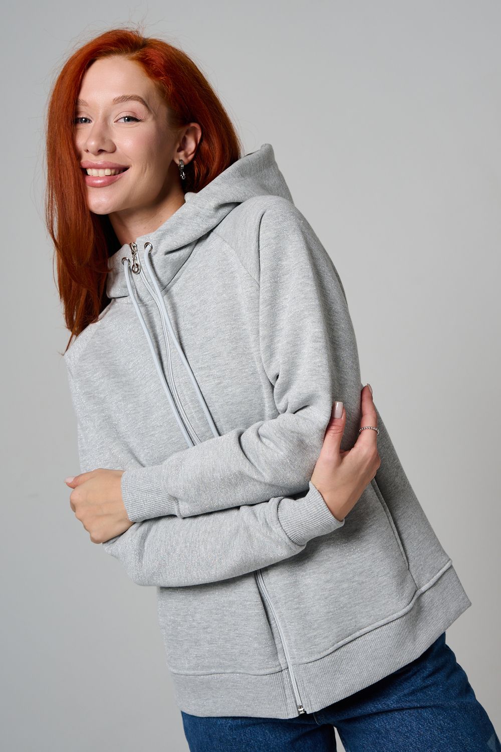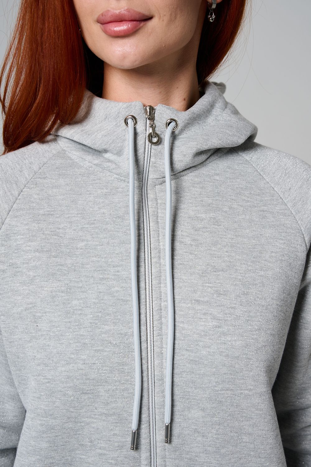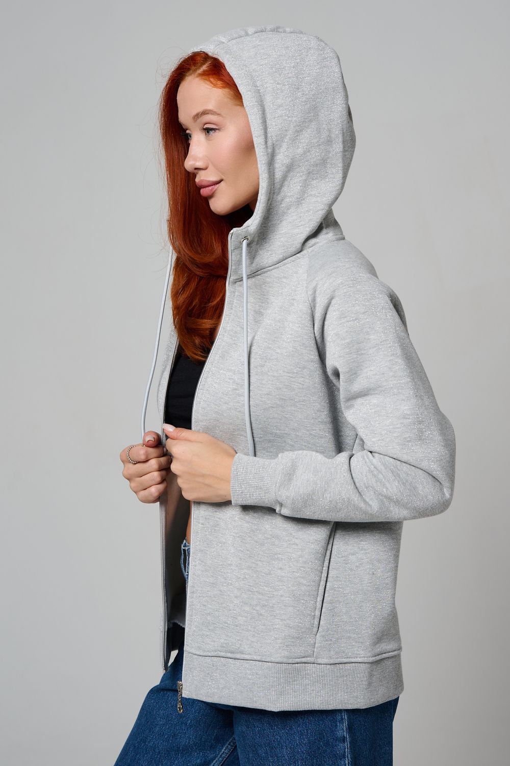 Толстовка прямая, с капюшоном, на молнии. Рукав реглан, длинный. На полочке в рельефном шве обработаны карманы. Низ толстовки и манжеты рукавов выполнены из эластичного полотна.