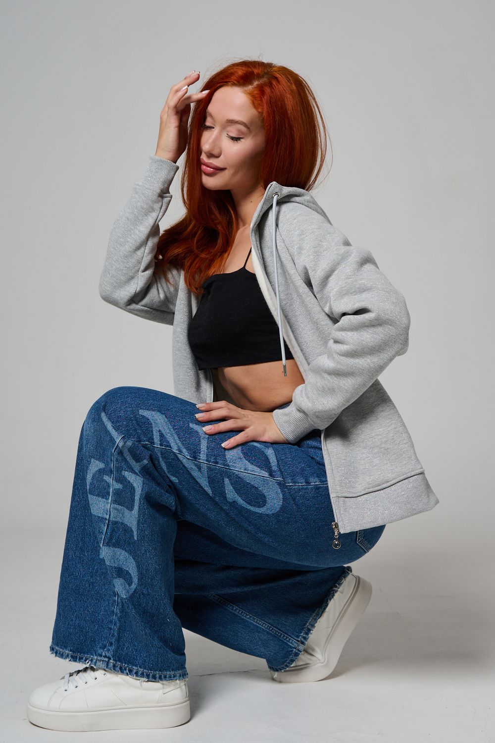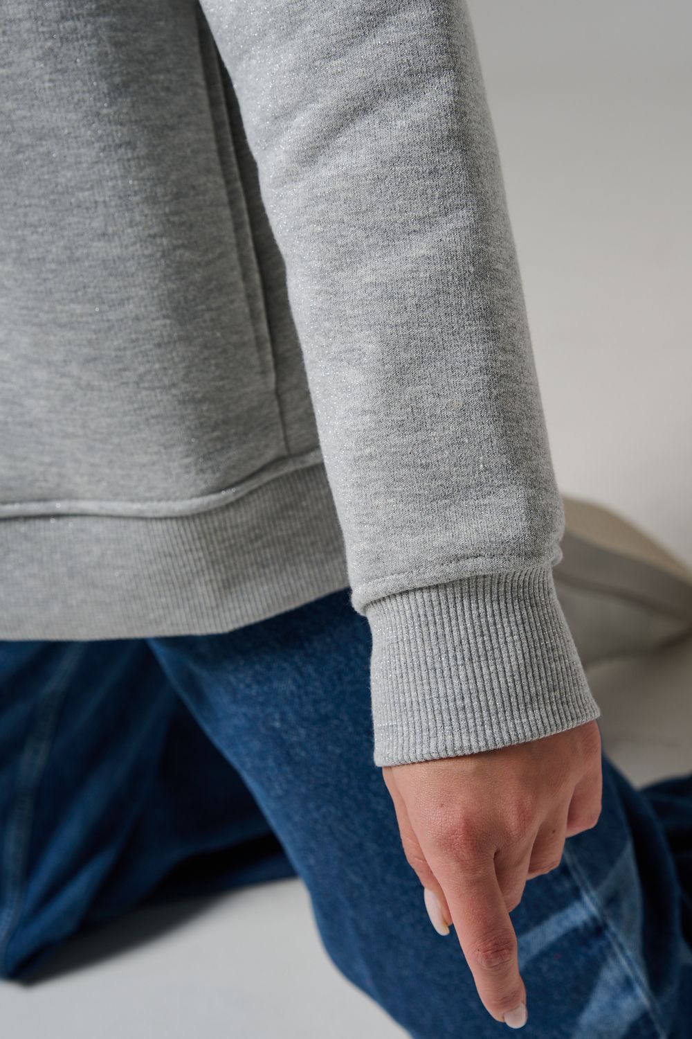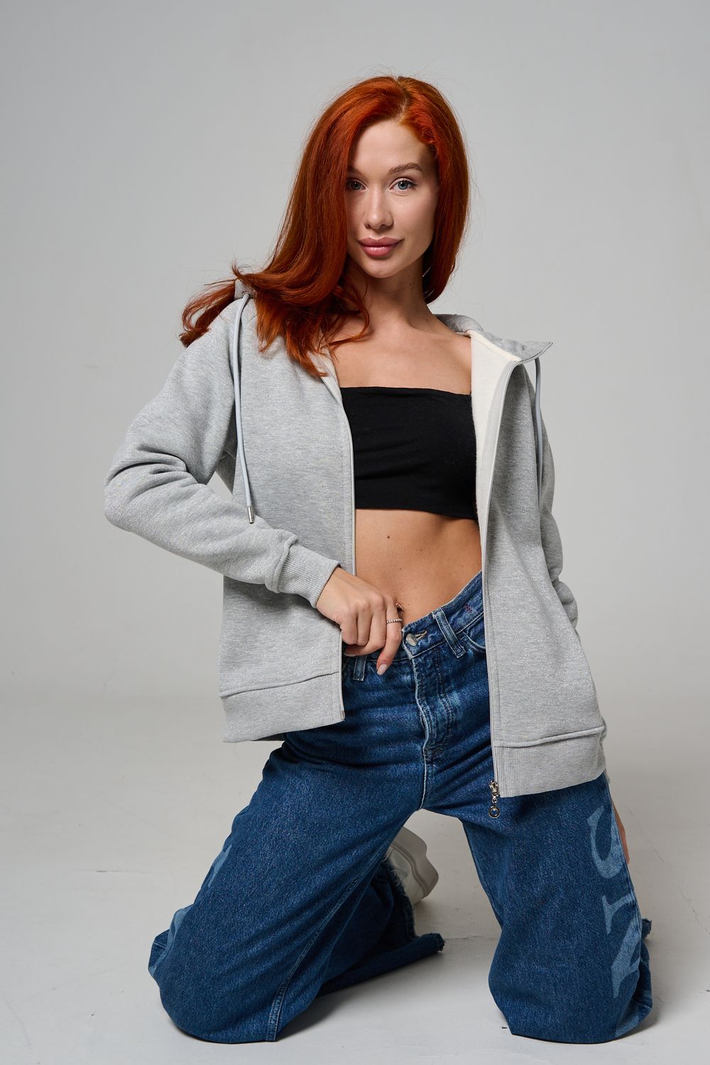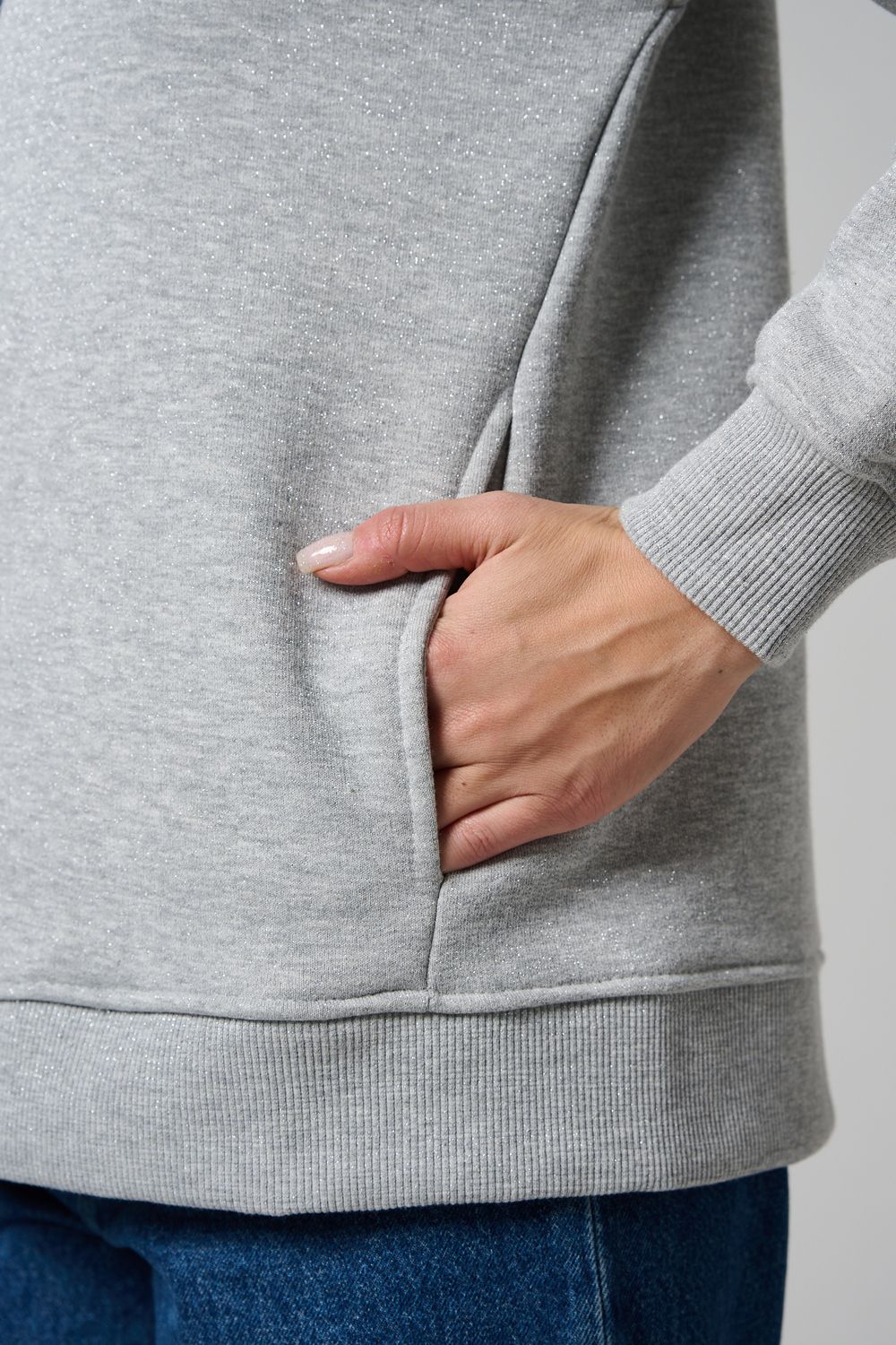 Толстовка прямая, с капюшоном, на молнии. Рукав реглан, длинный. На полочке в рельефном шве обработаны карманы. Низ толстовки и манжеты рукавов выполнены из эластичного полотна.