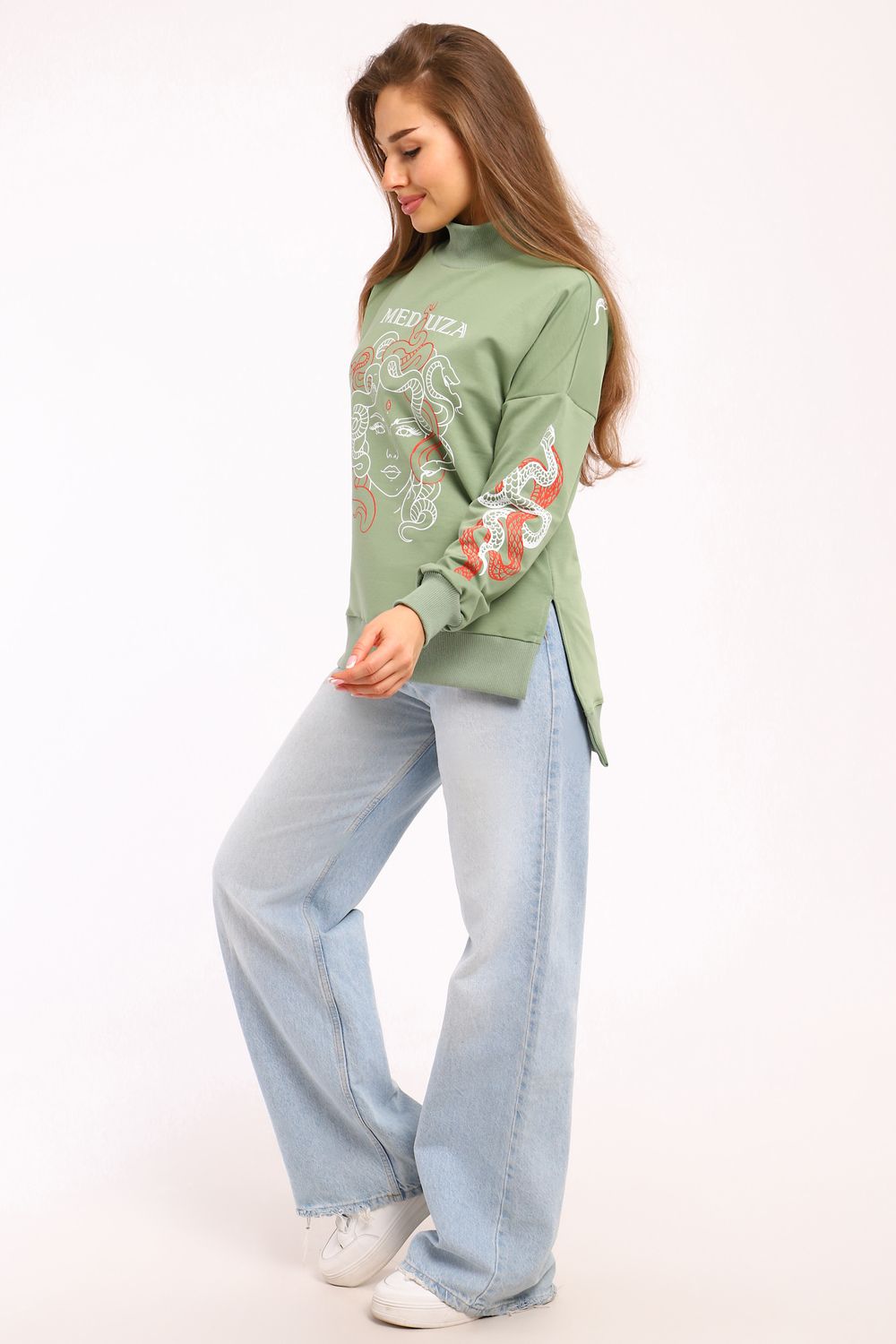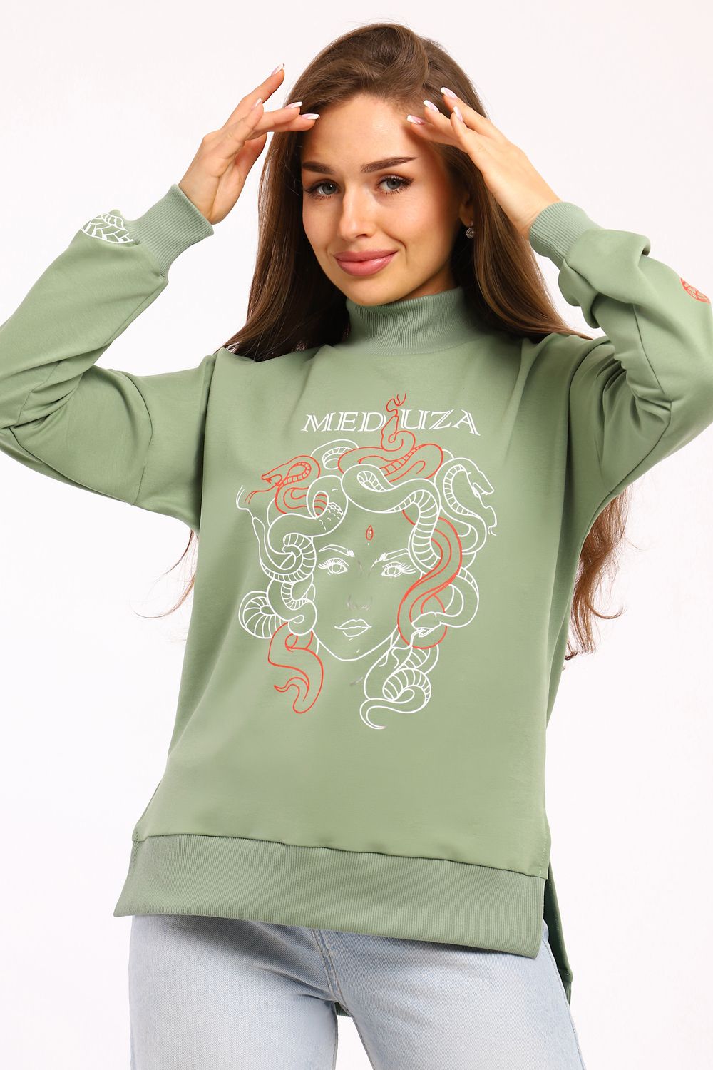 Толстовка с принтом KEM – это стильное и комфортное решение для повседневного образа. Модель выполнена из мягкой и приятной к телу ткани, состоящей из 71% хлопка, 24% полиэстера и 5% лайкры, что обеспечивает свободу движений и удобство в носке. Оригинальный принт медуза на толстовке добавляет индивидуальности и яркости вашему стилю. Благодаря разрезам по бокам толстовка прекрасно садится на фигуру, подчеркивая ее достоинства. Модель без капюшона и застежки, что делает ее еще более удобной для носки.