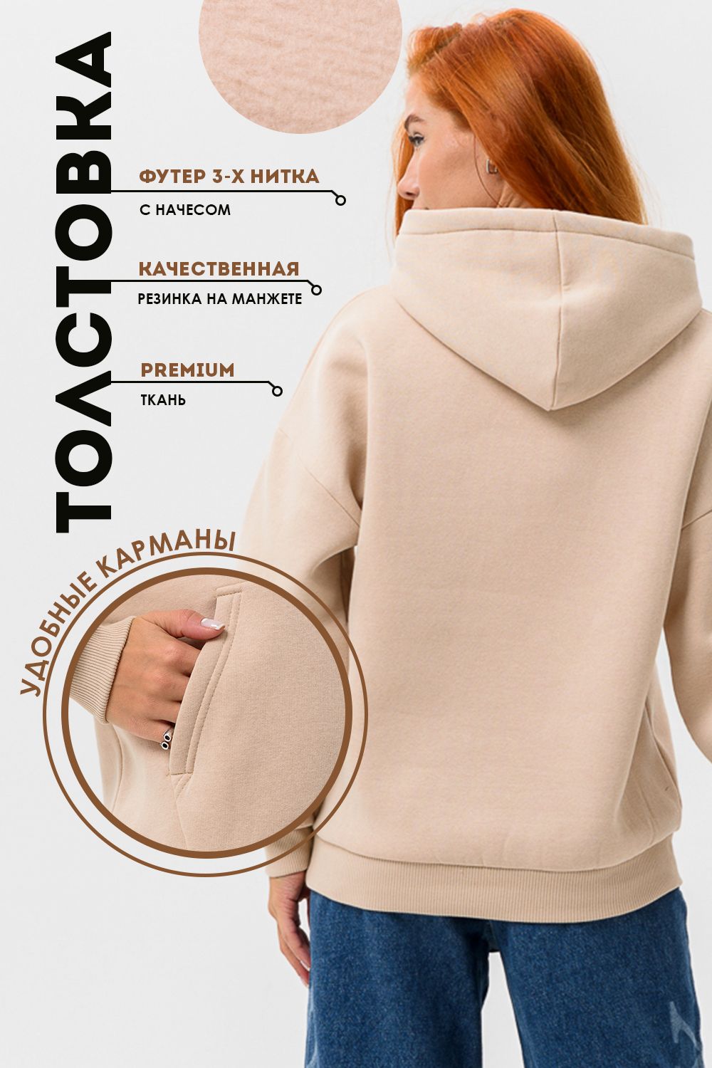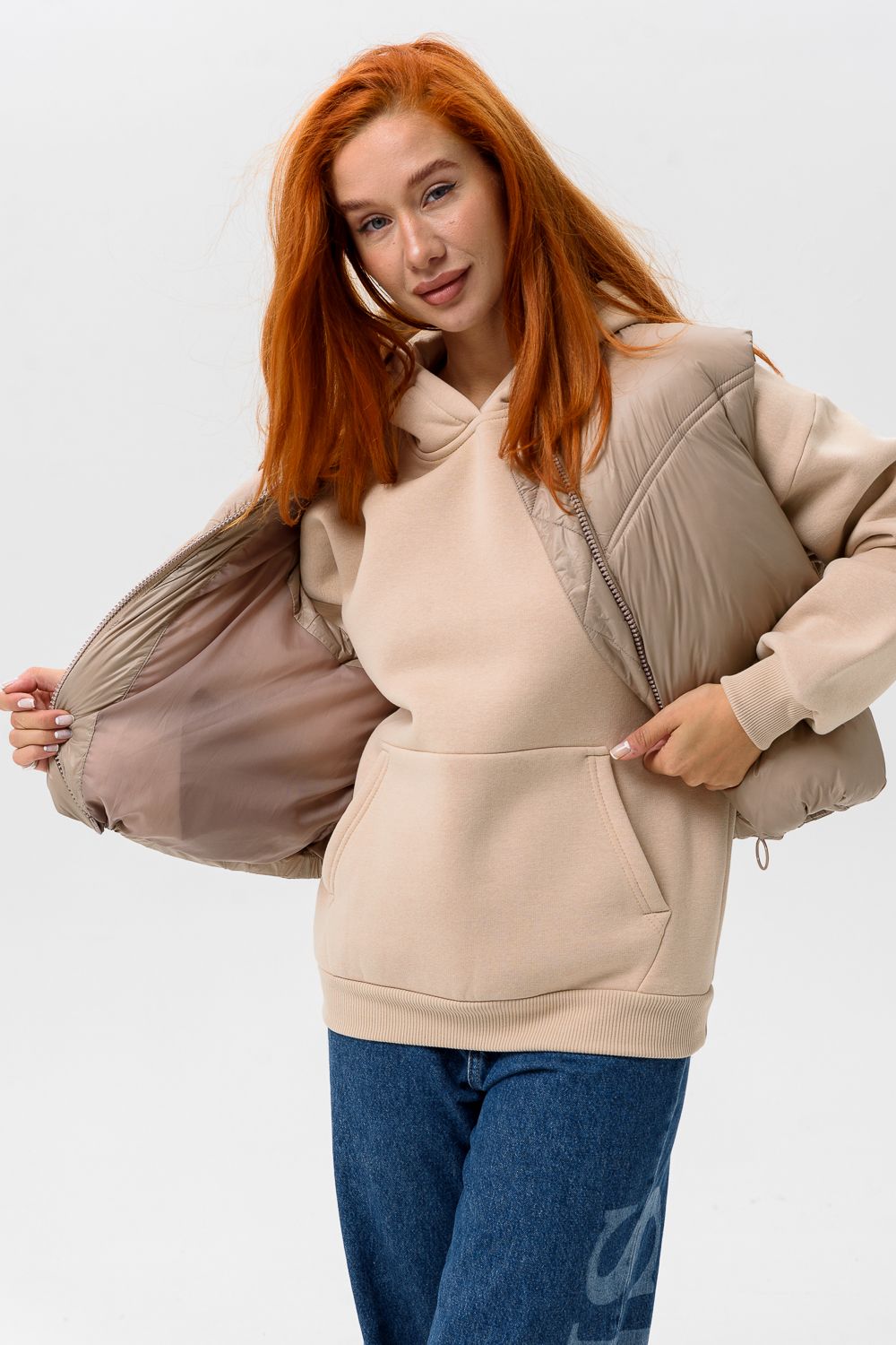Толстовка женская оверсайз 14428 - бежевый