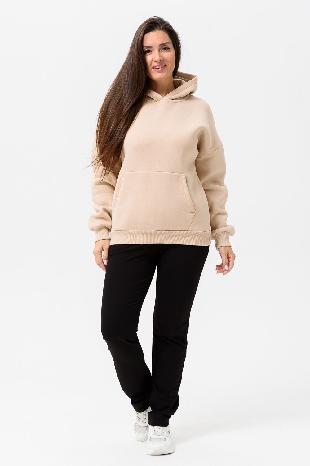 Утепленная толстовка с начесом, свободного кроя оверсайз, с длинным рукавом, объемным капюшоном и удобным карманом «кенгуру» – незаменимая, уже классическая повседневная вещь, которую можно сочетать с любой одеждой для создания стильных образов. Длина рукава измеряется от горловины.