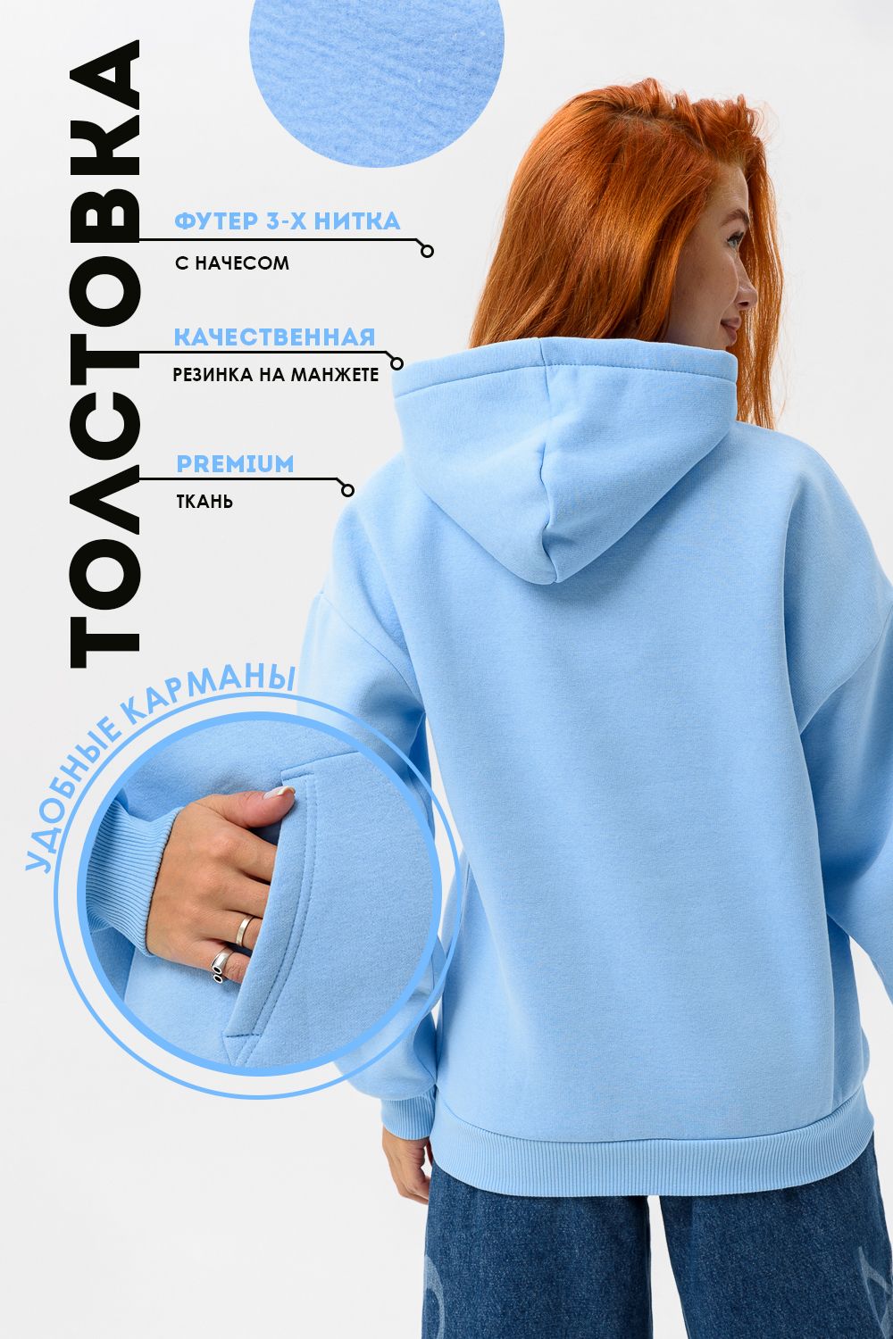 Толстовка женская оверсайз 14428 - голубой