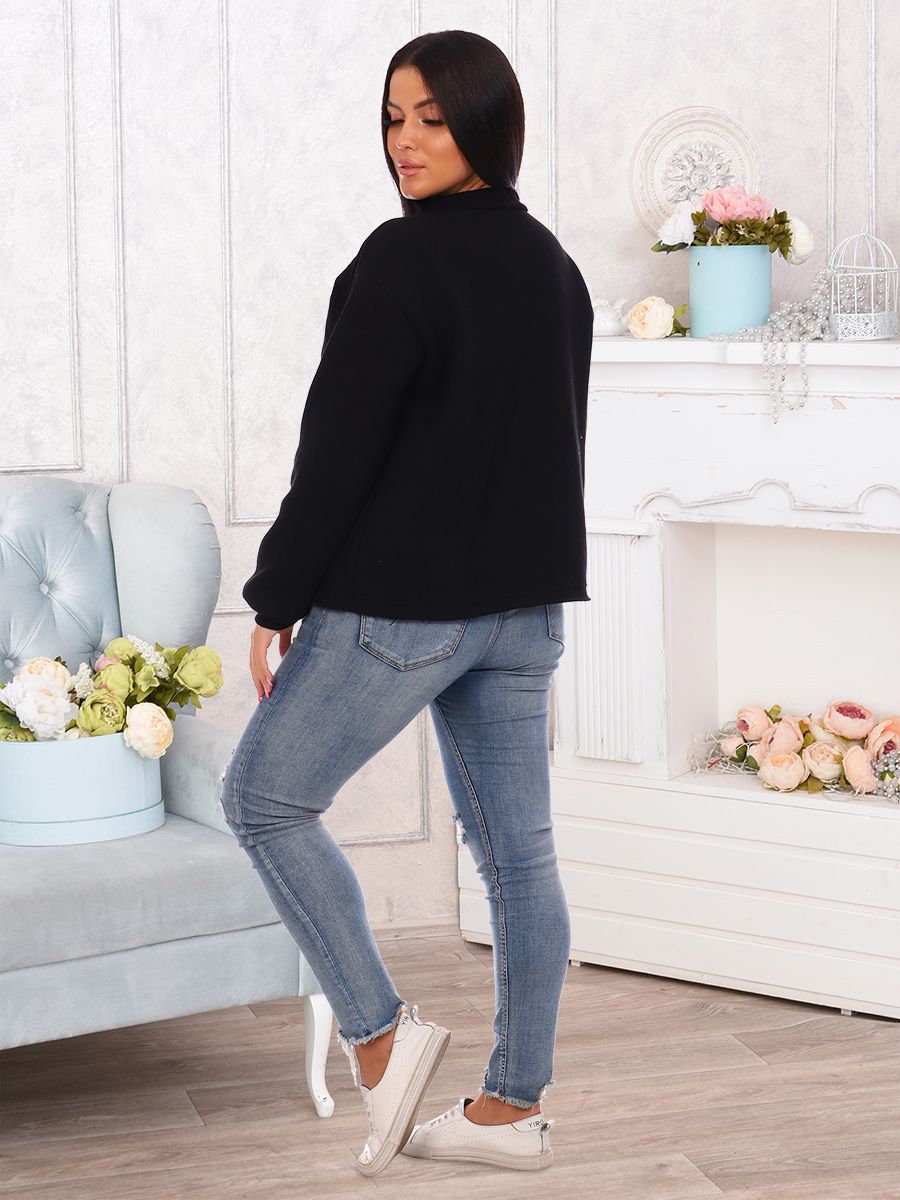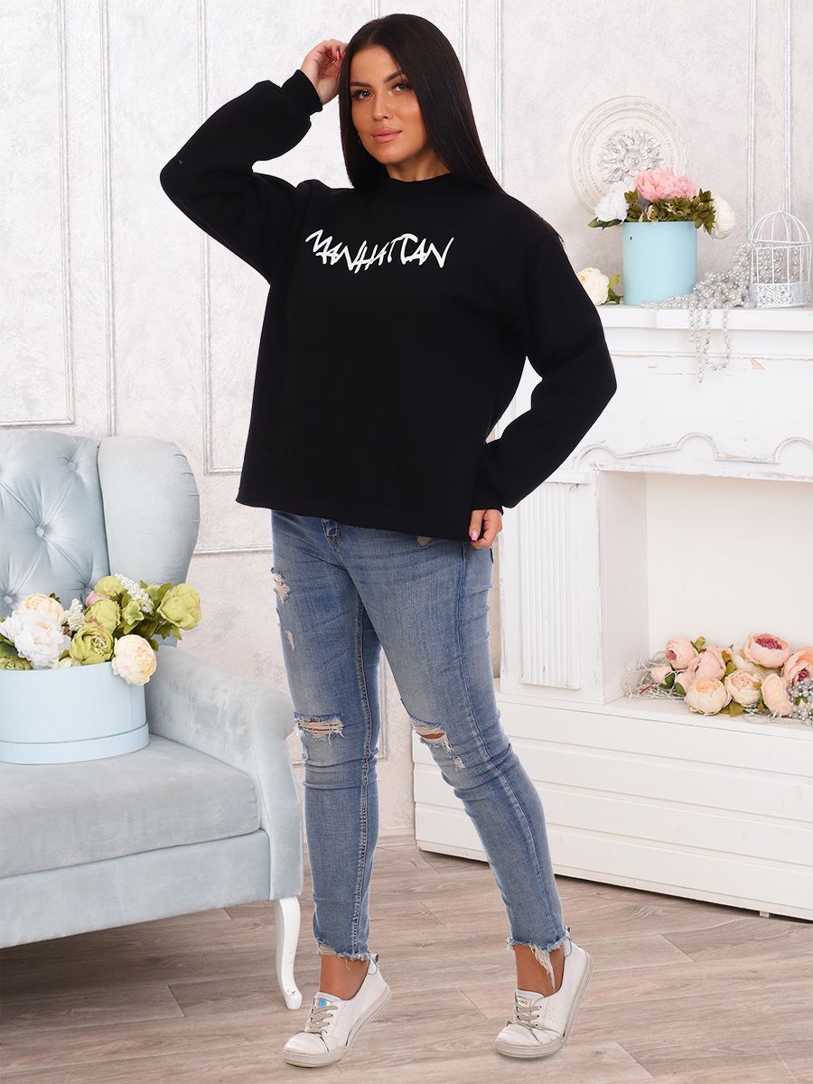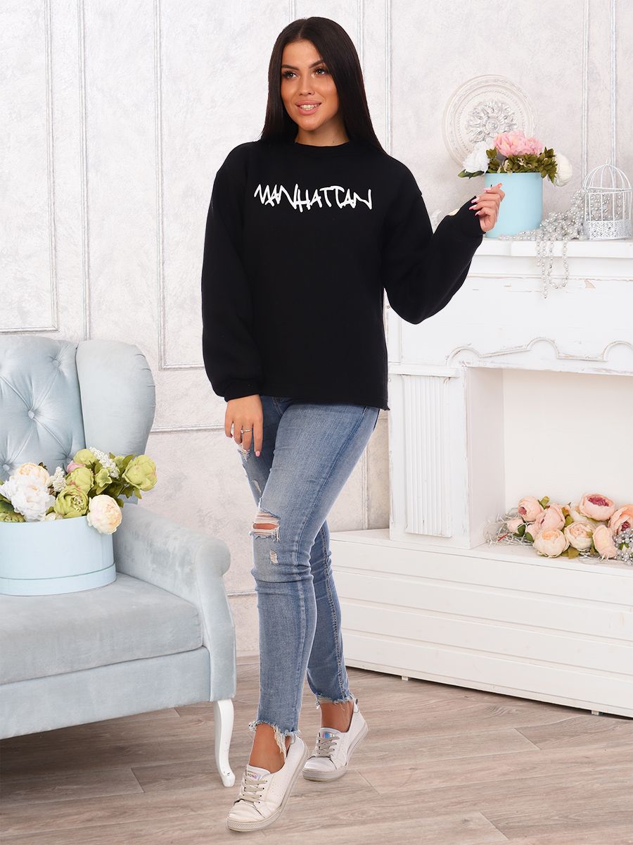 Толстовка женская утепленная с принтом. Манжеты и горловина выполнены из кашкорсе, нижний срез толстовки оставлен открытым