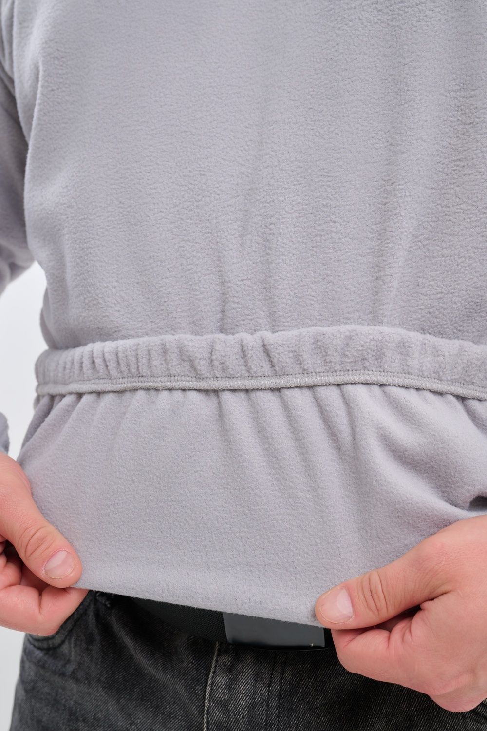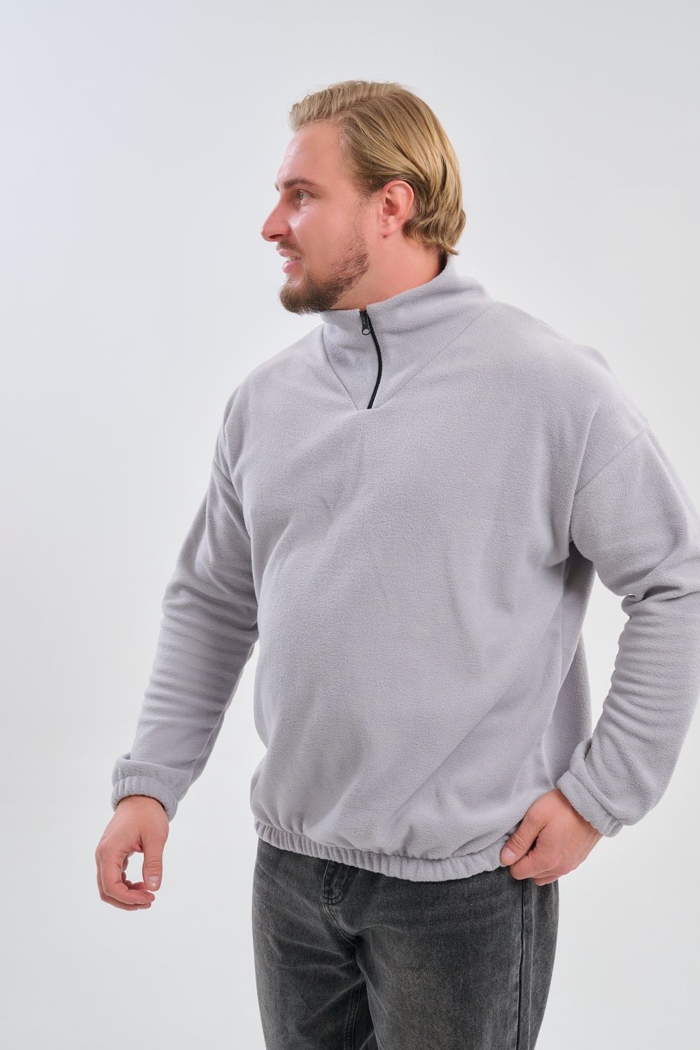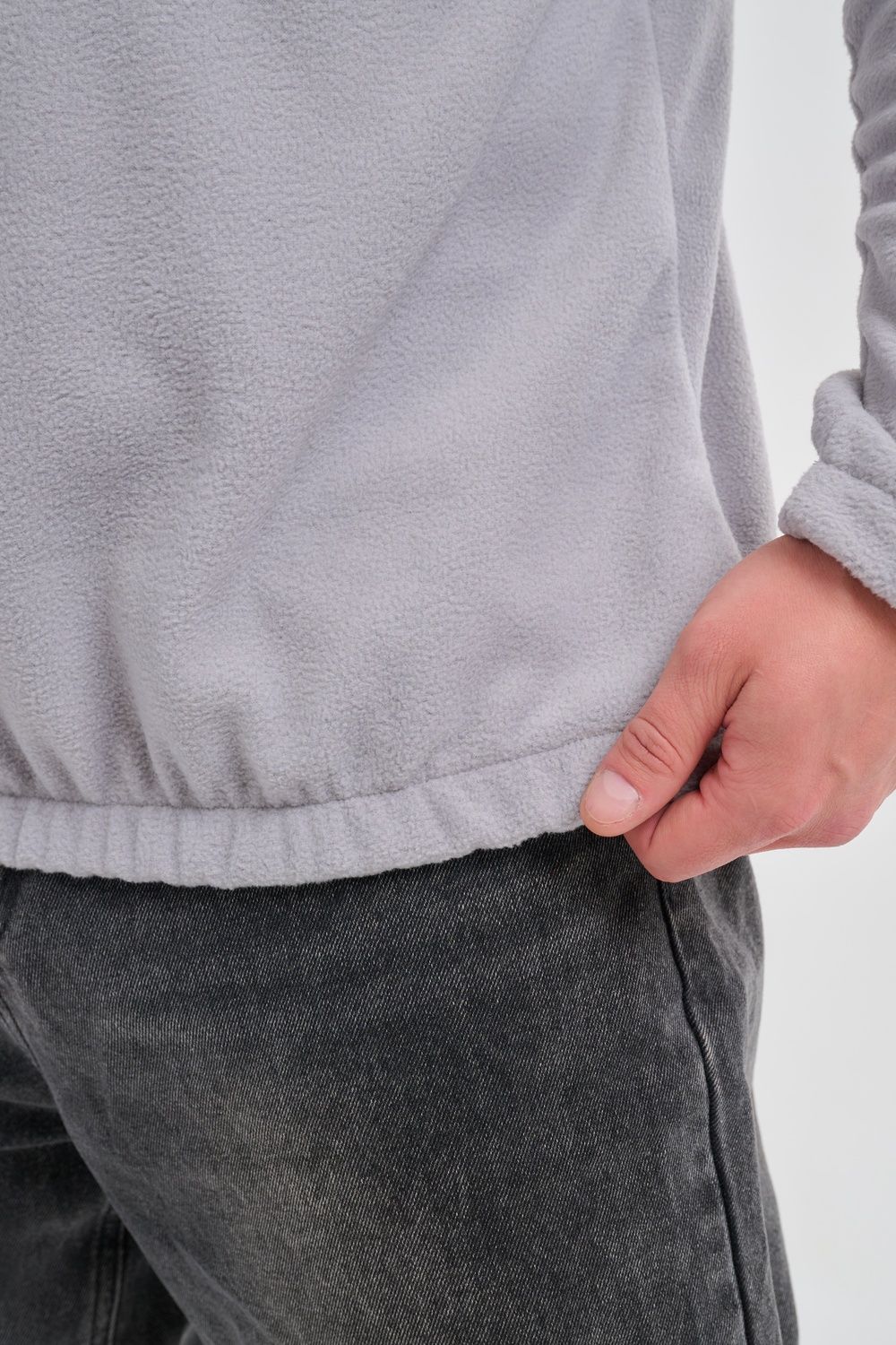 Мужская толстовка выполнена из приятного на ощупь флиса из 100% полиэстера, обладающего отличными теплоизоляционными свойствами и обеспечивающего максимальный комфорт при любых погодных условиях. Особенность модели заключается в том, что по низу изделия и на манжетах вшиты резинки, обеспечивающие плотное прилегание, сохранение формы изделия и защиту от проникновения холода.
