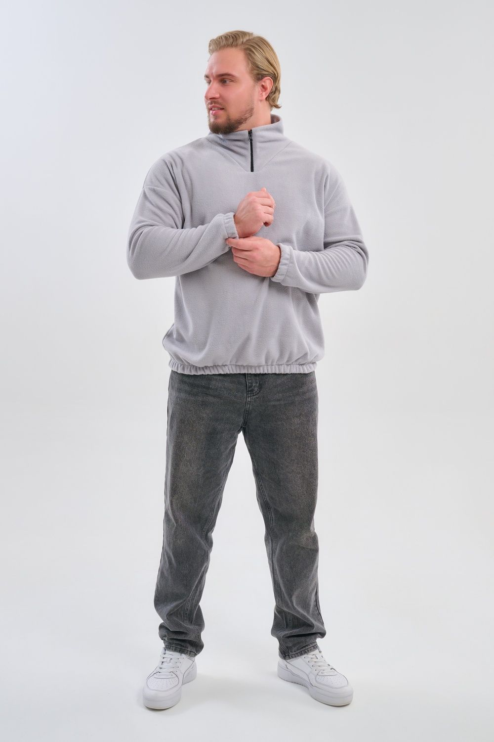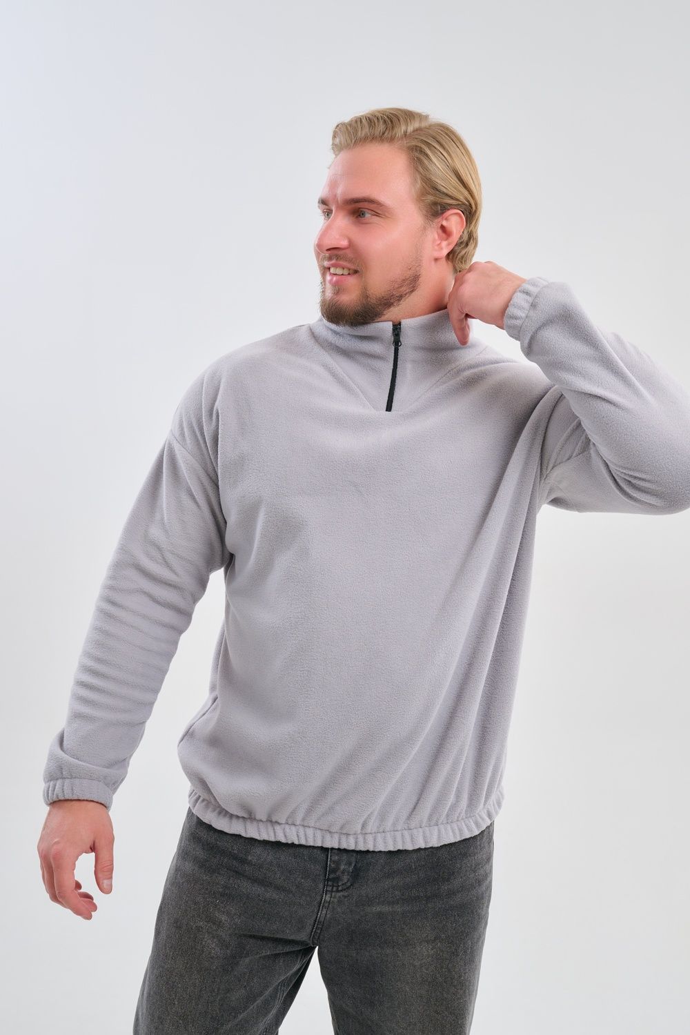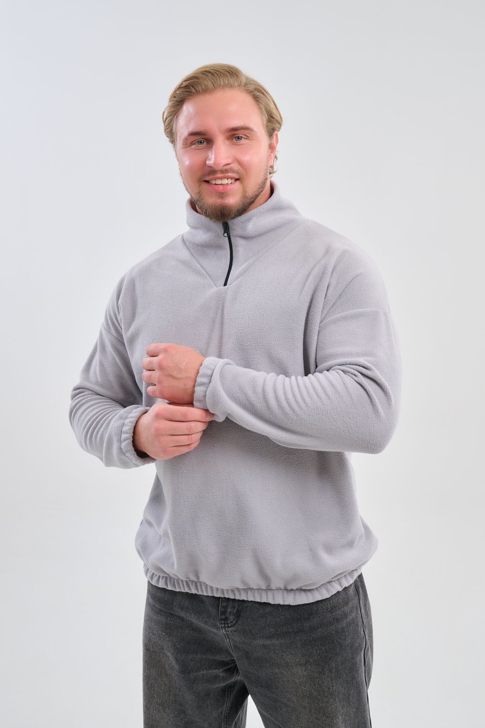 Мужская толстовка выполнена из приятного на ощупь флиса из 100% полиэстера, обладающего отличными теплоизоляционными свойствами и обеспечивающего максимальный комфорт при любых погодных условиях. Особенность модели заключается в том, что по низу изделия и на манжетах вшиты резинки, обеспечивающие плотное прилегание, сохранение формы изделия и защиту от проникновения холода.