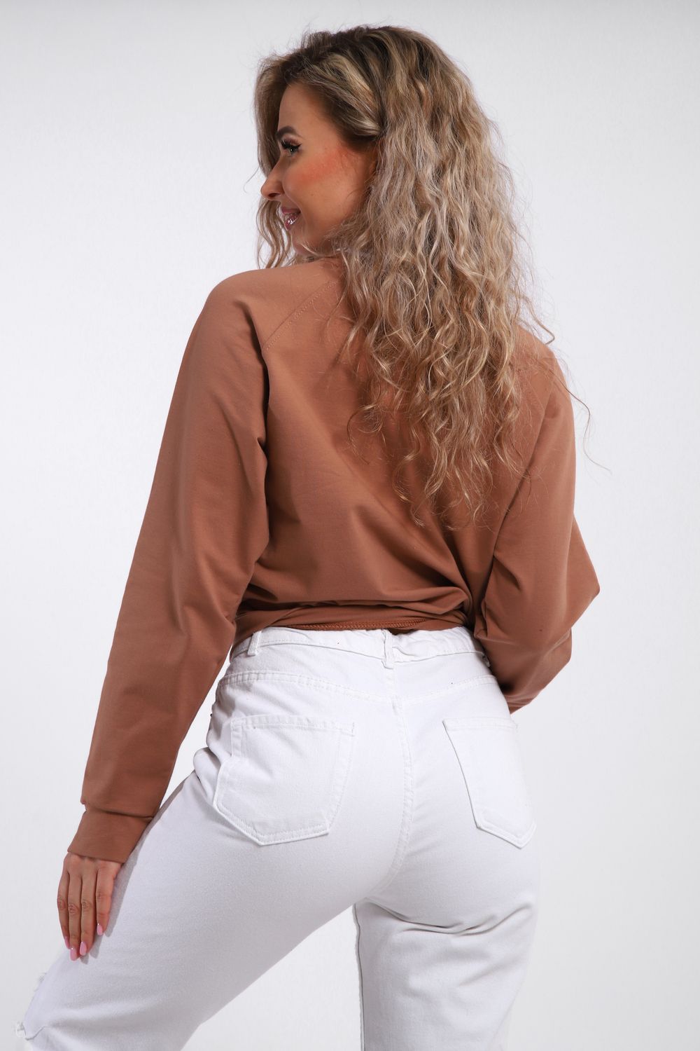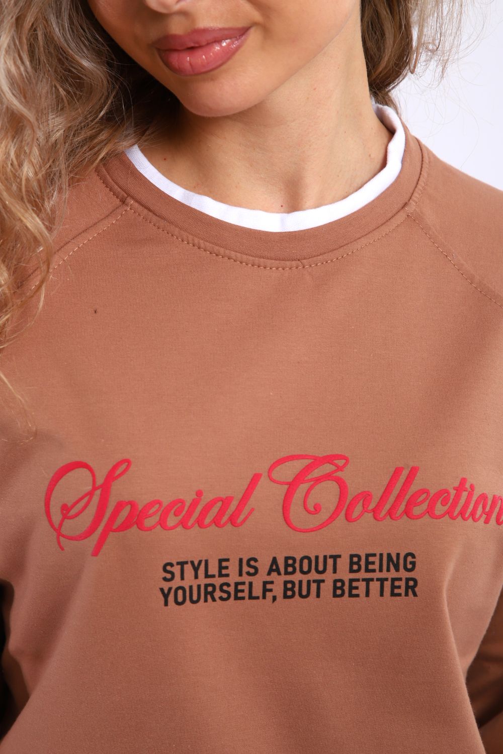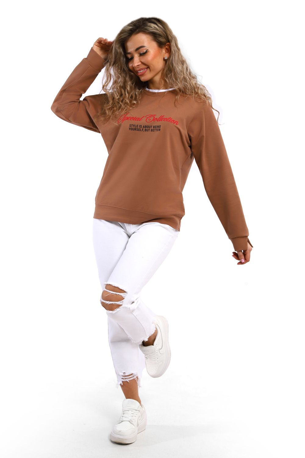 Толстовка спортивная с белым кантом - коричневый