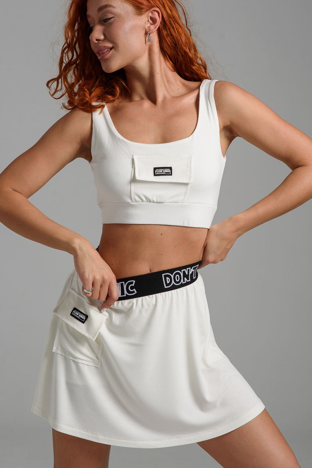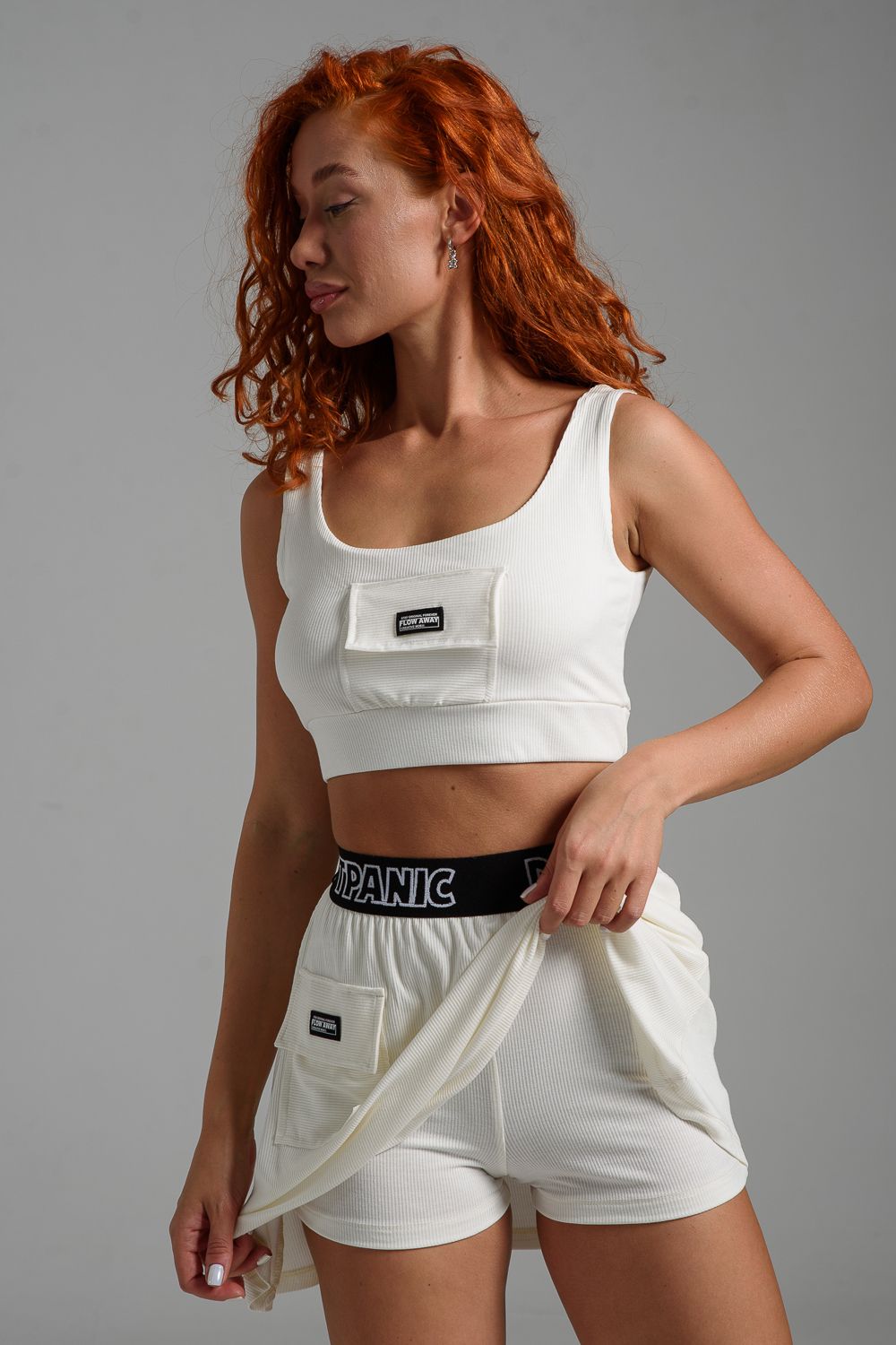Топ спортивный выполнен из эластичной приятной к телу ткани в мелкий рубчик. Топ двухслойный хорошо держит грудь и не просвечивает. Дополняет кроп-топ маленький нагрудный кармашек с клапаном и декоративным шевроном. Отлично сочетается со спортивными брюками,шортами,юбками!