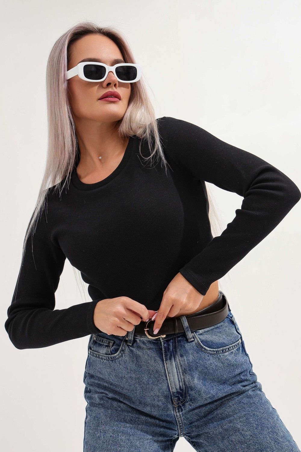 Moses. Женской топ выполнен из хлопка с добавлением лайкры, благодаря чему отлично садится по фигуре. Облегающий крой выгодно прочеркивает женский силуэт, особенно грудь, вне зависимости от ее размера! Топ с длинными рукавами в рубчик является необходимым элементом женского гардероба, ведь он подойдет для создания самых разнообразных образов.