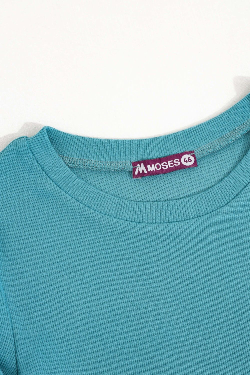 Moses. Женской топ выполнен из хлопка с добавлением лайкры, благодаря чему отлично садится по фигуре. Облегающий крой выгодно прочеркивает женский силуэт, особенно грудь, вне зависимости от ее размера! Топ с длинными рукавами в рубчик является необходимым элементом женского гардероба, ведь он подойдет для создания самых разнообразных образов.