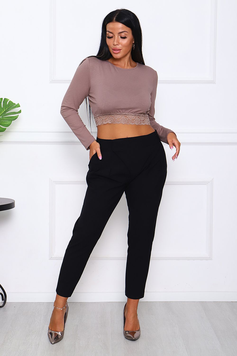 Модель облегающего силуэта с длинным рукавом, низ мягкое эластичное кружево. Топ отлично подойдёт и для повседневной носки, под пиджак или жакет, и для вечеринки. Изготовлен из приятной телу трикотажной ткани вискоза, которая не даёт усадку, не меняет цвет даже при многократных стирках.