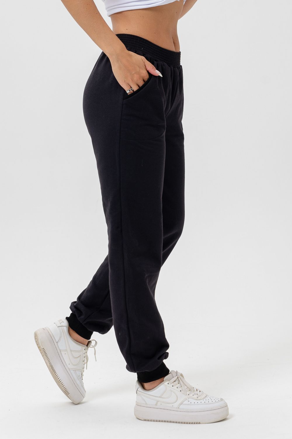 Теплое трико из футера с начесом. Эластичная резинка на поясе, манжеты снизу, по бокам карманы