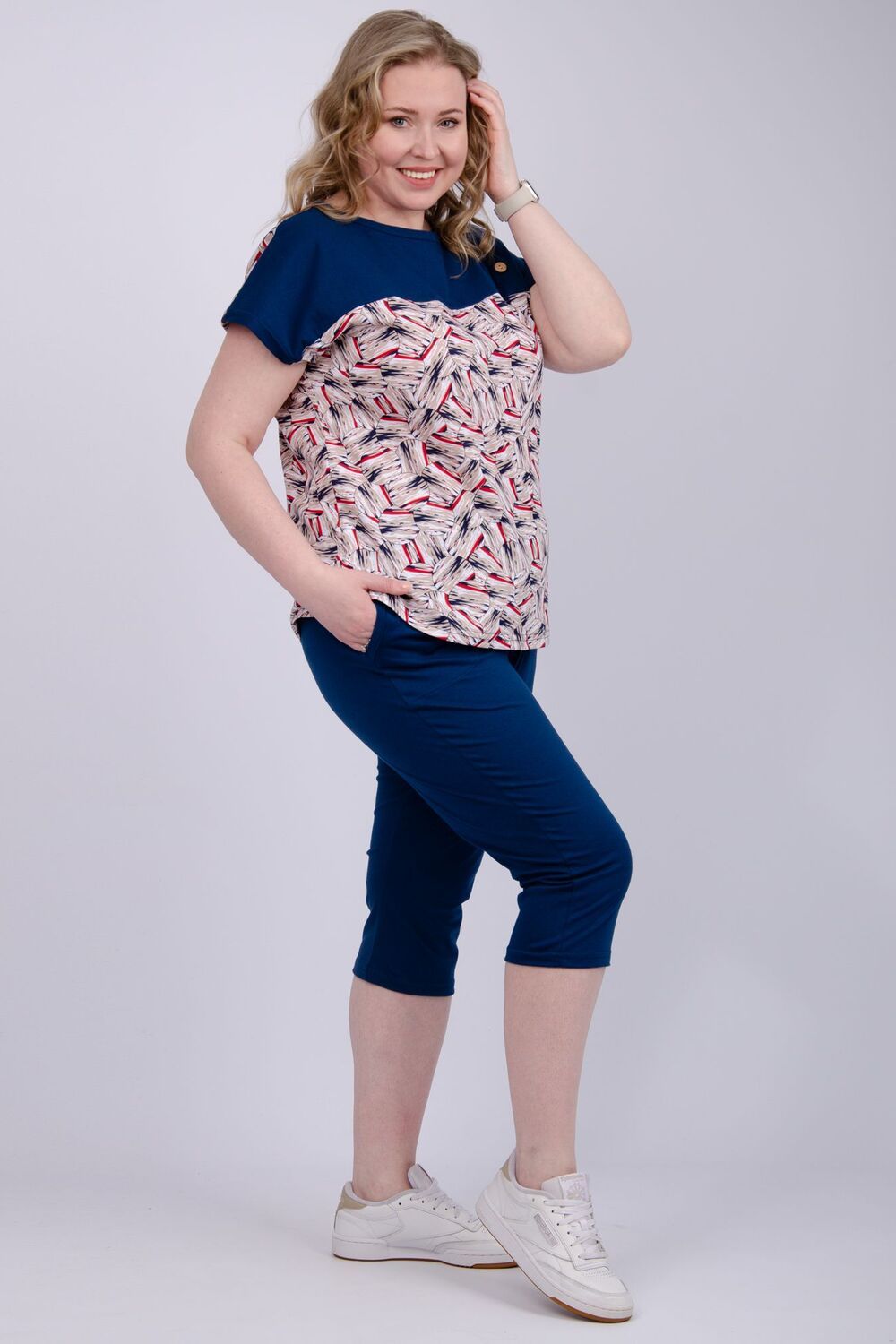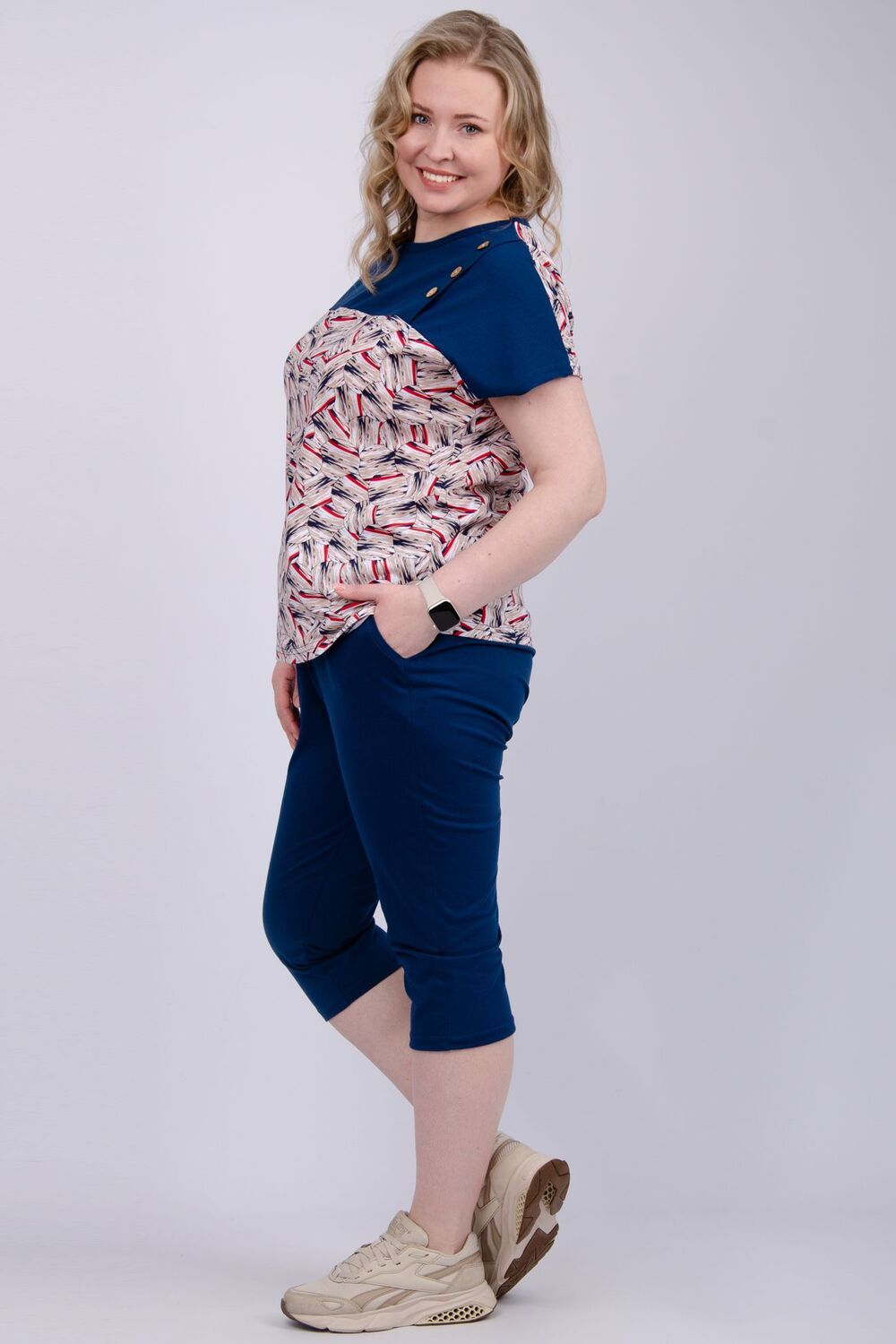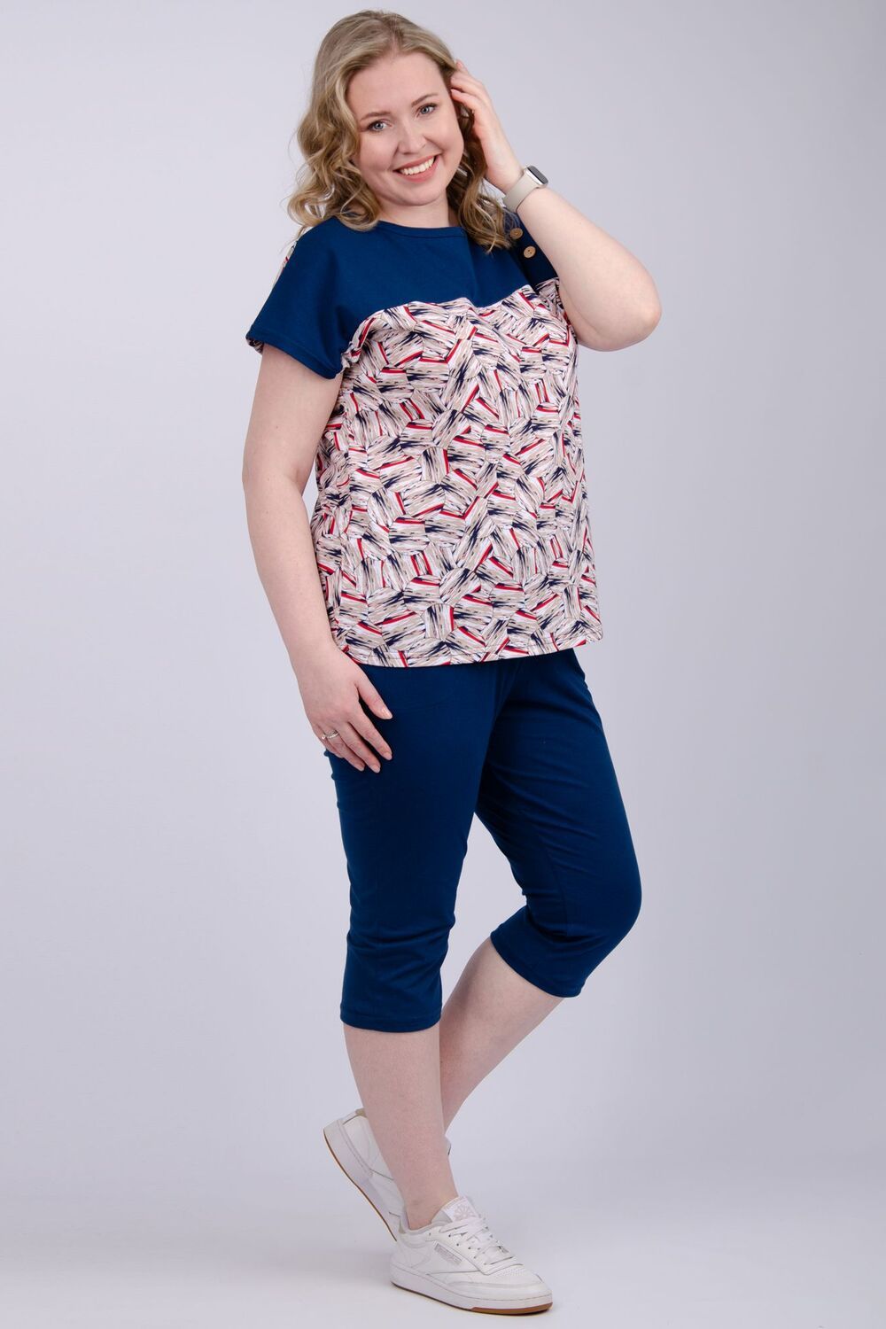 Повседневный костюм с бриджами больших размеров — идеальный выбор для жарких дней. Модель футболки с короткими рукавами и бриджами обеспечит свободу движений и удобство в носке.