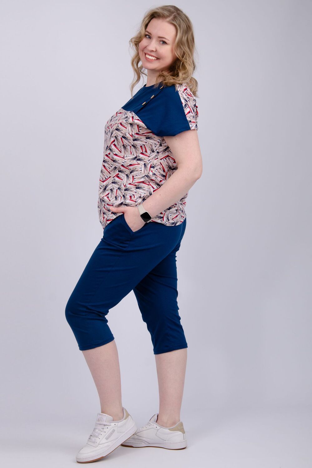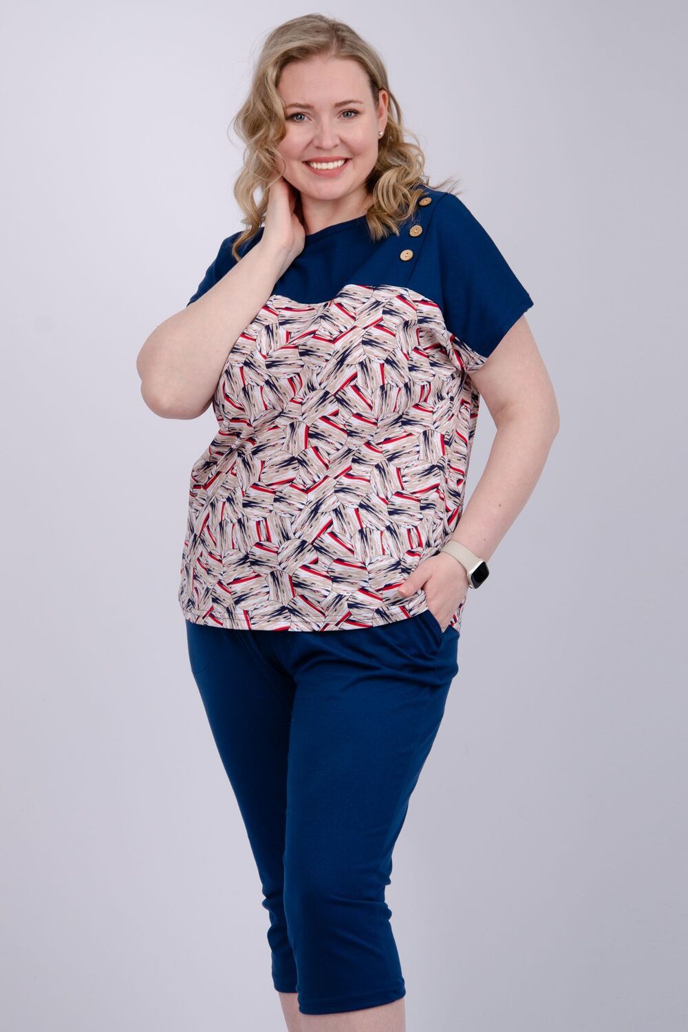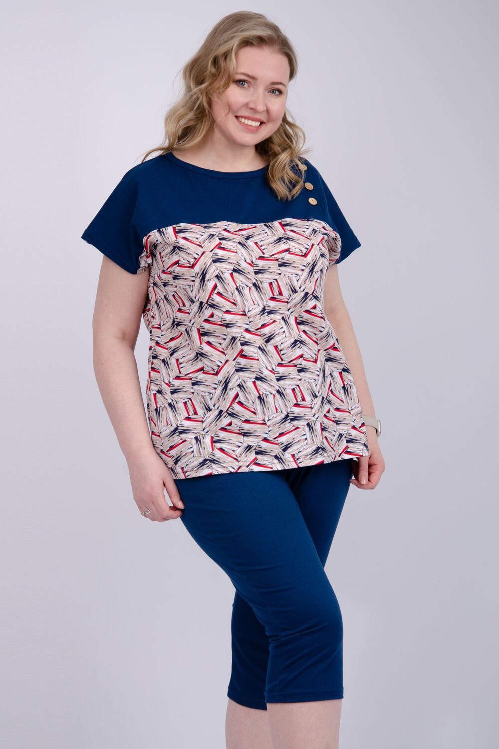 Повседневный костюм с бриджами больших размеров — идеальный выбор для жарких дней. Модель футболки с короткими рукавами и бриджами обеспечит свободу движений и удобство в носке.