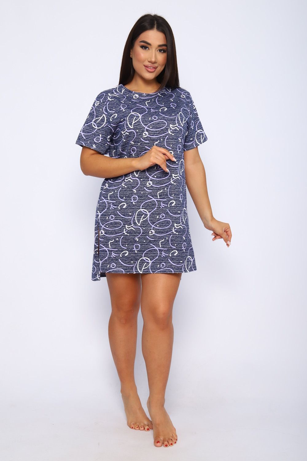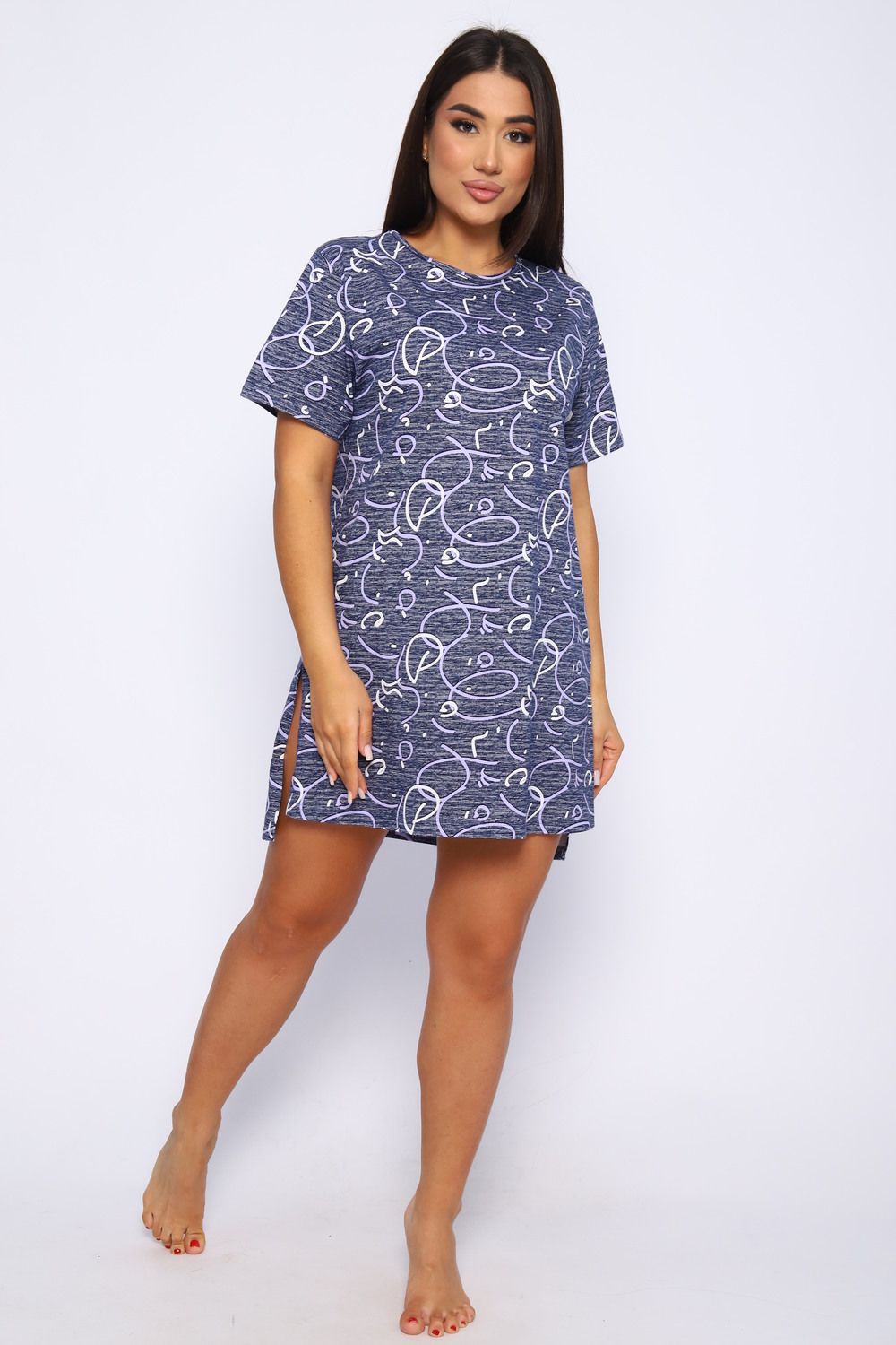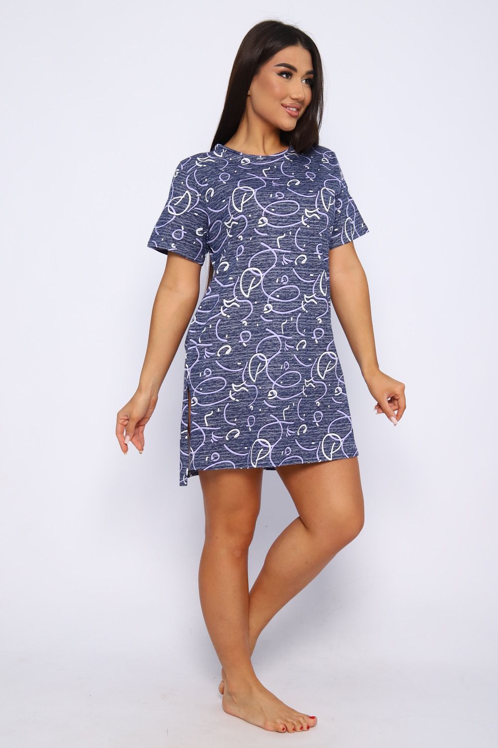Туника женская свободного кроя выполнена из кулирки 100% хлопок оригинальной расцветки. Спинка удлиненная, по бокам большие разрезы, горловина обработана кантом, низ изделия и рукава подшиты. Туника идеально подойдет как для дома, так и для отдыха.