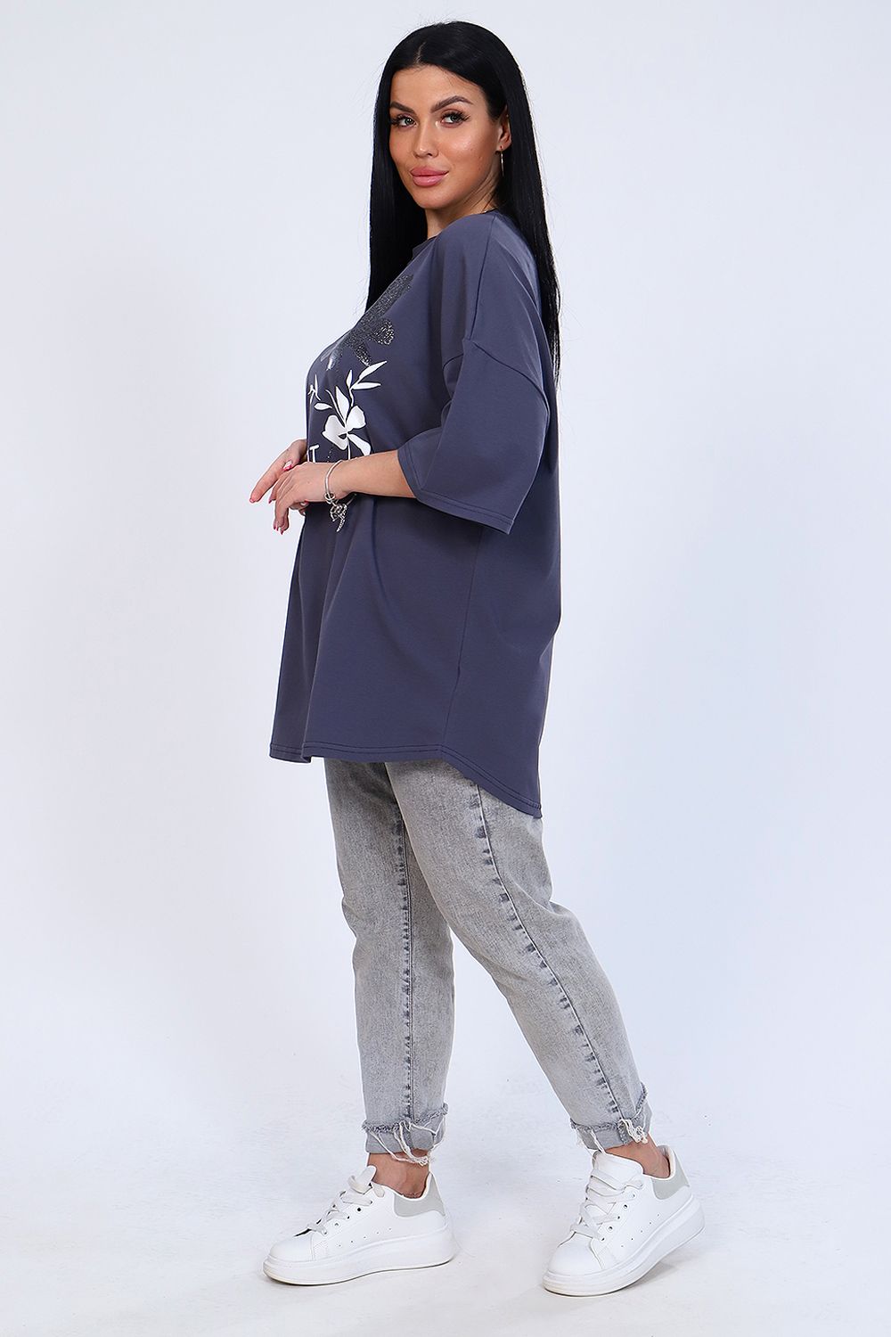 Туника женская выполнена из кулирки с лайкрой в шести цветах. Модель свободного кроя, округлый вырез горловины, спущенный рукав 3/4, слегка расклешен к низу. Оригинальный принт придает изделию индивидуальность. Стильная туника создаст модный и женственный образ на каждый день, скроет недостатки и подчеркнет достоинства фигуры.
