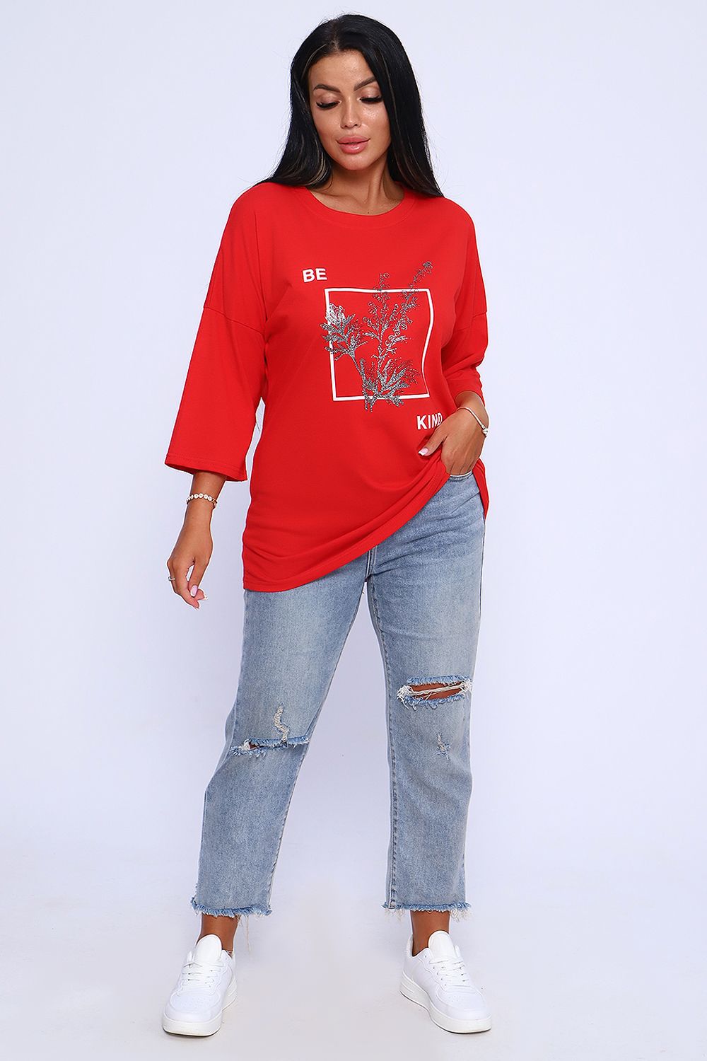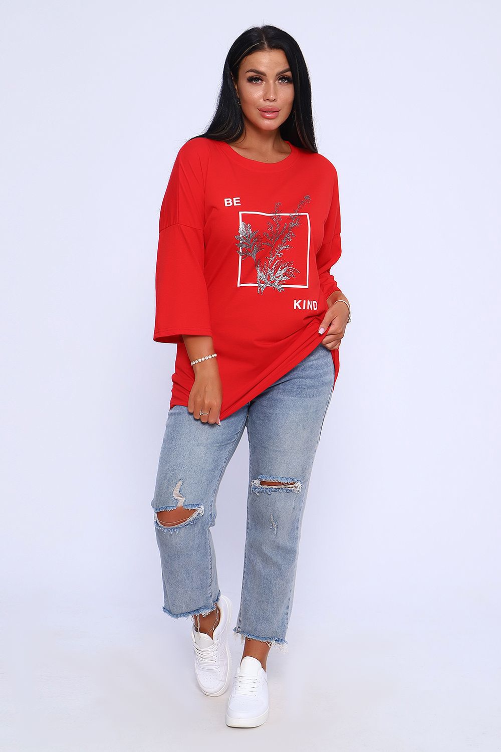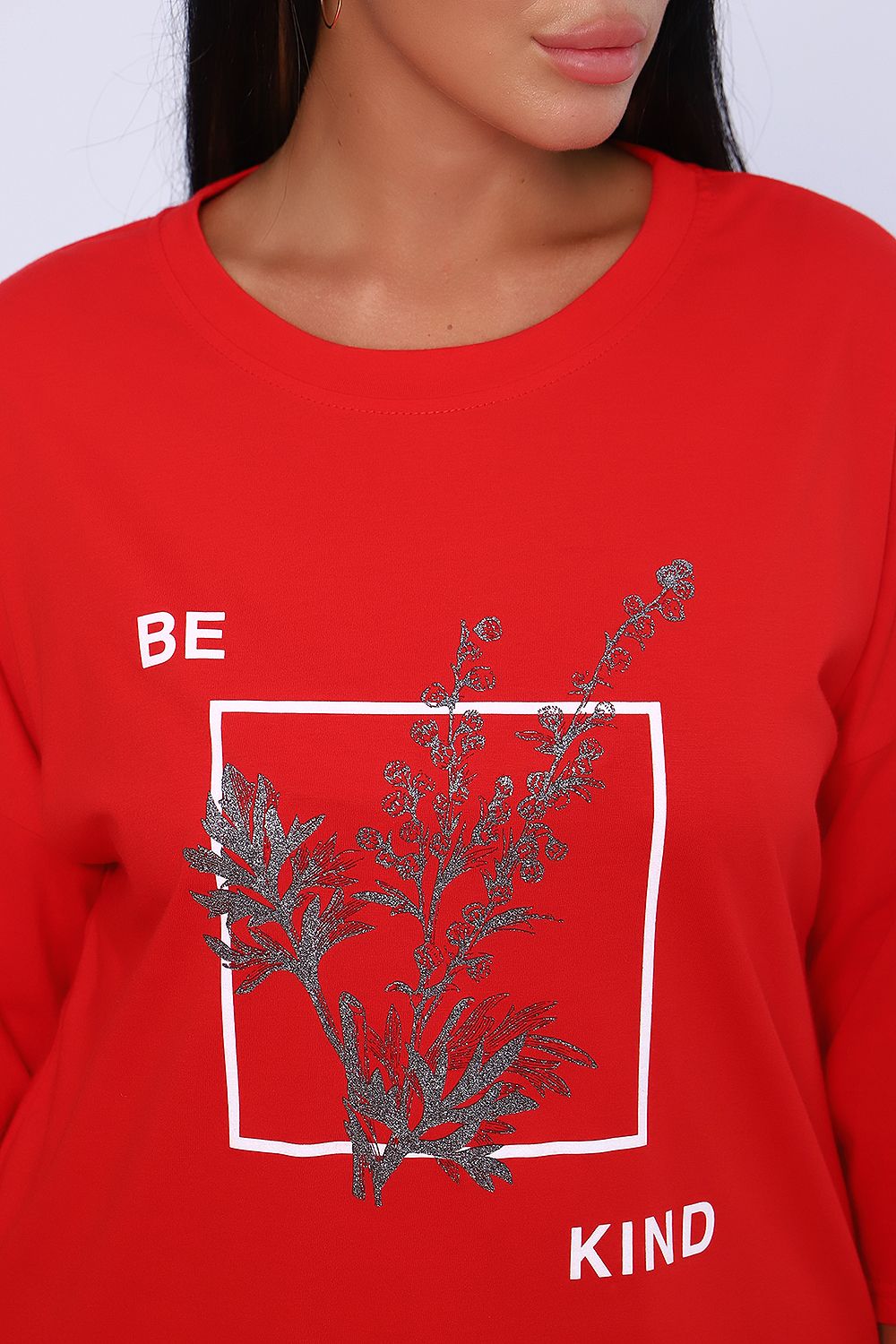 Туника свободного кроя из легкого, натурального хлопка подарит ощущение комфорта и уюта. Оригинальный принт с использованием глиттера и техники объёмной печати украшает модель, придавая ей изысканный вид. Обработка деталей вкруговую с закрепкой, рукав длиной 3/4, горловина втачная из основной ткани. Большие размеры!