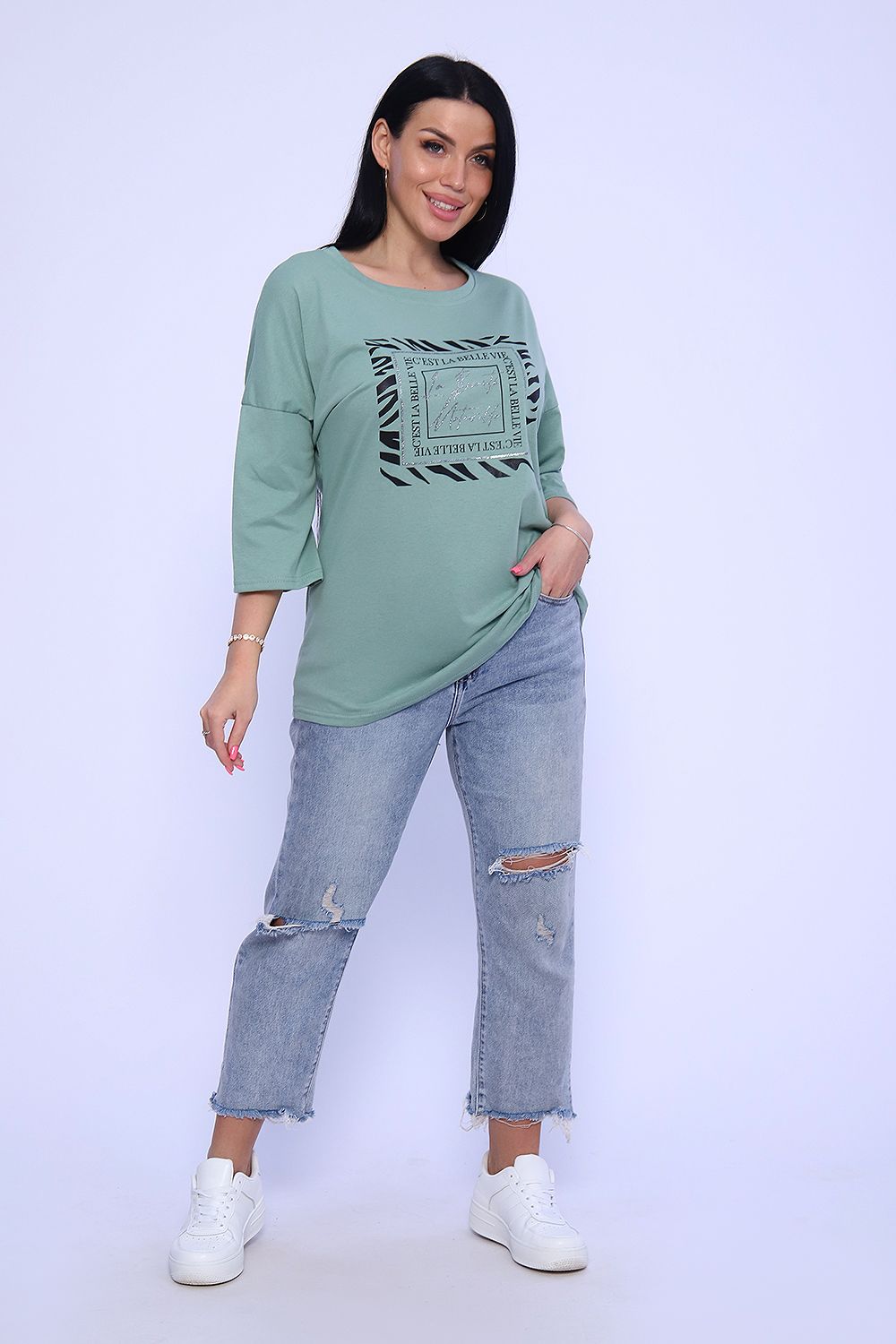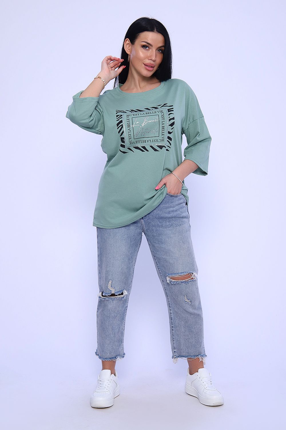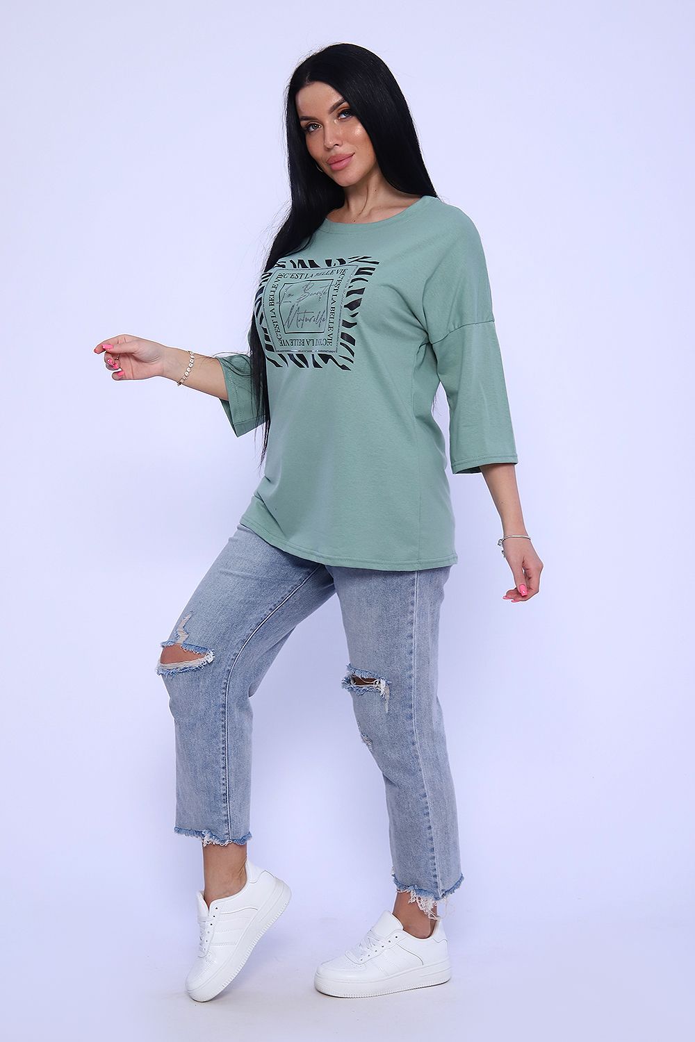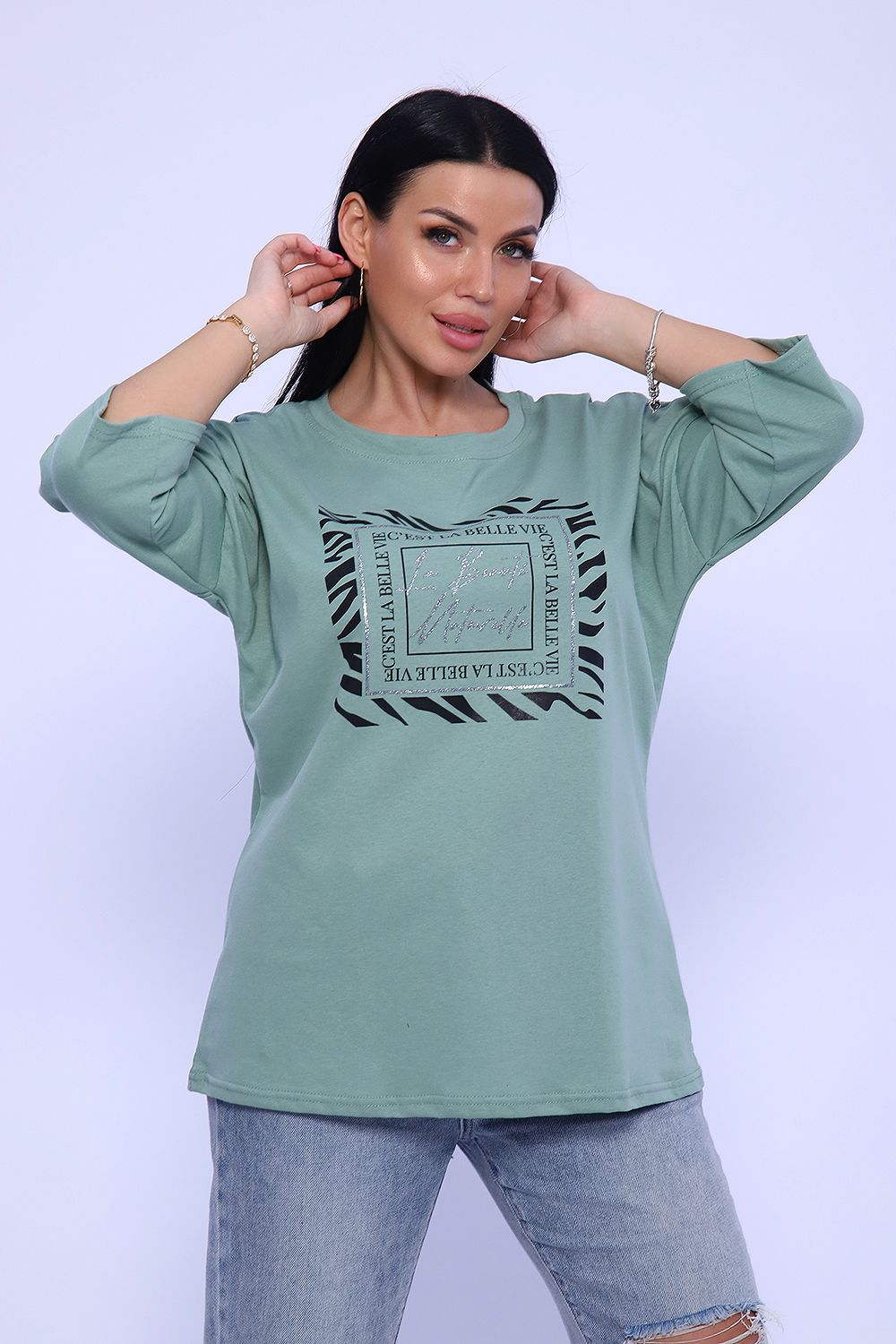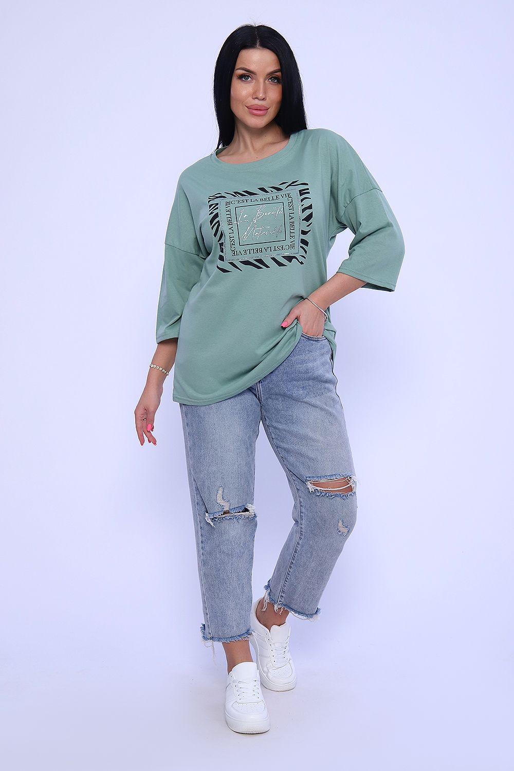 Туника из натурального хлопка прекрасный вариант для повседневного образа. Оригинальный принт с использованием глиттера и техники объёмной печати украшает модель, придавая ей изысканный вид. Обработка деталей вкруговую с закрепкой, рукав длиной 3/4, горловина втачная из основной ткани. Большие размеры!