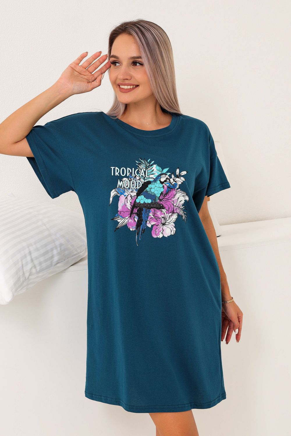 Туника приятно прилегает к телу и позволяет коже дышать. Оптимальная длина, короткие рукава и округлый вырез горловины отлично подойдет для дома и отдыха, дачи и прогулок.