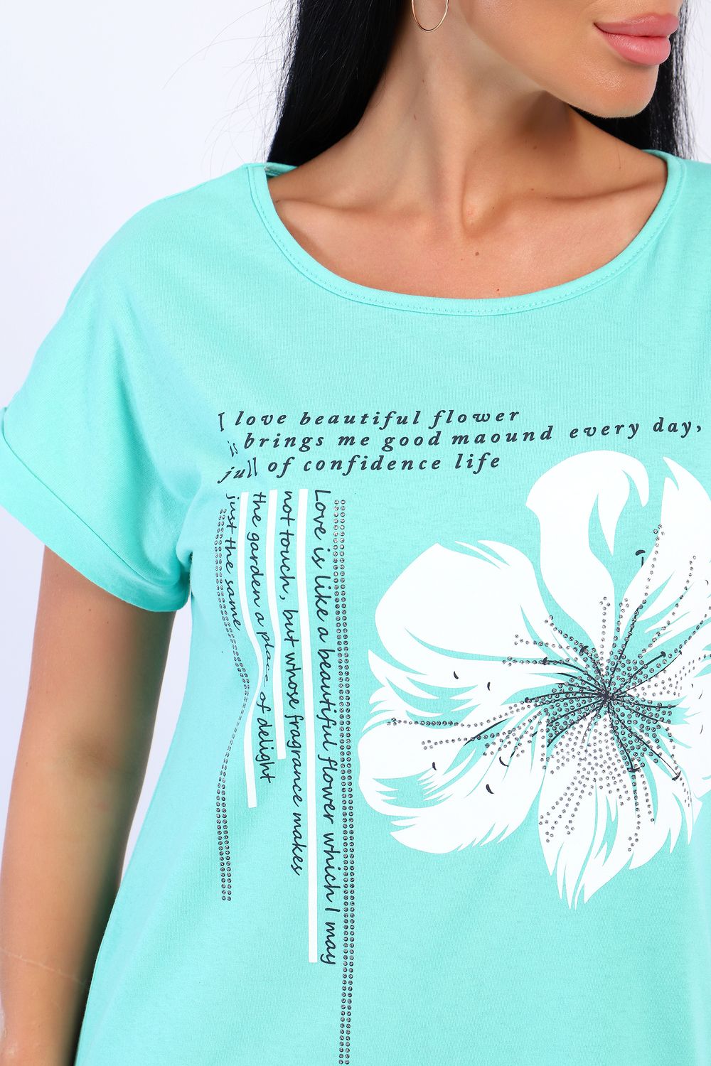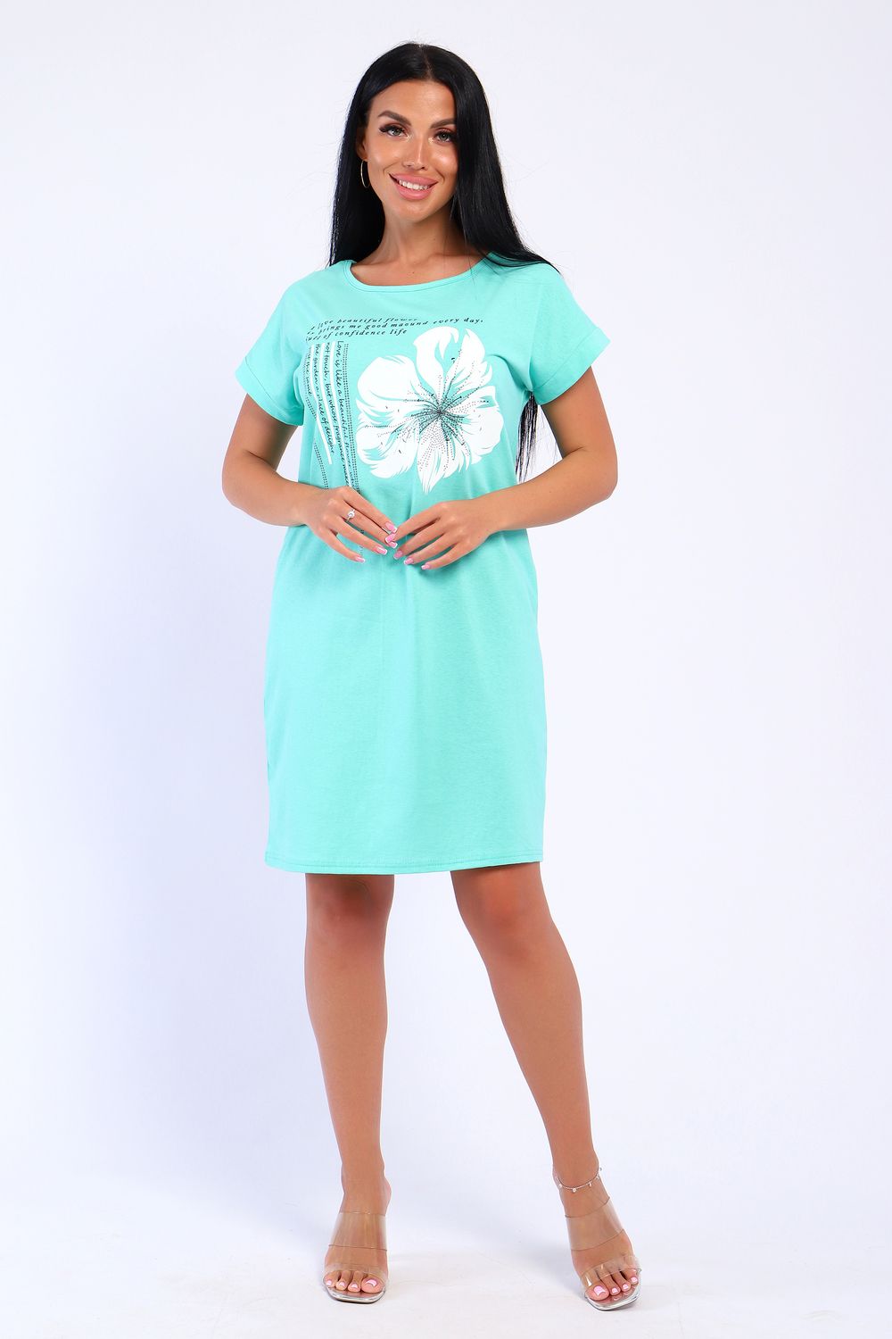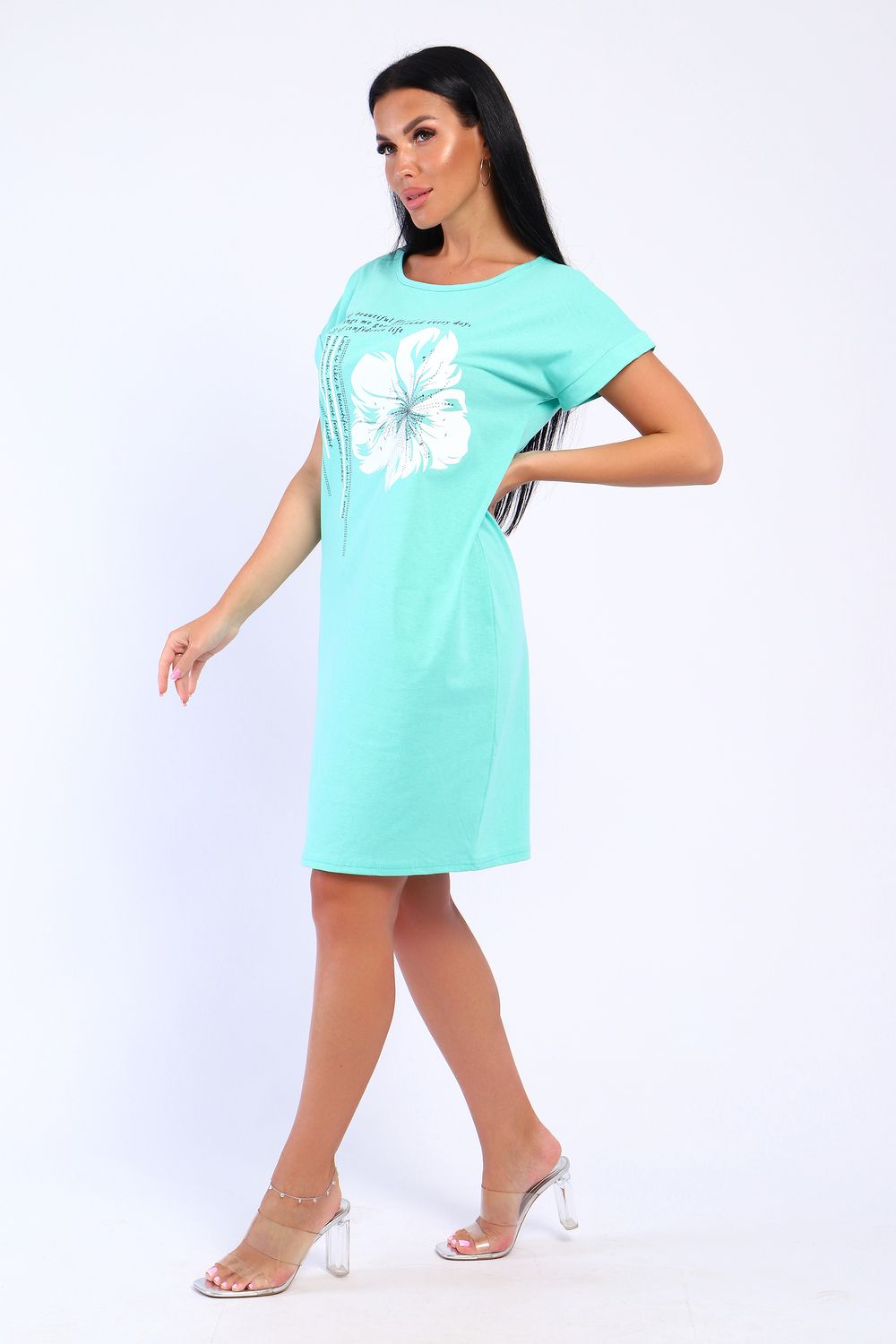 Туника женская с нежным принтом из мягкого хлопкового трикотажа. Модель слегка приталенного силуэта, круглая горловина обработана бейкой, спущенная пройма на манжете. Стильная, комфортная, приятная к телу туника незаменимая вещь в женском гардеробе для дома и отдыха.