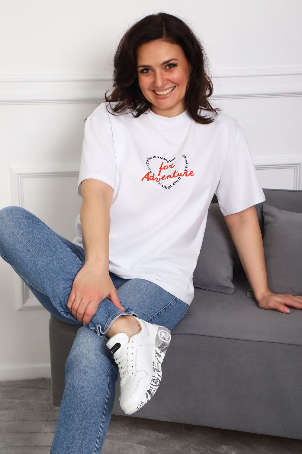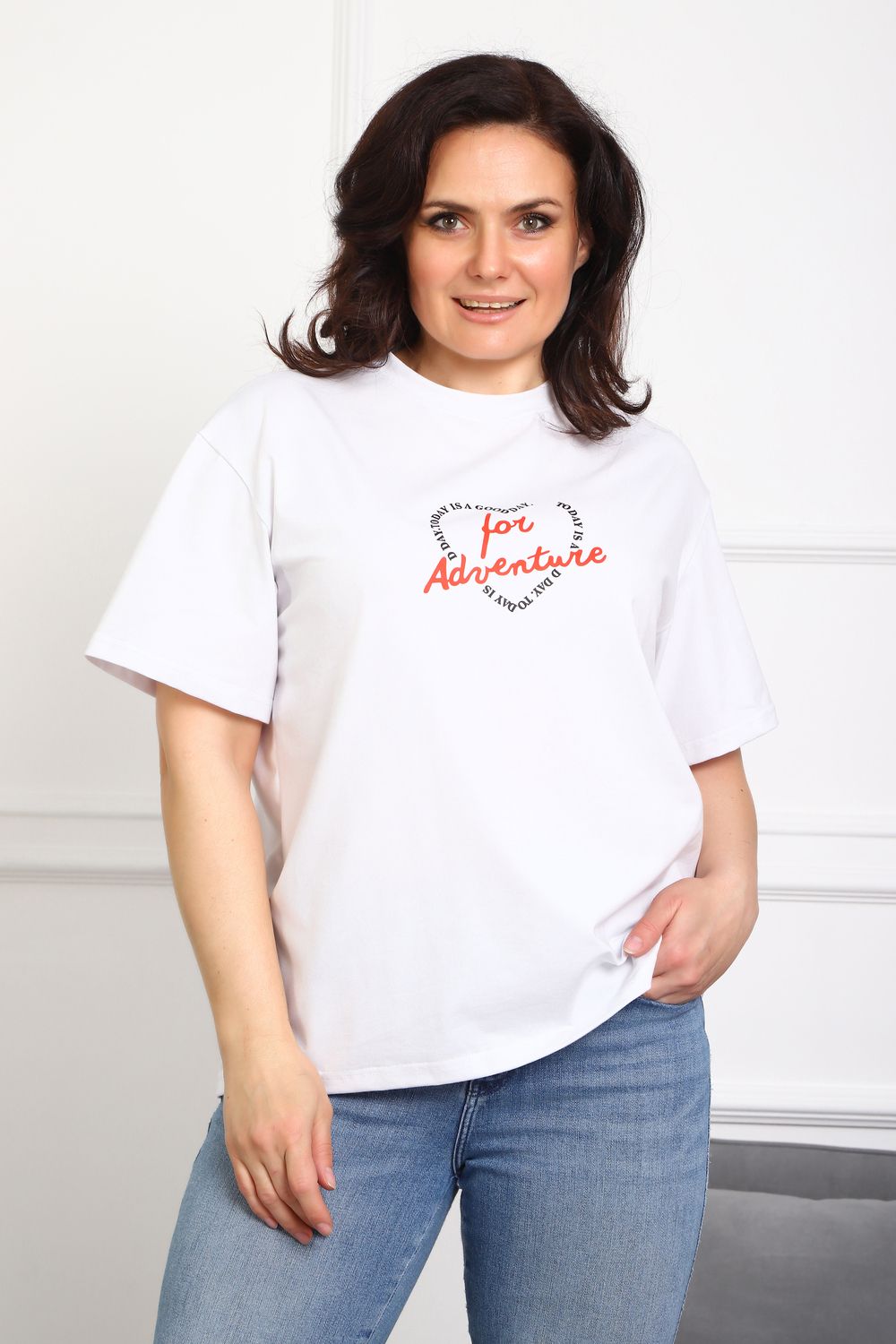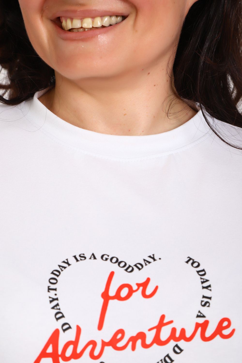 (Туника женская сердце с надписью) Женская туника-футболка из мягкого трикотажа кулирки, выполненная из смеси натуральных материалов: 95% хлопка и 5% лайкры, сочетает комфорт и стиль. Свобода посадки и прямой крой придают изделию легкий и непринужденный вид, подчеркивая природную красоту тела. Круглый вырез горловины и короткие рукава добавляют элегантности, делая эту вещь удобной для ежедневного ношения. Уникальной особенностью модели стал красочный принт на груди, представляющий собой надпись в форме сердца с позитивным посланием "Today Is A Good Day For Adventure", которое вдохновляет жить полной жизнью и каждый день встречать новые приключения. Туника доступна в сдвоенном размере, что позволяет удобно подбирать подходящий именно вам фасон, ощущая себя свободно и уверенно.