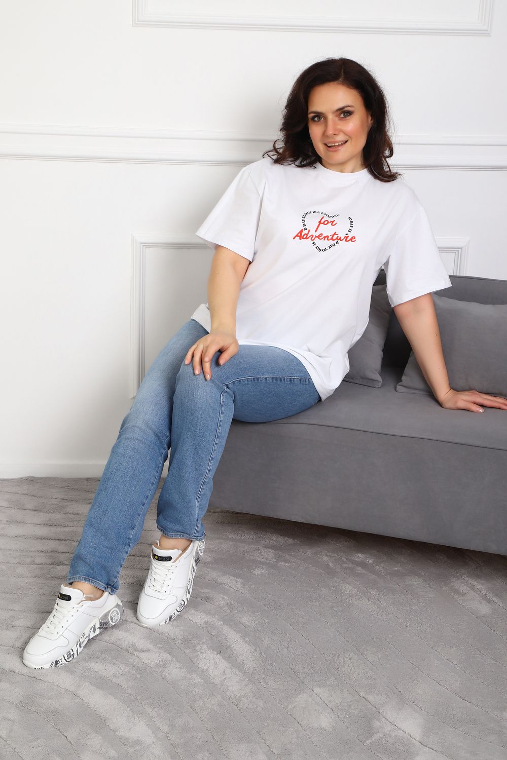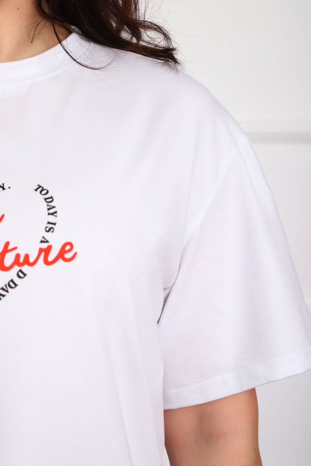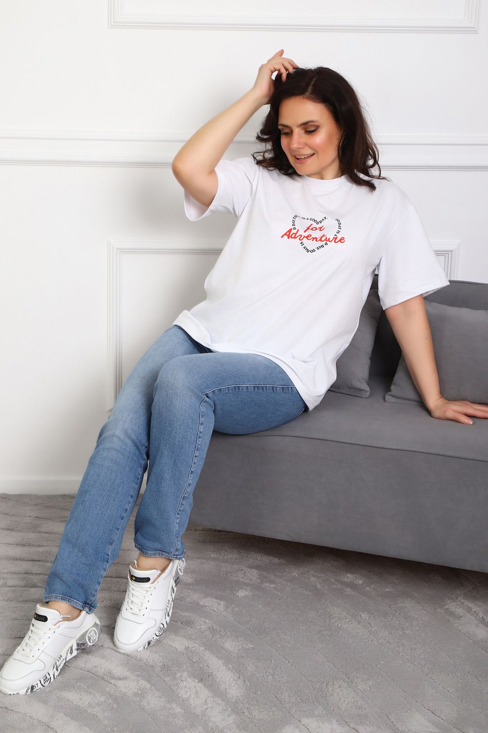 (Туника женская сердце с надписью) Женская туника-футболка из мягкого трикотажа кулирки, выполненная из смеси натуральных материалов: 95% хлопка и 5% лайкры, сочетает комфорт и стиль. Свобода посадки и прямой крой придают изделию легкий и непринужденный вид, подчеркивая природную красоту тела. Круглый вырез горловины и короткие рукава добавляют элегантности, делая эту вещь удобной для ежедневного ношения. Уникальной особенностью модели стал красочный принт на груди, представляющий собой надпись в форме сердца с позитивным посланием "Today Is A Good Day For Adventure", которое вдохновляет жить полной жизнью и каждый день встречать новые приключения. Туника доступна в сдвоенном размере, что позволяет удобно подбирать подходящий именно вам фасон, ощущая себя свободно и уверенно.
