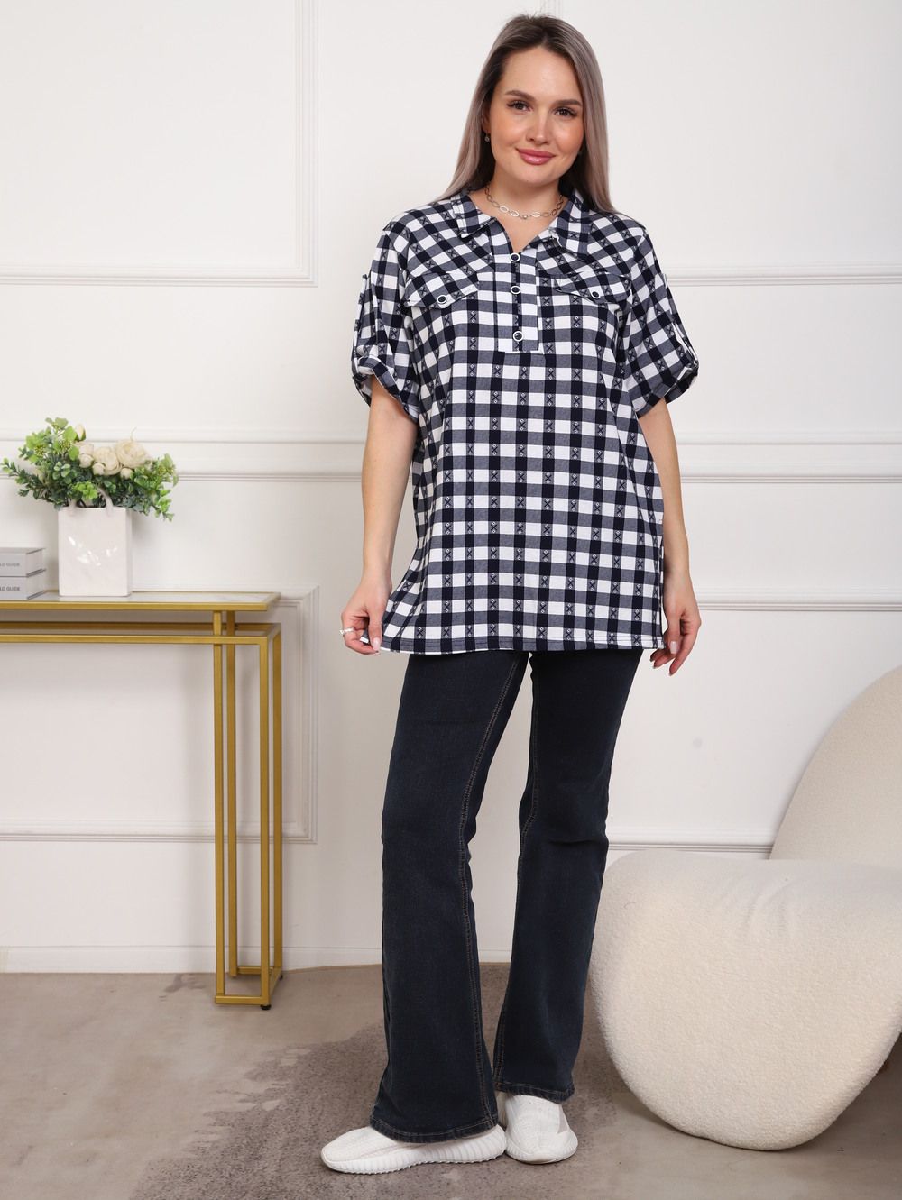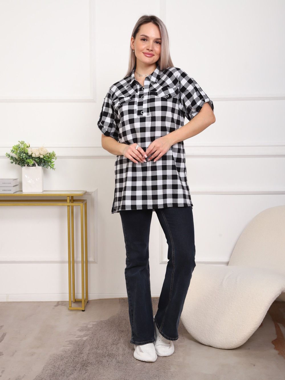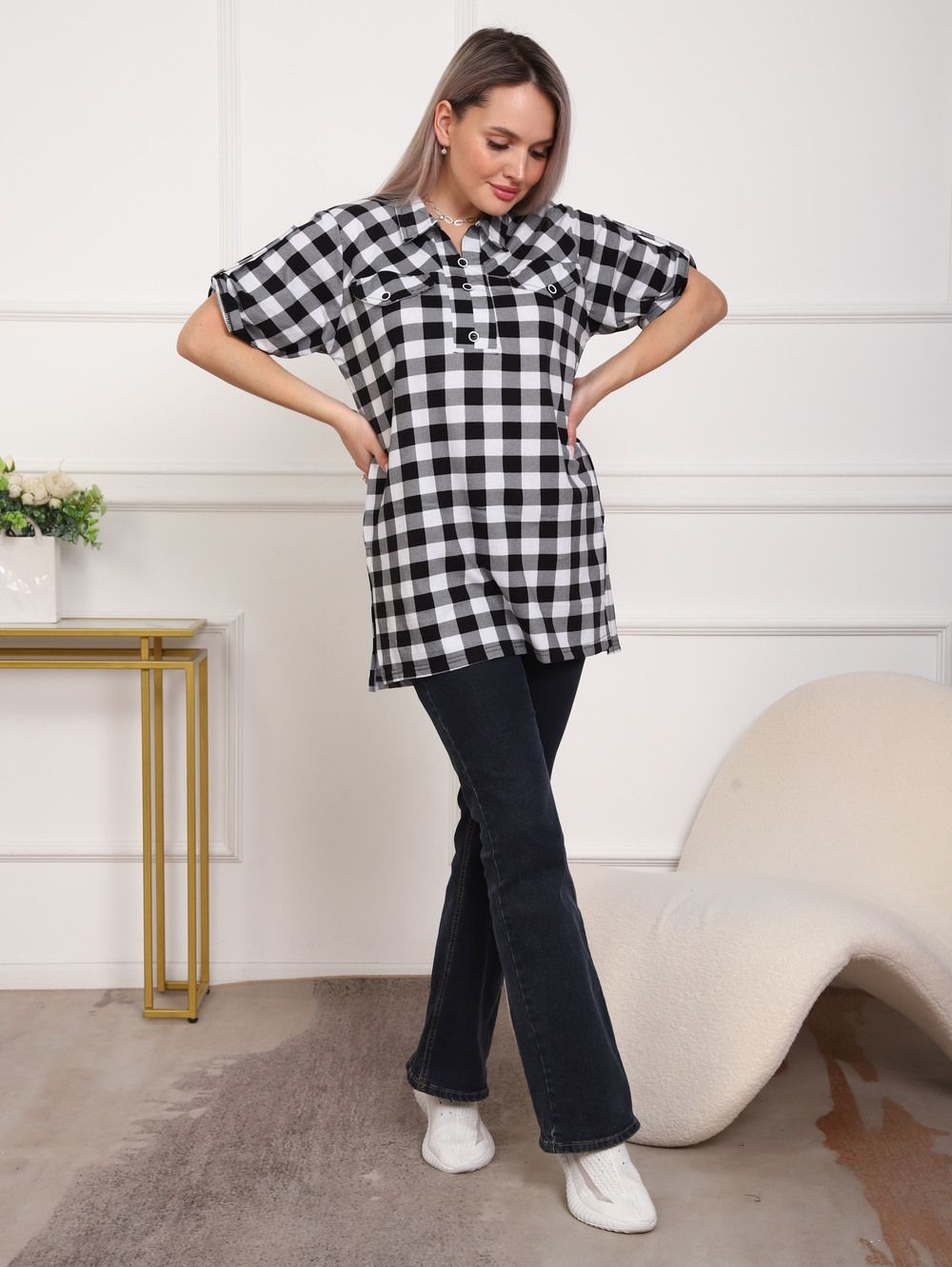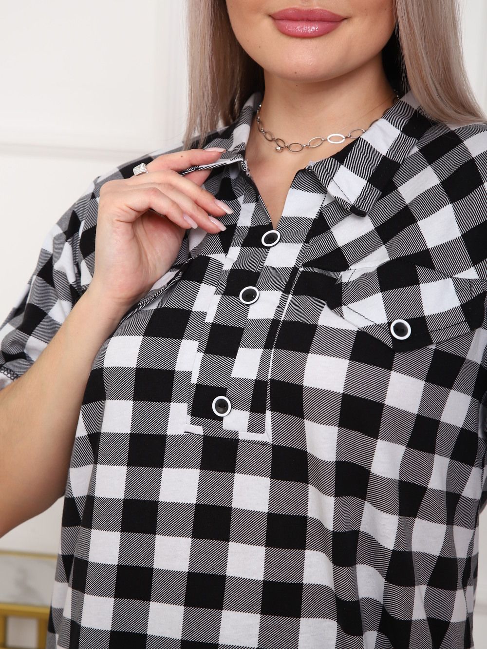 Туника женская арт. 5004 - черный/клетка