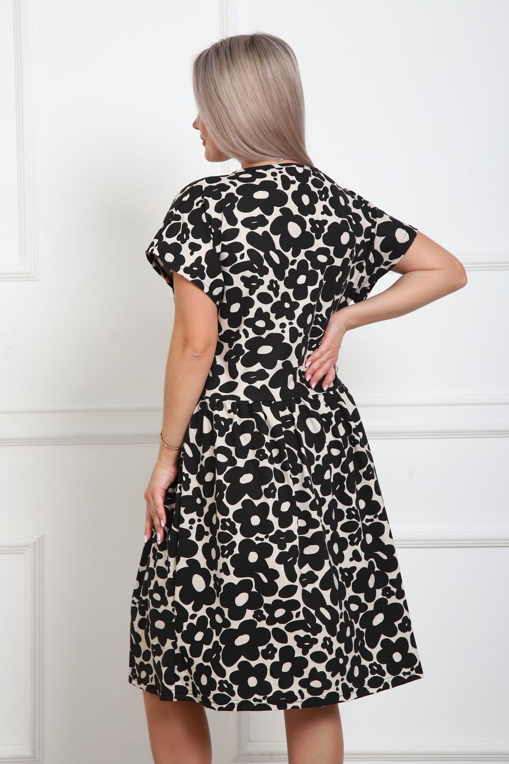 Представляем Вашему вниманию легкое платье. Горловина округлой формы. Рукав реглан короткий. Платье уместно всегда и везде - в таком наряде можно выглядеть очаровательно и романтично на прогулке. Натуральный состав, классическая длина и силуэт, наличие удобных карманов сделают это изделие любимым в Вашем гардеробе.