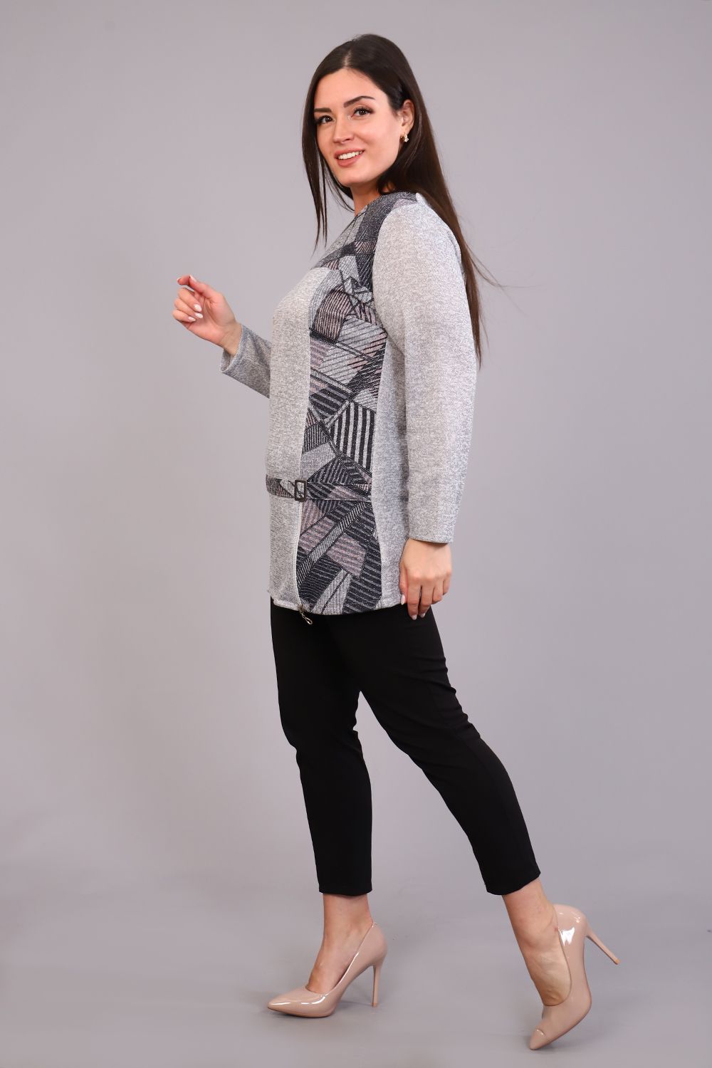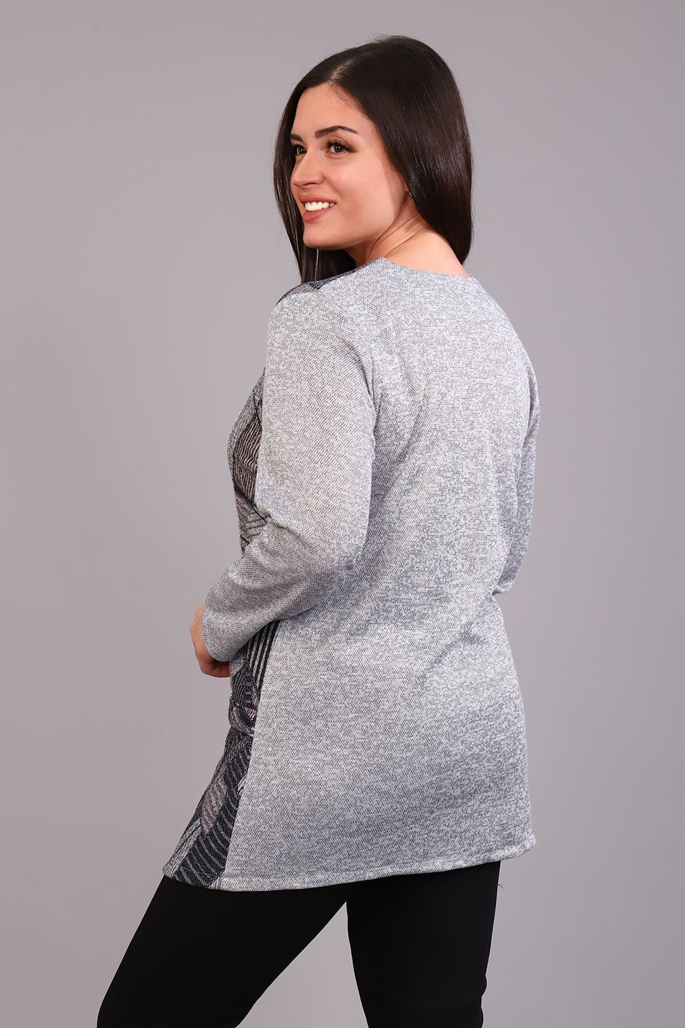 Удлиненная стильная туника с оригинальной отделкой. Отличное сочетание двух фактур, рукав ниже локтей. Эффектная, теплая модель на каждый день
