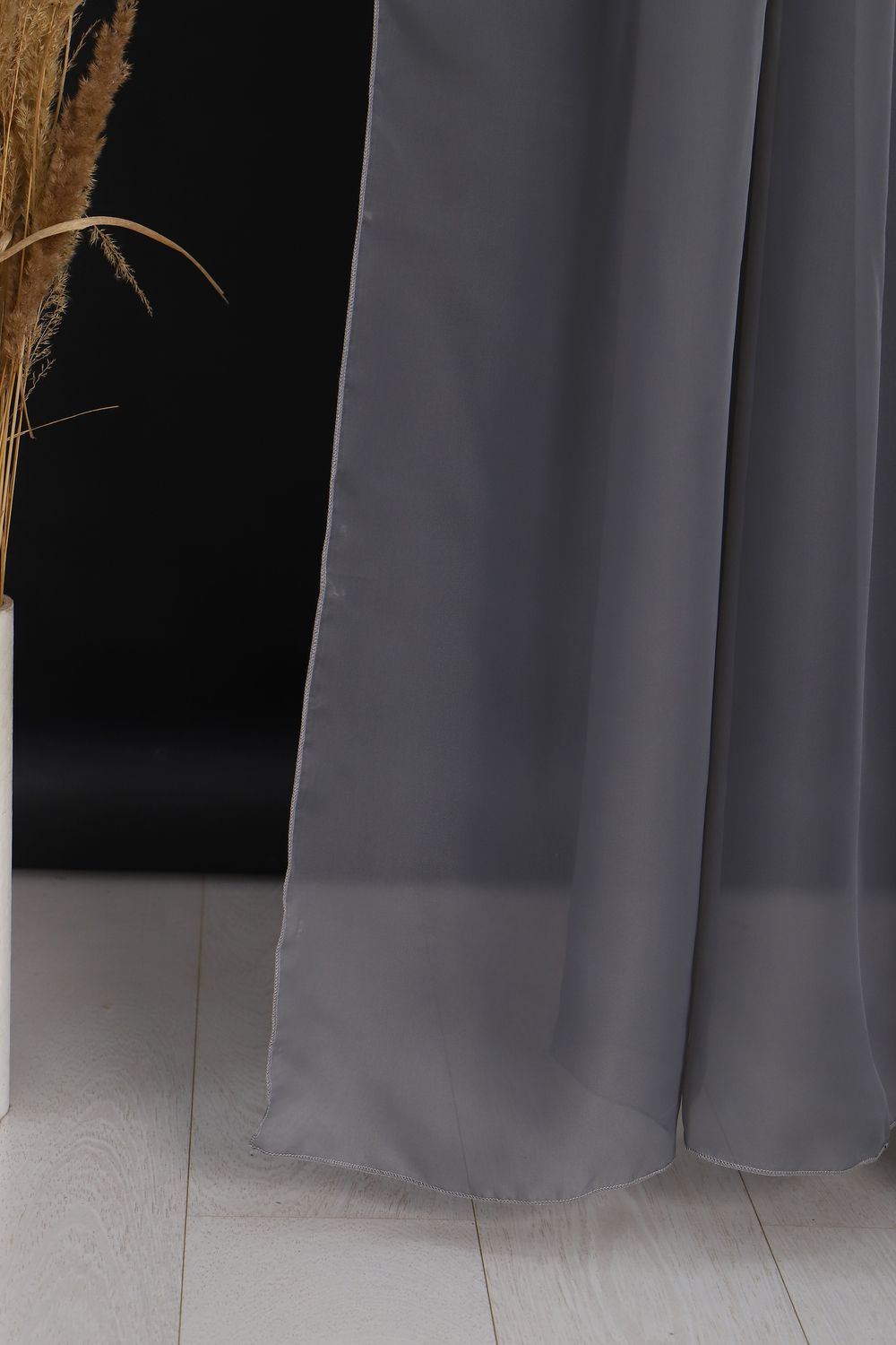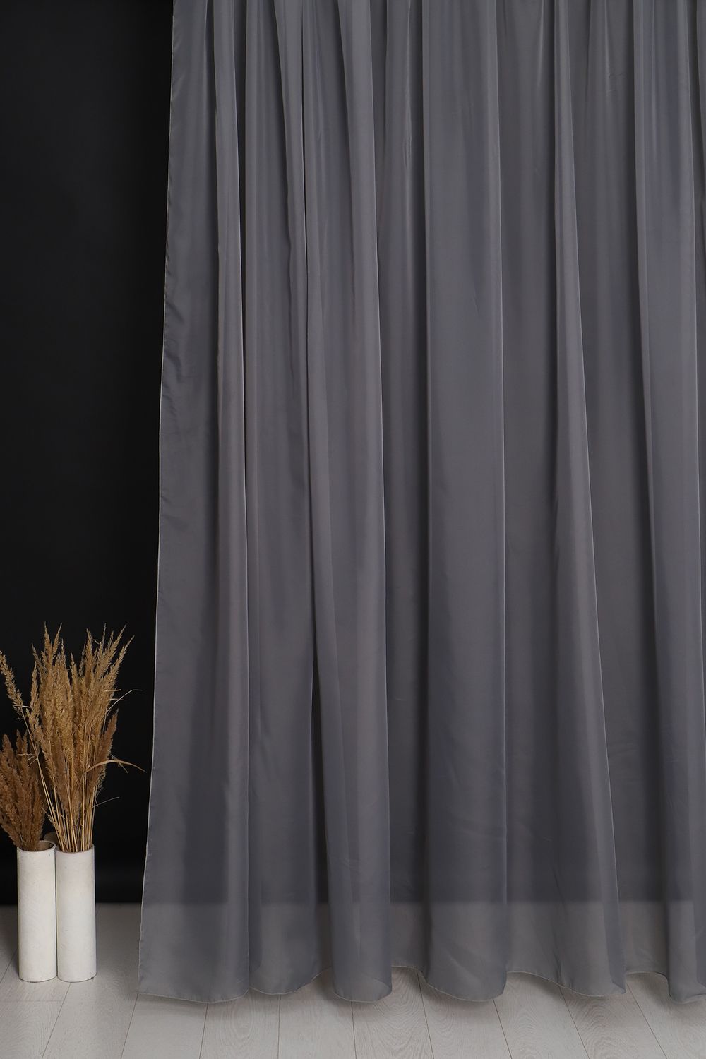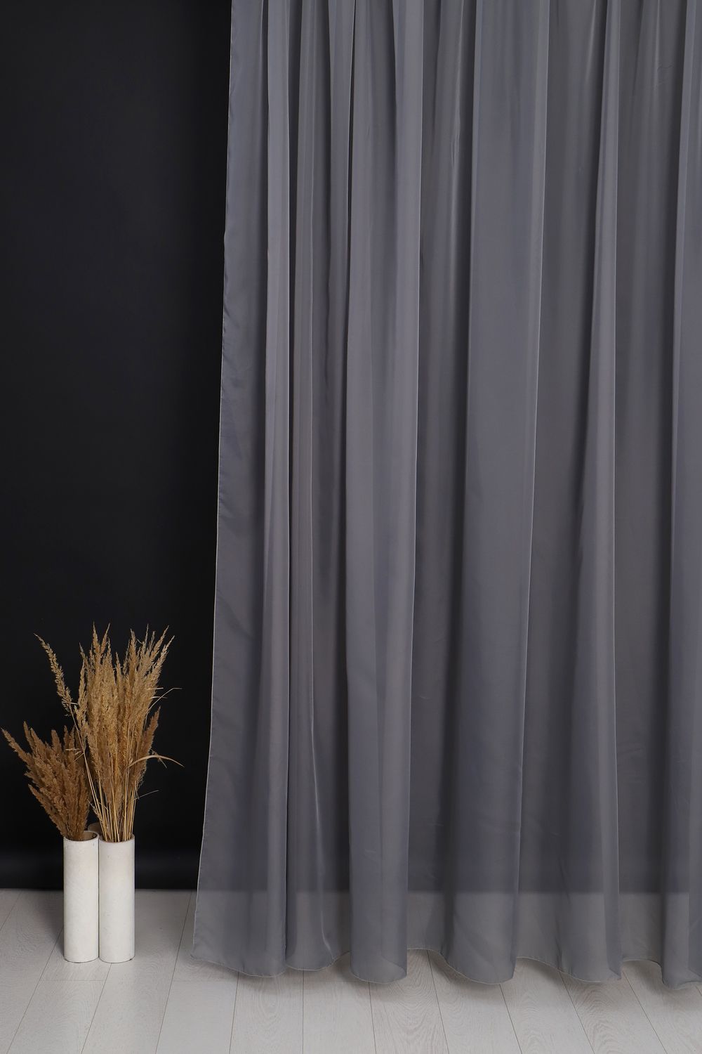 Тюль вуаль модного серого цвета, полупрозрачный, матовый, однотонный. Высота 240, 250, 260, 270, 280 и 290 см (на выбор), ширина на 300 см. Без утяжелителя.