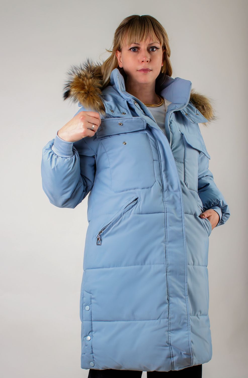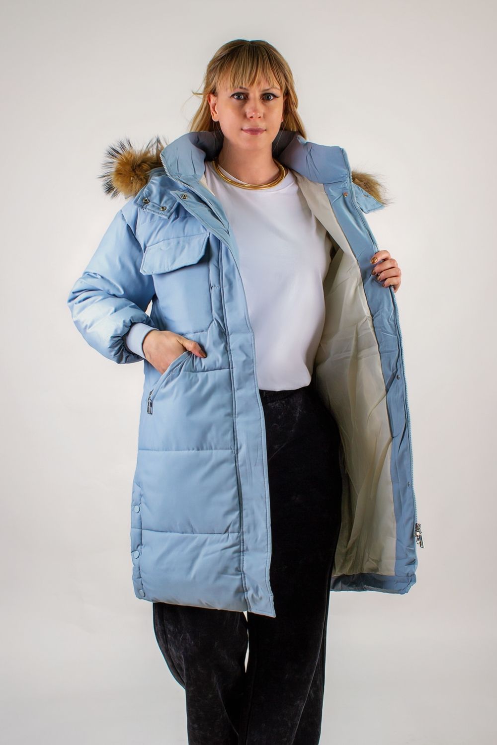 Удлиненная парка с капюшоном, арт 618, Демисезон., Евро-зима, арт. 618 – идеальный выбор для демисезонного или тепло-зимнего периода, когда хочется сочетать максимальное тепло и безупречный городской стиль. Парка выполнена в актуальном матовом голубом оттенке и обладает продуманным функциональным кроем: длина до колен защищает от ветра и непогоды, сохраняя свободу движений и легкость образа.