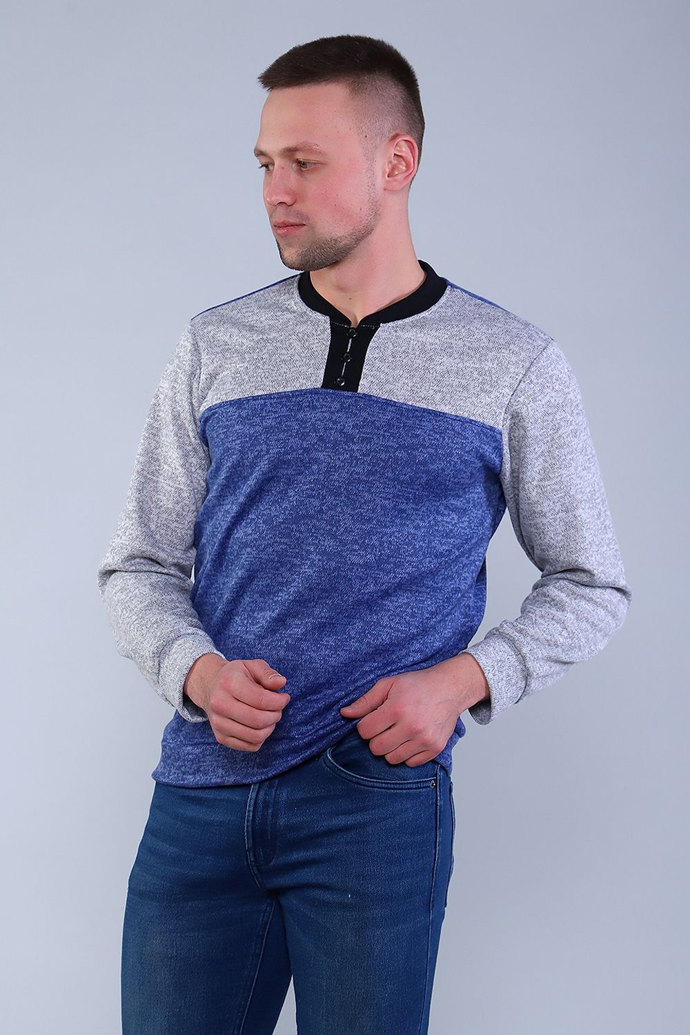 Модный и стильный мужской джемпер, длинный рукав на манжете. V-образный воротник на пуговицах. Низ изделия также на манжете. Удобно и практично.