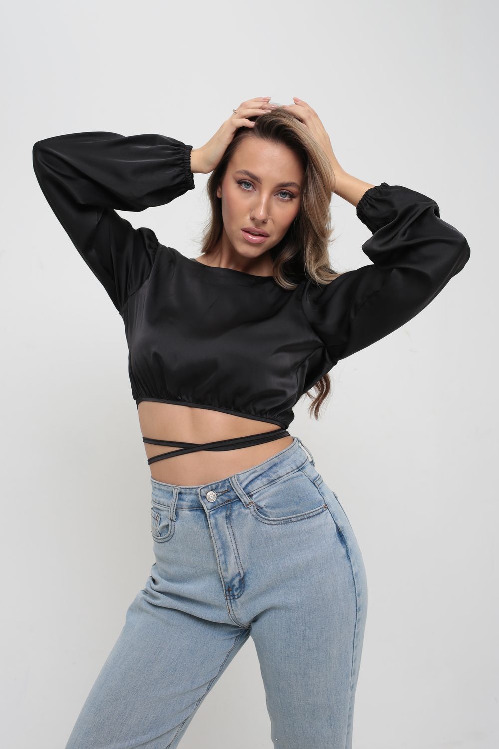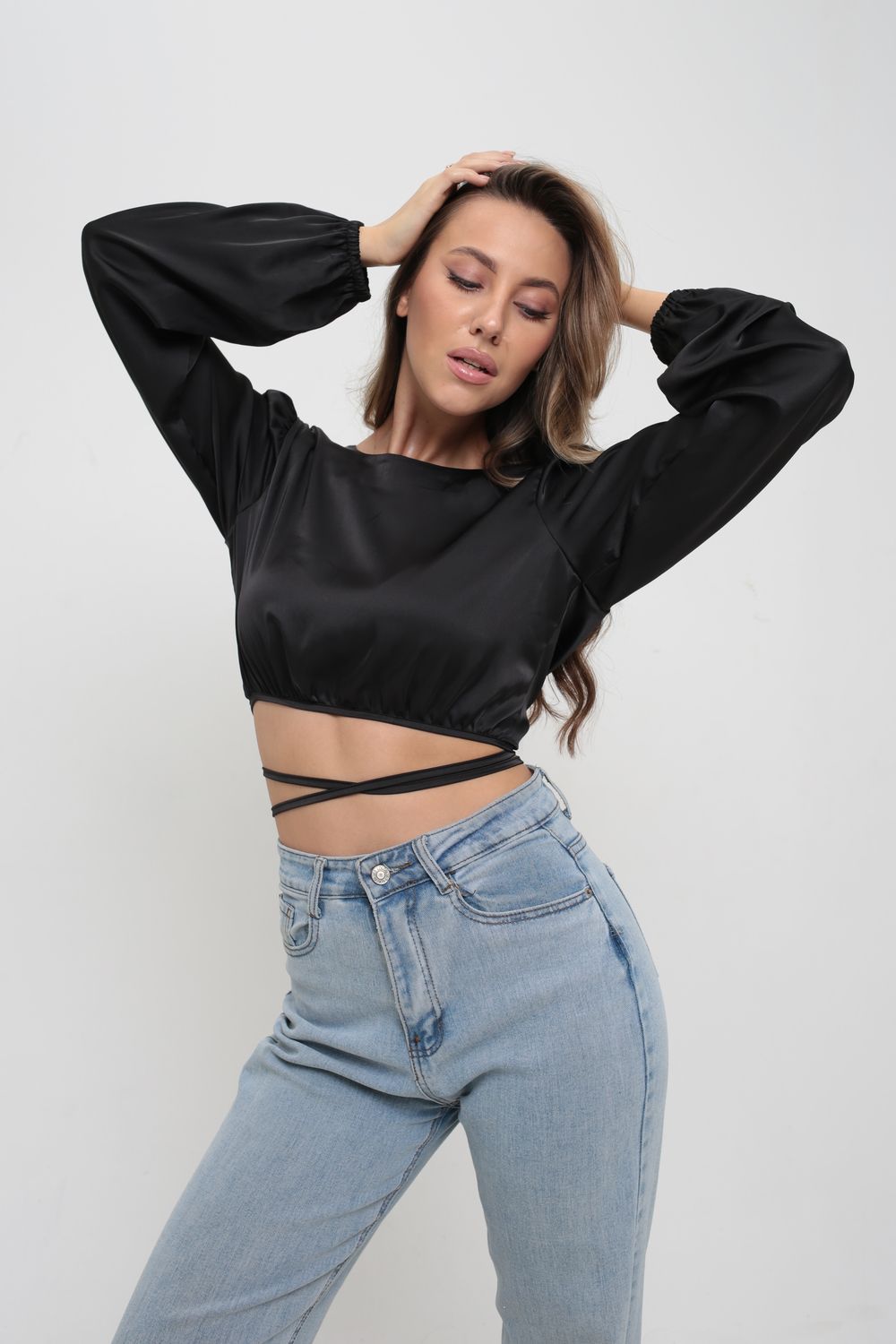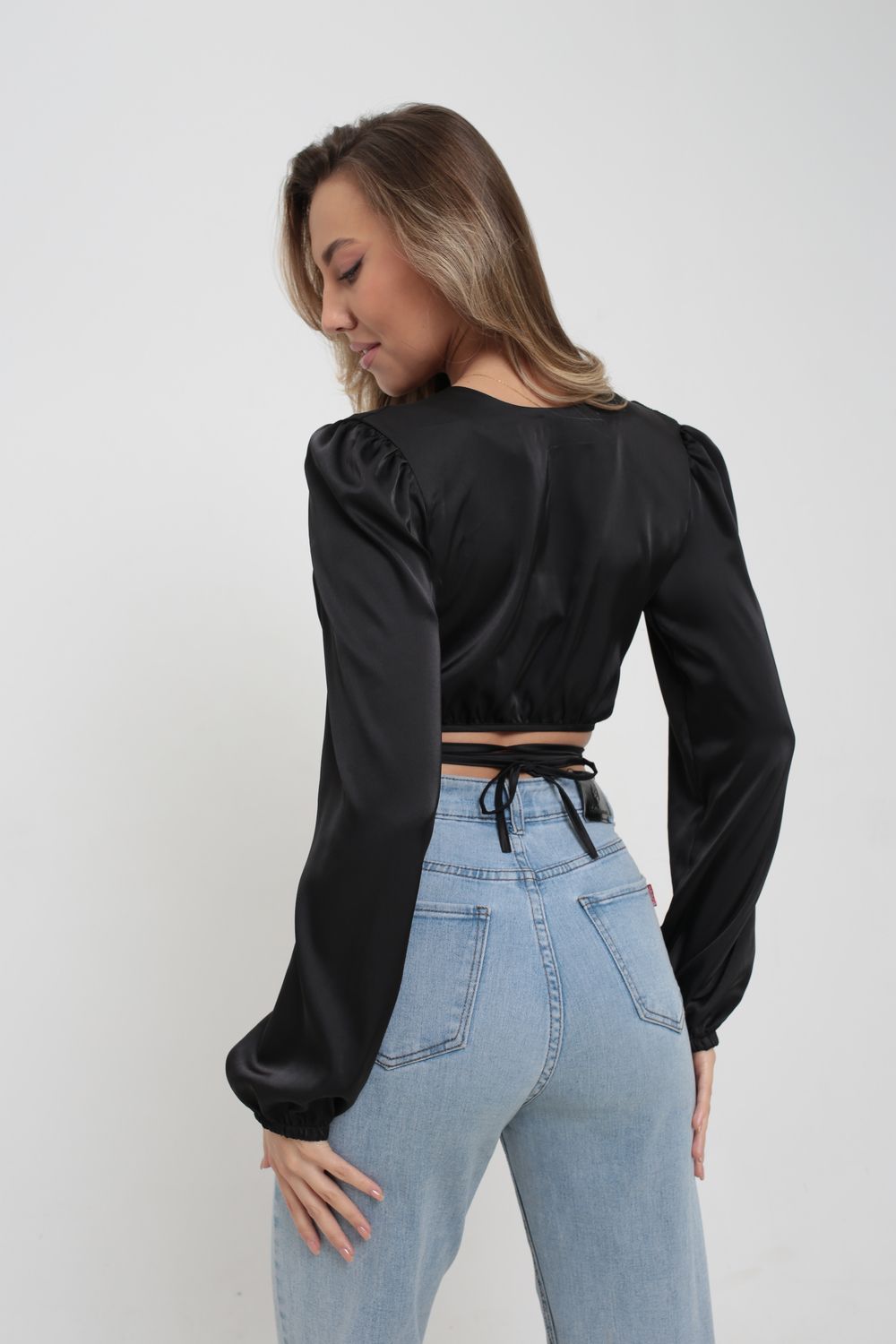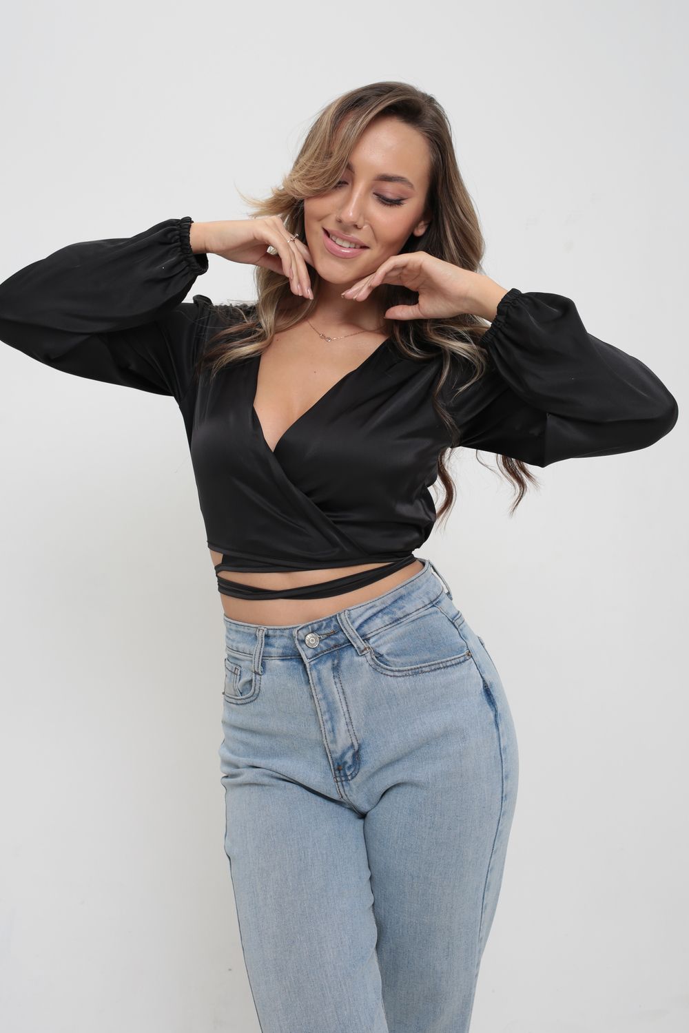 Уникальный топ, который подойдёт под любой размер и под любой тип фигуры. Стильный однотонный топ на запах бриллиантово-белого, синего цветов. Это модная молодежная одежда, с которой легко создавать деловые, праздничные и вечерние образы. Приталенный топ с длинным рукавом и эффектным вырезом идеален как для офиса, так и для торжественном мероприятия. Топ с длинным рукавом с манжетом на резинке можно носить запахом как сзади, так и спереди. На талии топ перевязывается завязками в два оборота. Ткань мягкая приятная к телу.