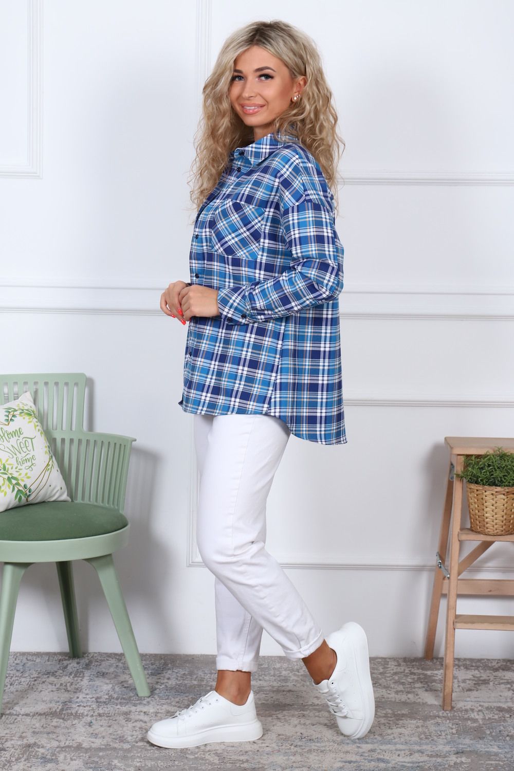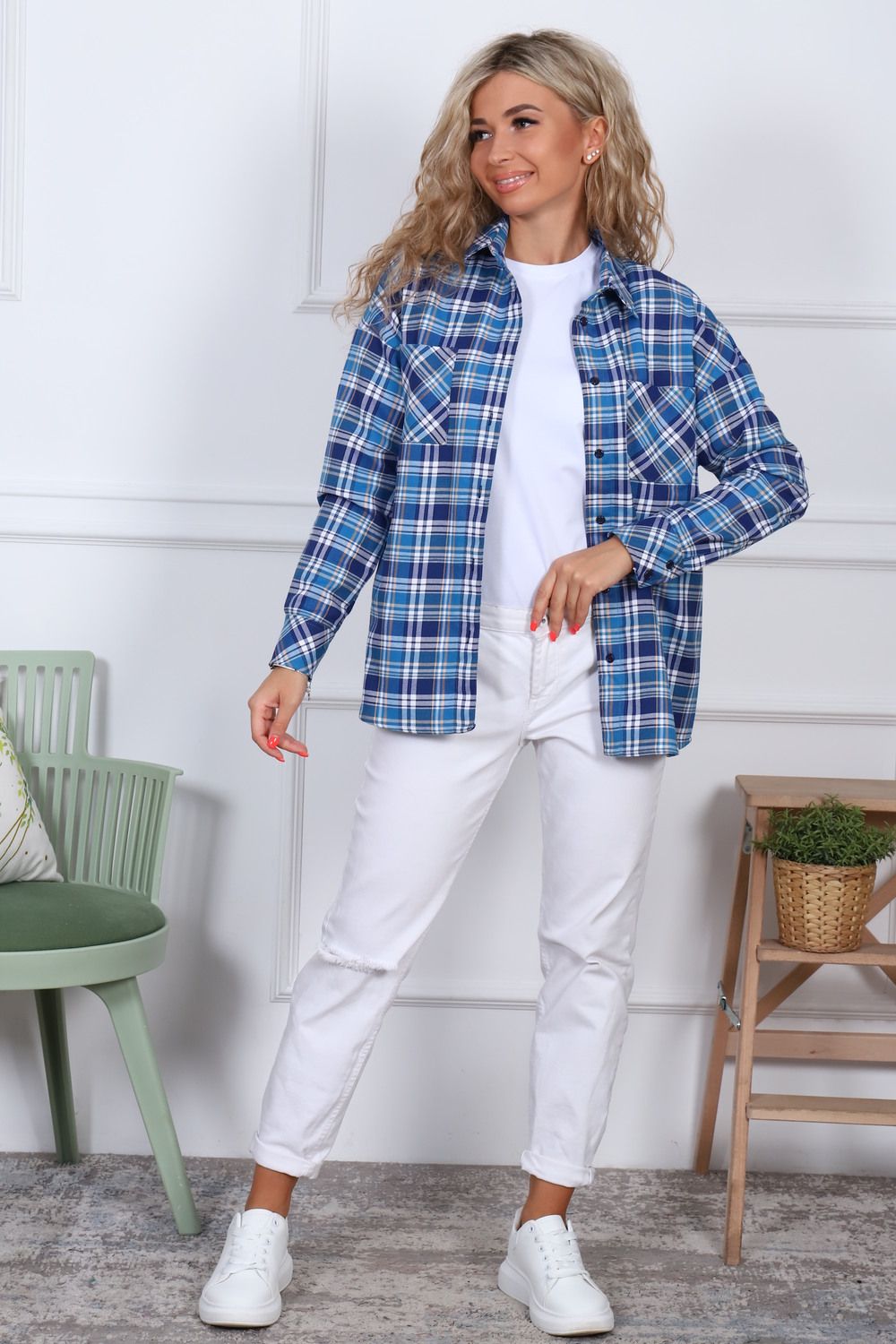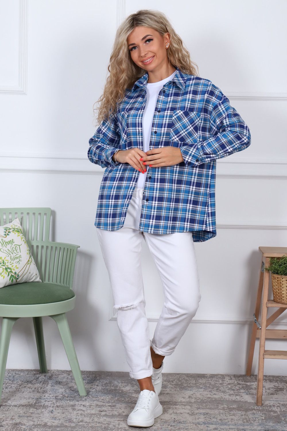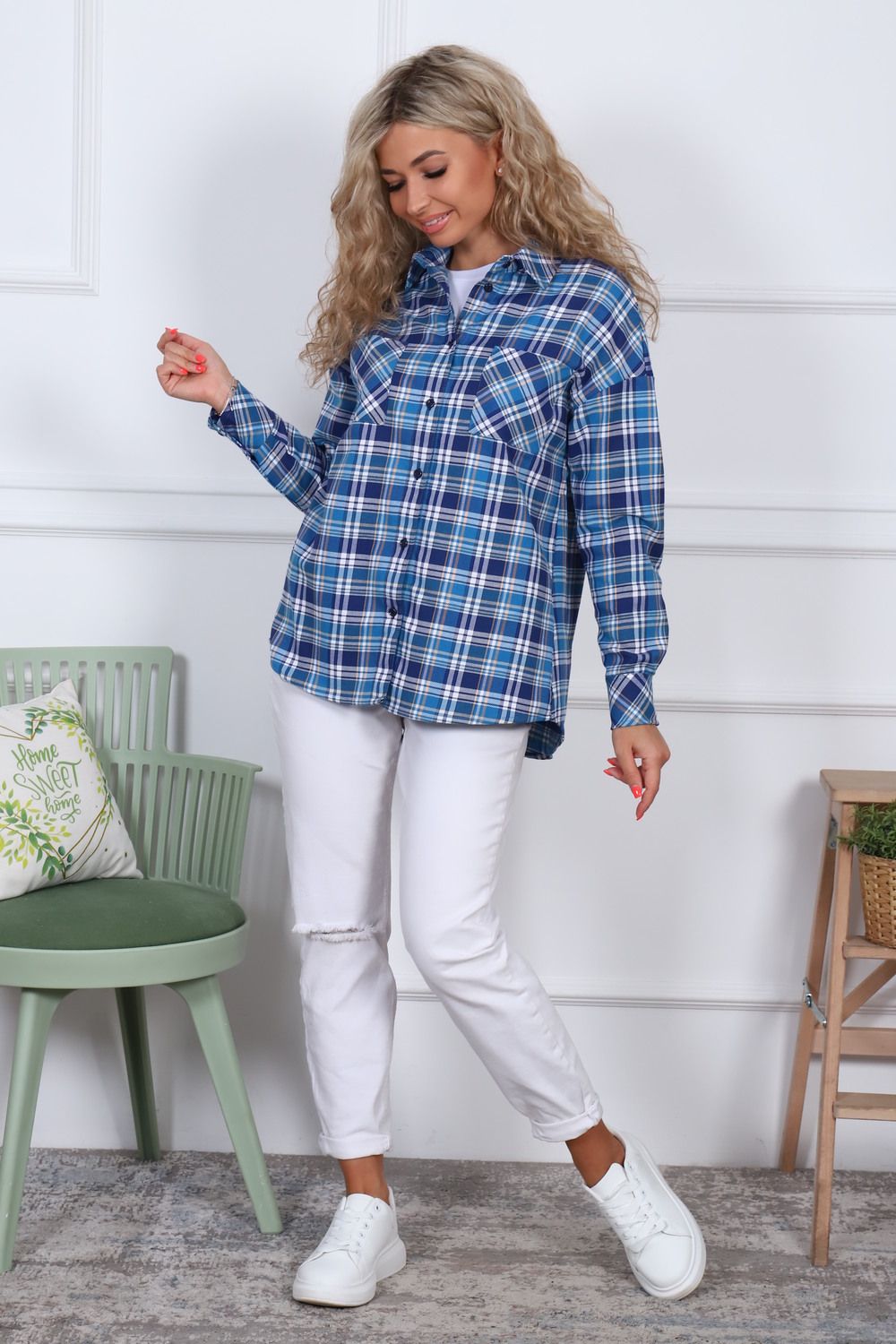 Рубашка оверсайз, тёплая, в клетку, из ткани премиального качества - с начесом с изнанки,100% хлопок (фуле). Рубашка с воротником, рукав длинный, 2 кармана на груди, спинка длиннее полочки.
