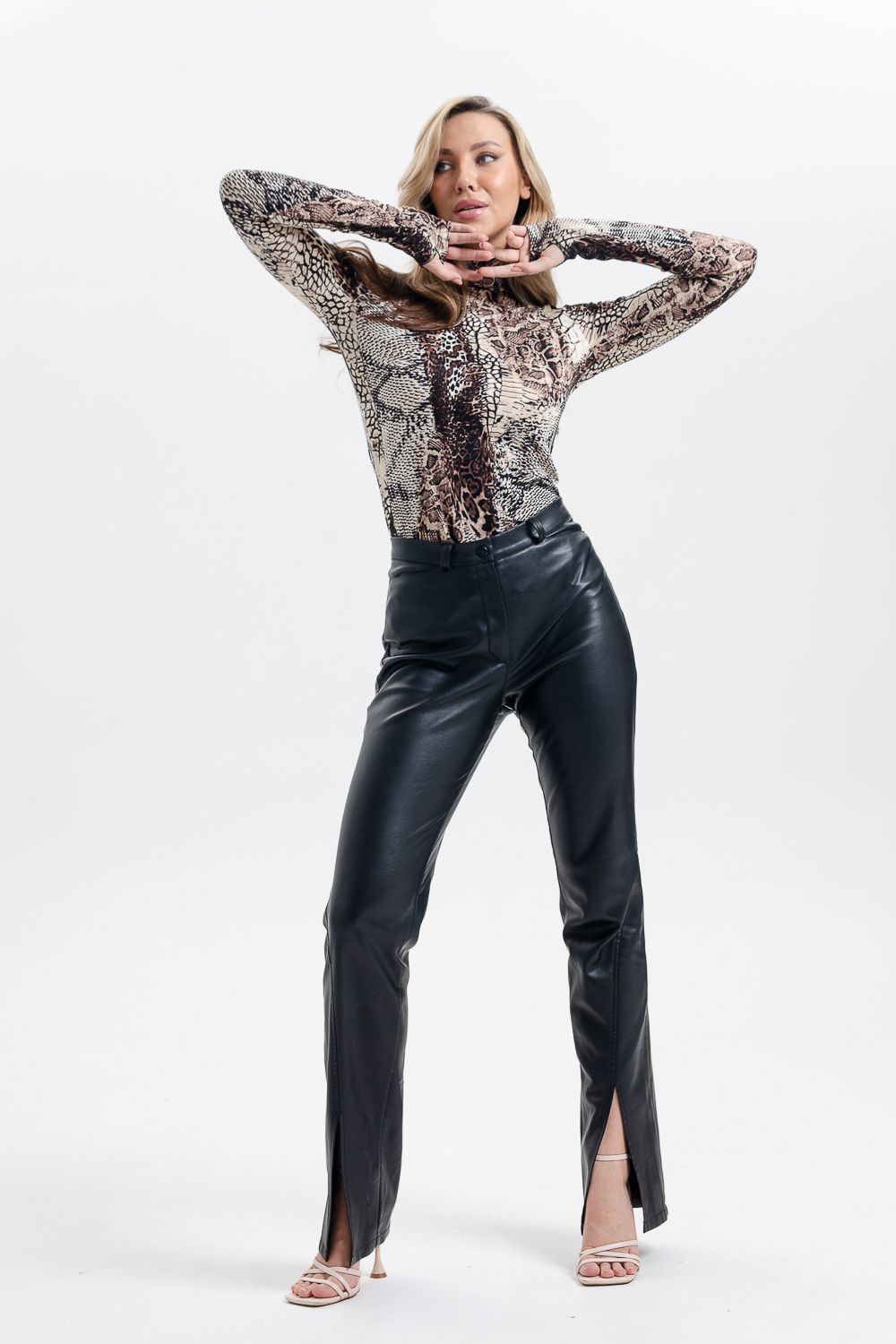 Водолазка - базовый элемент гардероба, который создаёт лаконичный образ и становится нежным дополнением к женственному изящному луку. Модель выполнена из мягкой вискозы, ткань лёгкая в уходе, хорошо тянется, что придаёт комфорт в движении и удобство в использовании. Благодаря приталенному крою и эластичным свойствам ткани, наша водолазка облегает фигуру. Воротник-стойка имеет комфортную высоту и плотно прилегает к шее. Современный тренд стиля и комфорта - длинный рукав с прорезью под пальчик создаёт уютный и изящный образ. Принт, имитирующий змеиную кожу, не оставит вас равнодушной, универсальность этой расцветки позволяет сочетать её с разнообразной цветовой палитрой и элементами одежды.