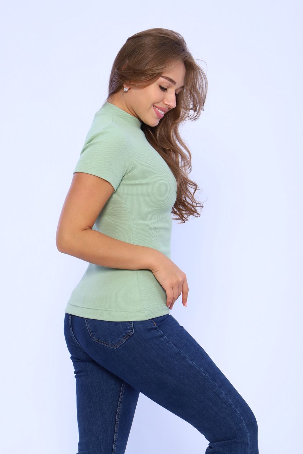 Водолазка женская с коротким рукавом, приталенная из кашкорсе. Воротник стойка, рукава и низ изделия подогнуты на плоскошовной машине. Легкая в уходе. Идеальный вариант для повседневной носки.