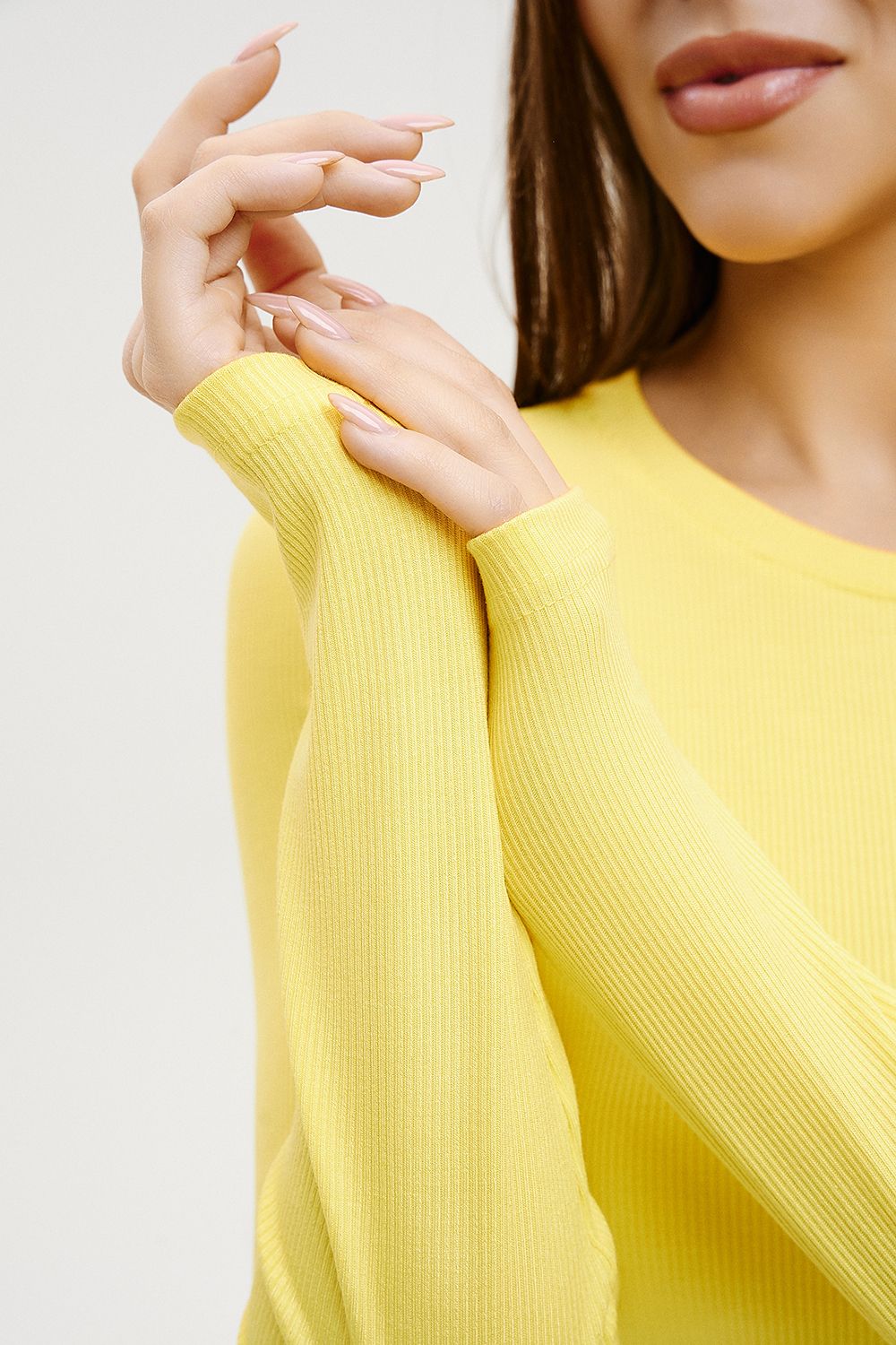 Водолазка женская, прилегающего силуэта. Представляет собой базовую вещь из тонкого трикотажа в рубчик с округлой горловиной.