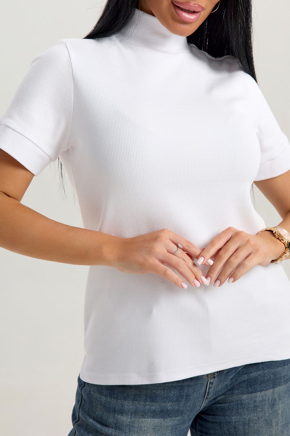 Эта стильная водолазка с короткими рукавами станет отличным дополнением гардероба современных женщин. Изготовленная из тонкого трикотажа, она обеспечивает комфорт в летние дни. Футболка с высоким воротником не только согреет в прохладную погоду, но и добавит элегантности вашему образу. Легко комбинируется с различными предметами гардероба: прекрасно смотрится как с джинсами, так и с юбками. Благодаря продуманному крою и современному стилю, данная водолазка станет основой вашего базового капсульного гардероба.