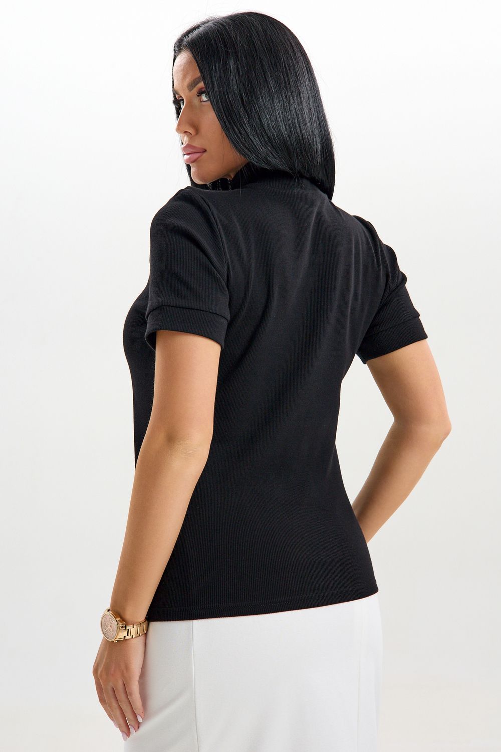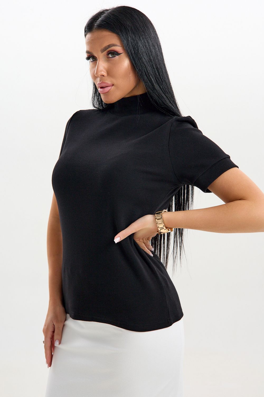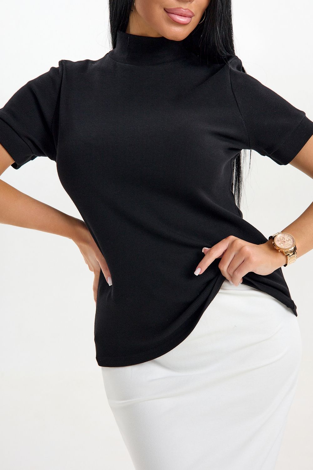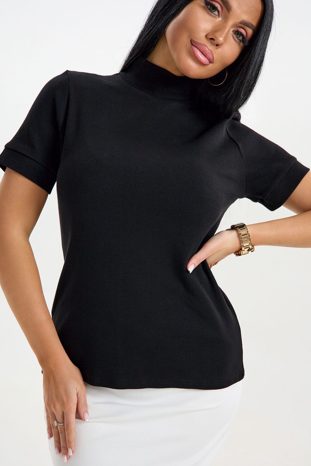 Эта стильная водолазка с короткими рукавами станет отличным дополнением гардероба современных женщин. Изготовленная из тонкого трикотажа, она обеспечивает комфорт в летние дни. Футболка с высоким воротником не только согреет в прохладную погоду, но и добавит элегантности вашему образу. Легко комбинируется с различными предметами гардероба: прекрасно смотрится как с джинсами, так и с юбками. Благодаря продуманному крою и современному стилю, данная водолазка станет основой вашего базового капсульного гардероба.
