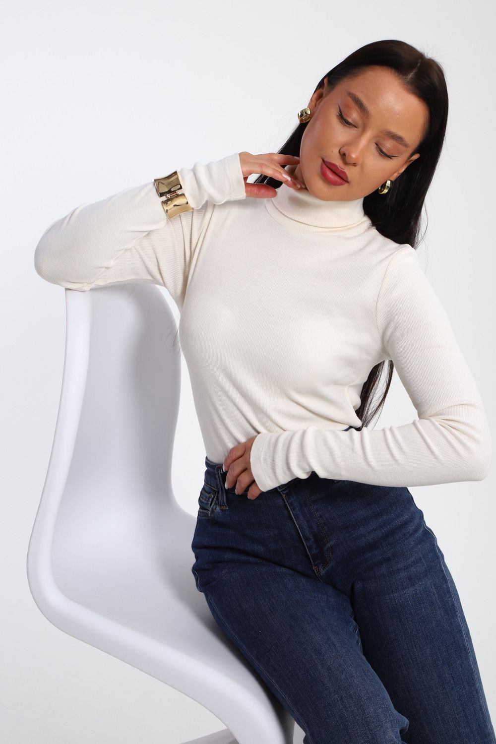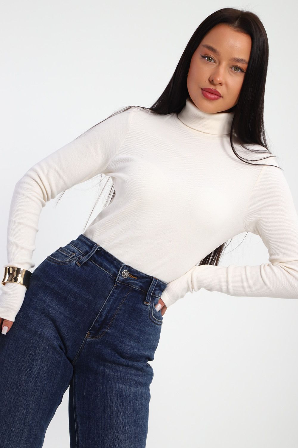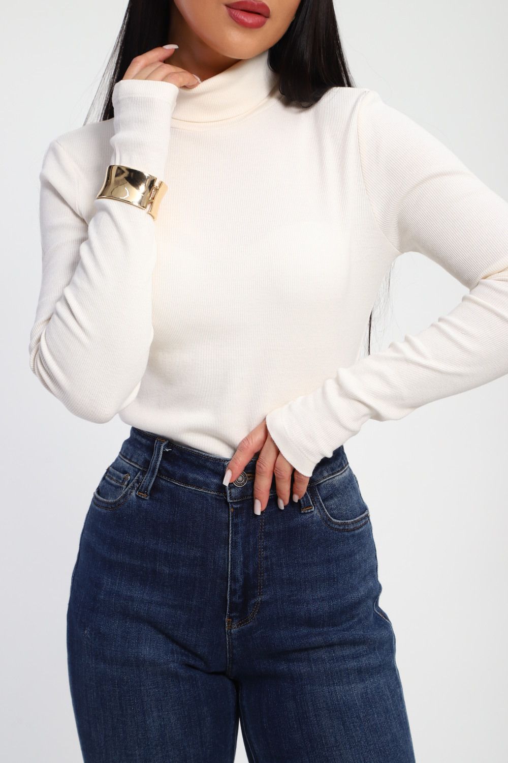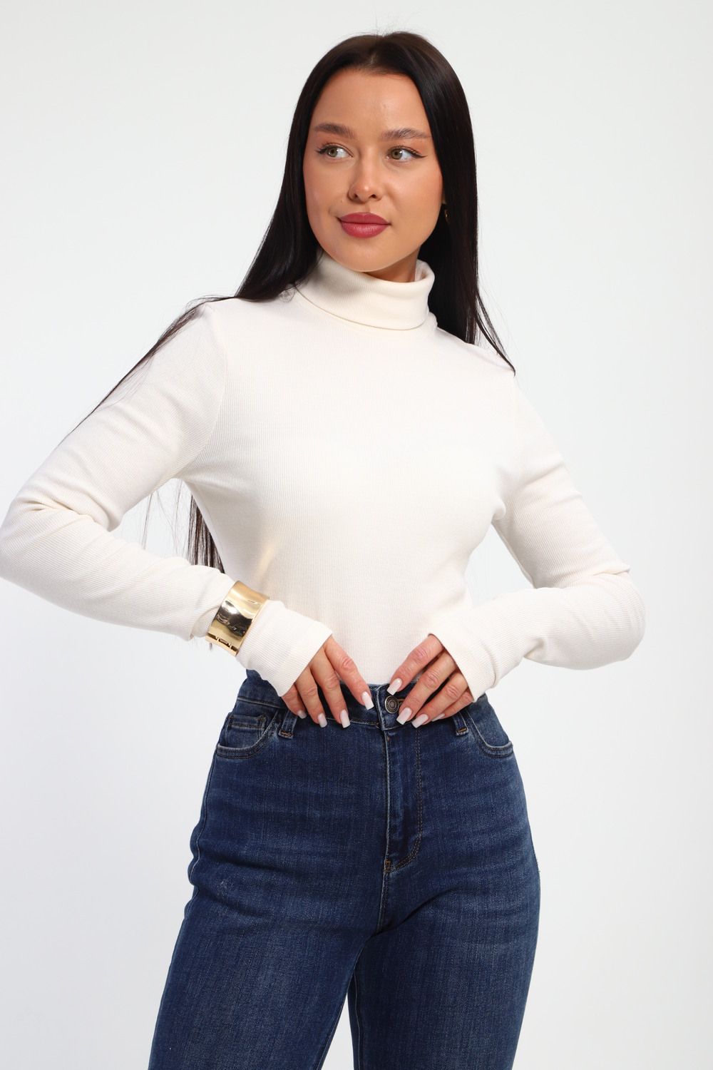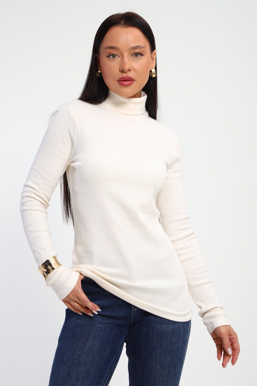 Водолазка женская с горлом теплая 32103 - кремовый