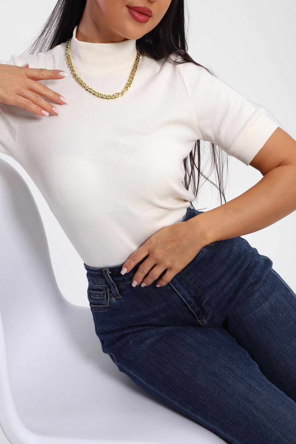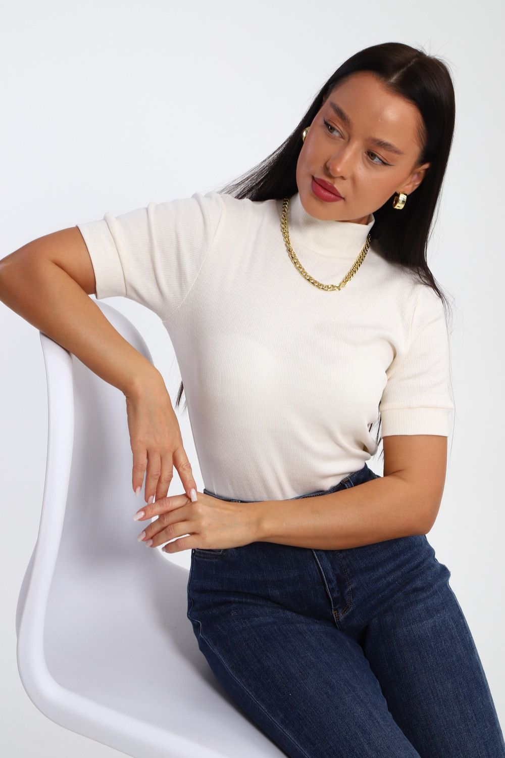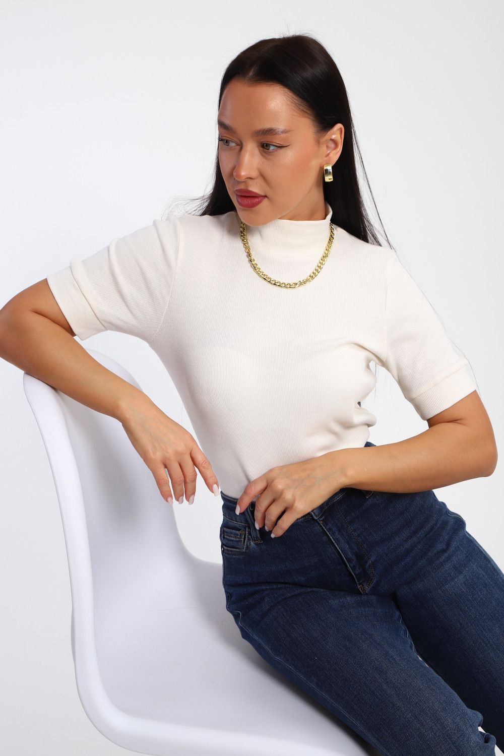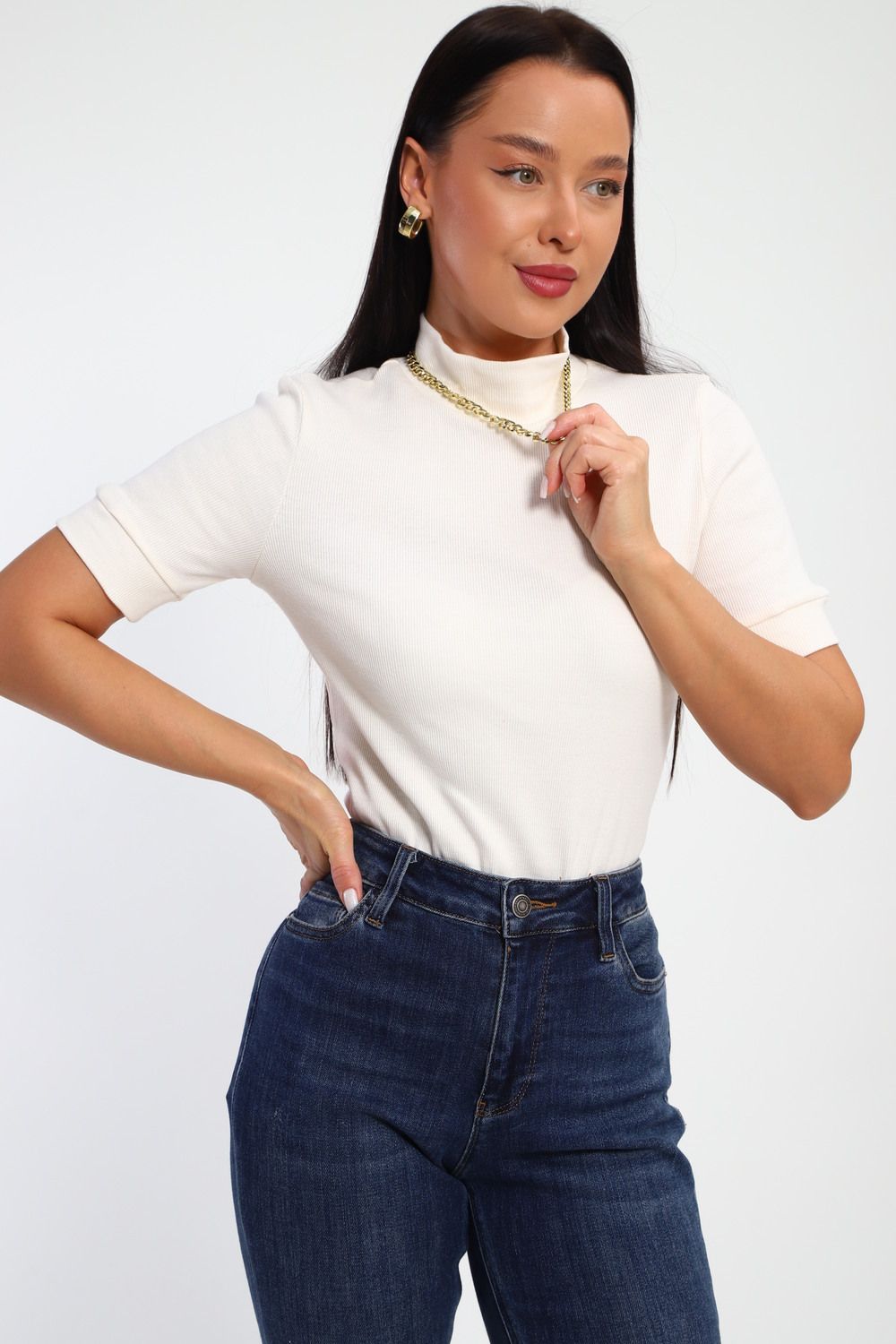 Водолазка женская с коротким рукавом 32105 - кремовый