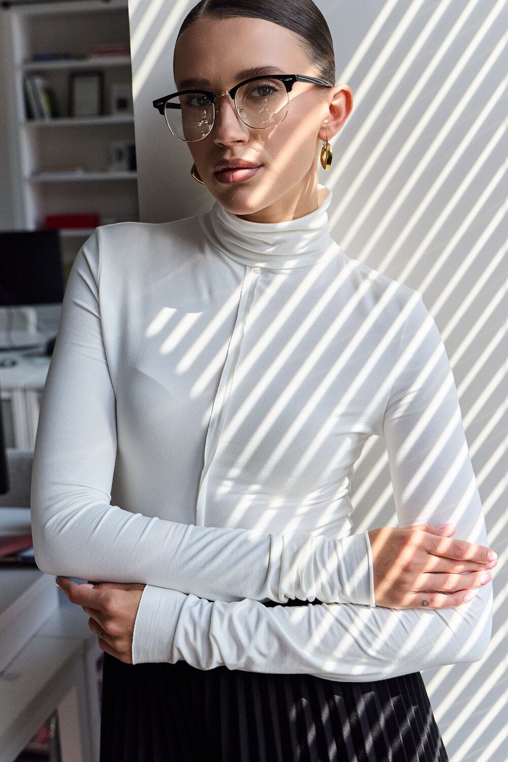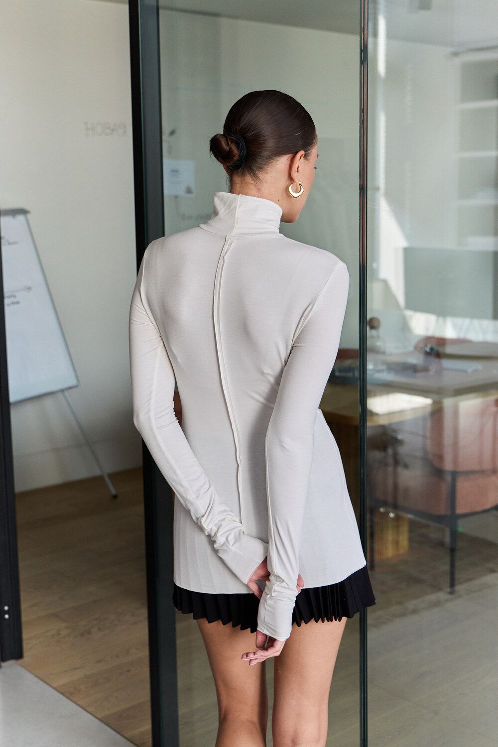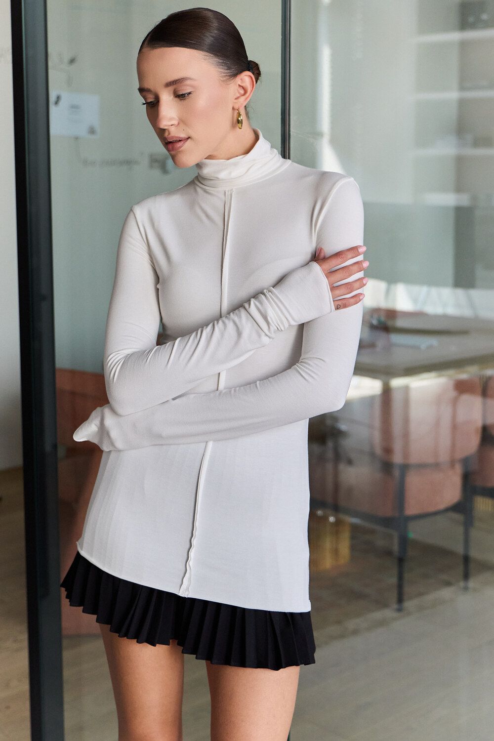 Водолазка облегающая с необработанными швами - молочный