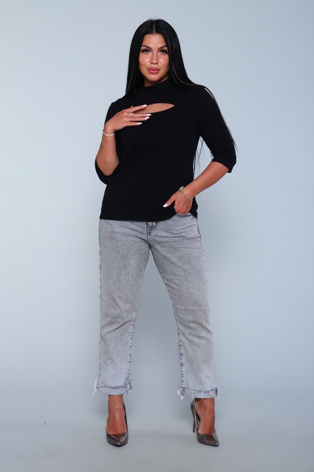 Водолазка женская с декоративным вырезом на груди может быть не только уютной и комфортной, но и соблазнительной. Крой модели делает образ легким и кокетливым! Водолазка полуприлегающего кроя, с длиной рукава ниже уровня локтя, выполнена из мягкого трикотажа, прекрасно подойдёт как для прохладного лета и межсезонья, так и для зимнего времени года. Стильная водолазка - это классика в моде, она подходит как для праздничных мероприятий, так и на каждый день: для школы, работы и отдыха. Модель имеет большой размерный ряд: с 48р по 58р. Повседневная водолазка впишется в любой гардероб, подойдет под любые стили в одежде и подарит комфорт.