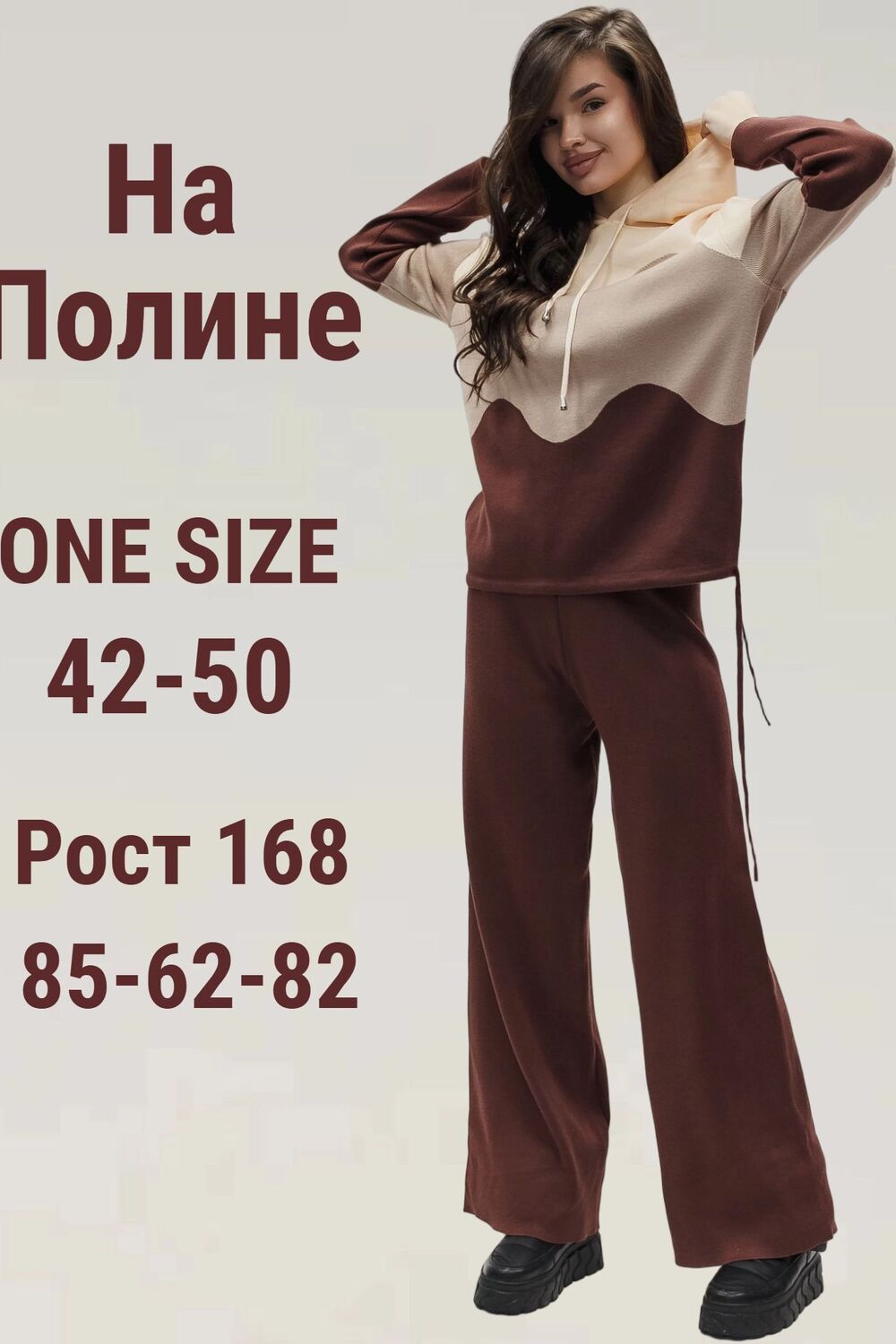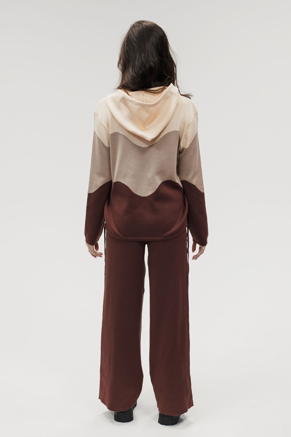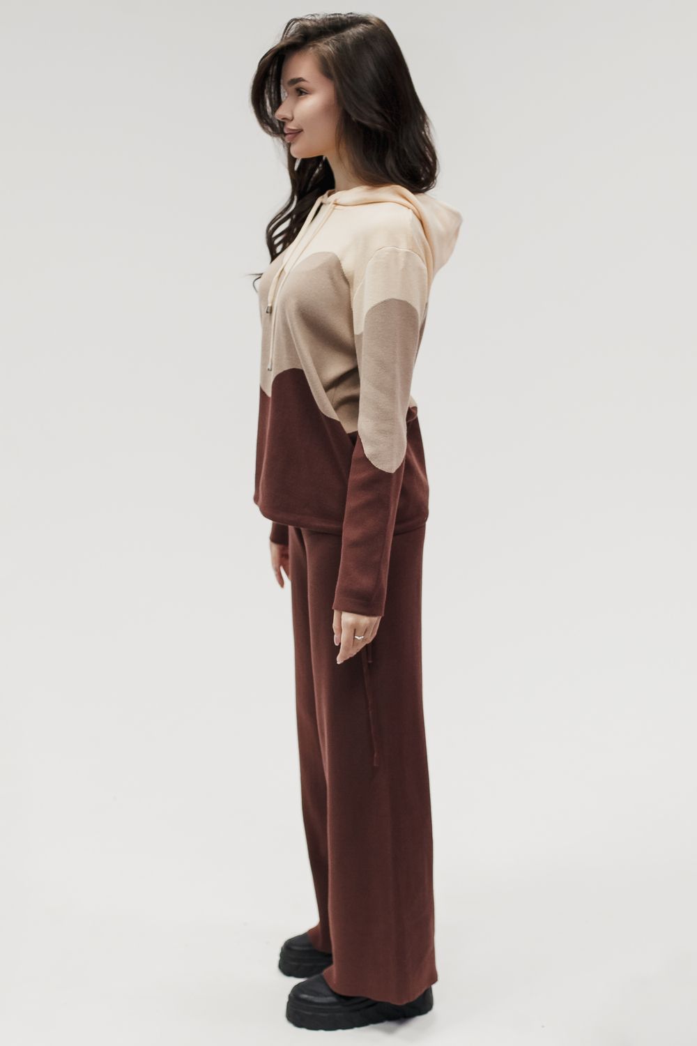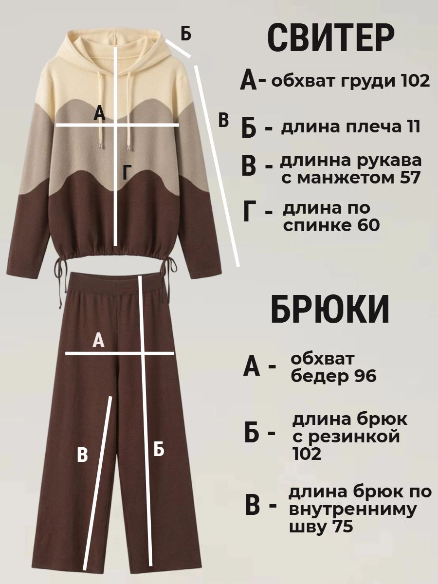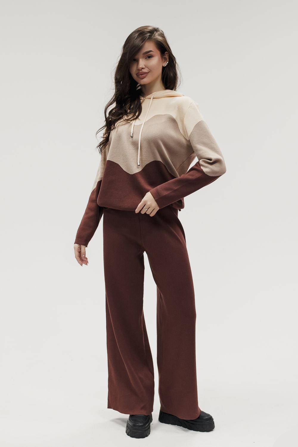 Вязаный костюм трикотажный с брюками "Волна" - коричневый