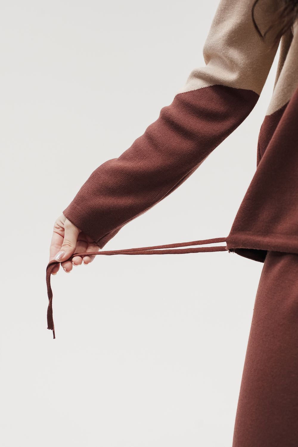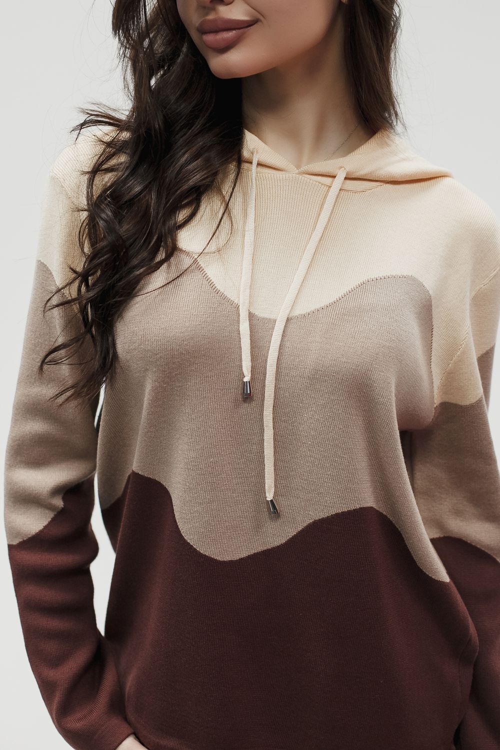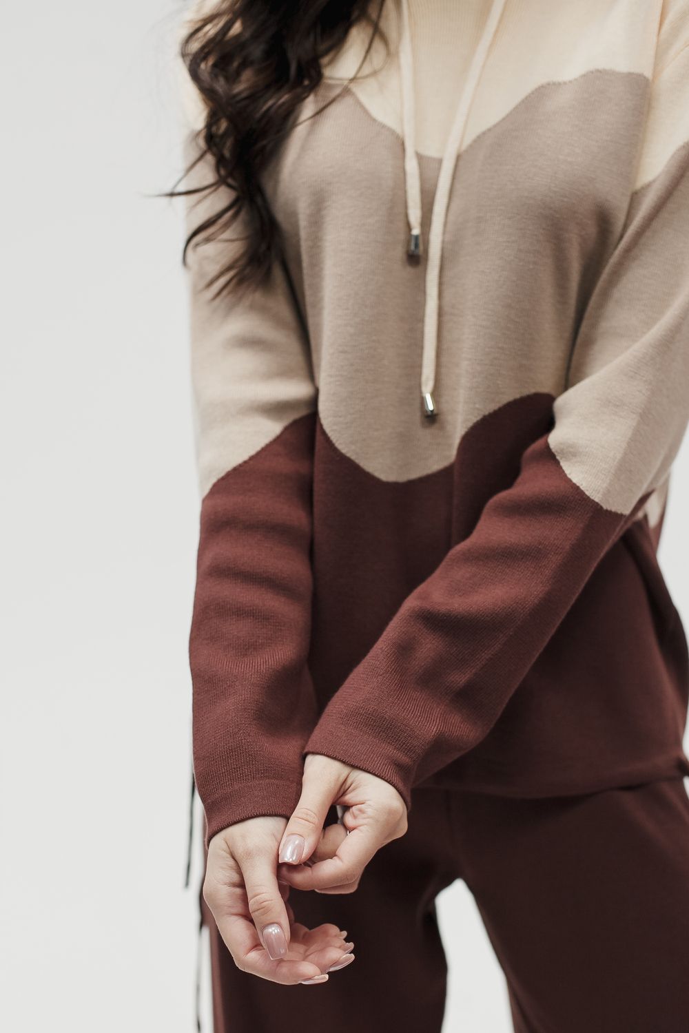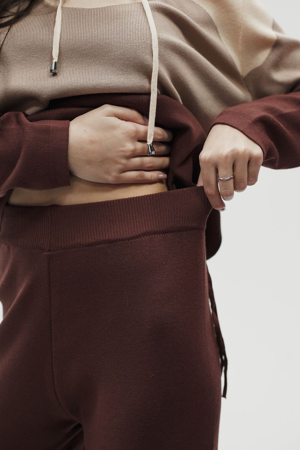Вязаный костюм трикотажный с брюками "Волна" - коричневый