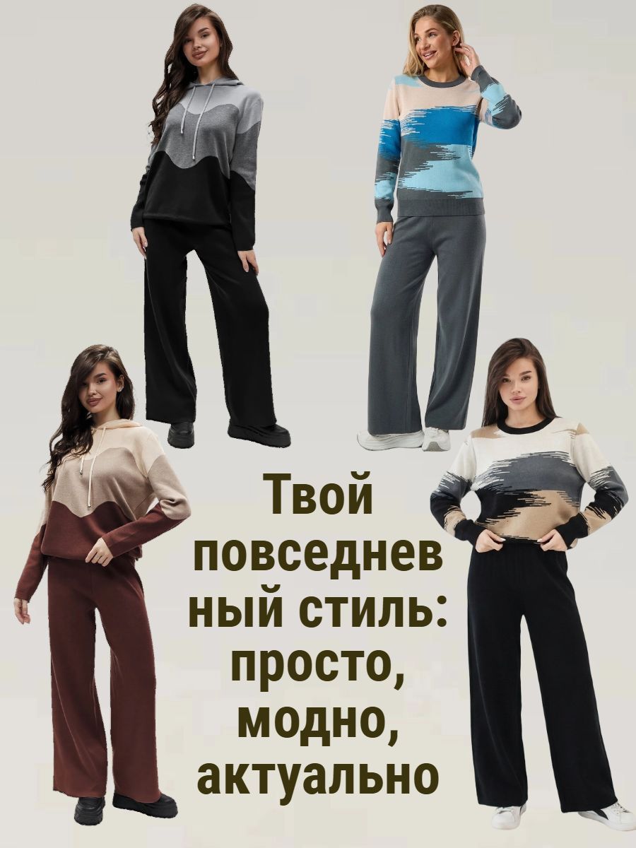 Вязаный костюм трикотажный с брюками "Волна"