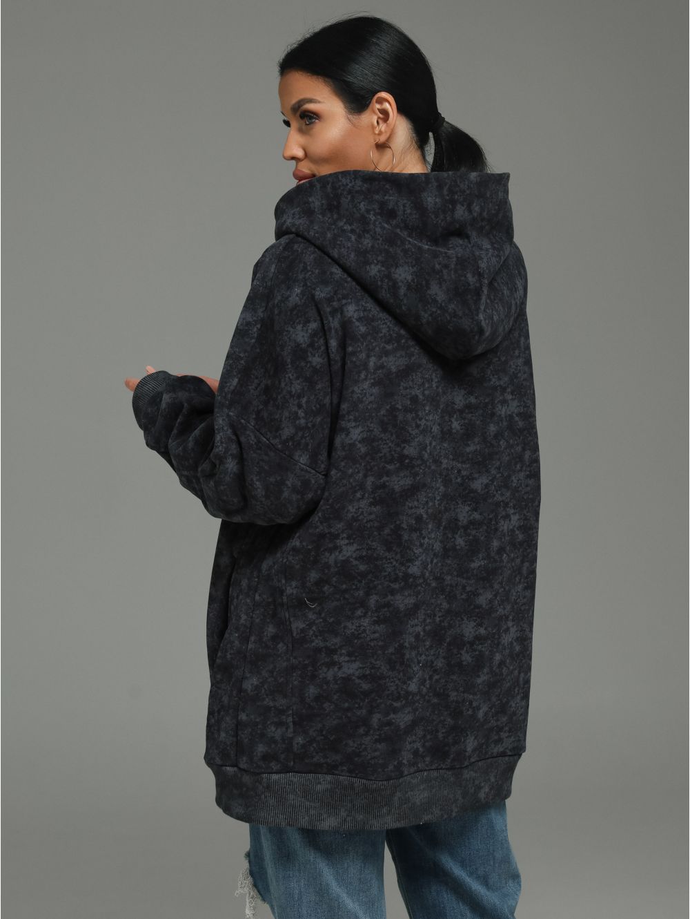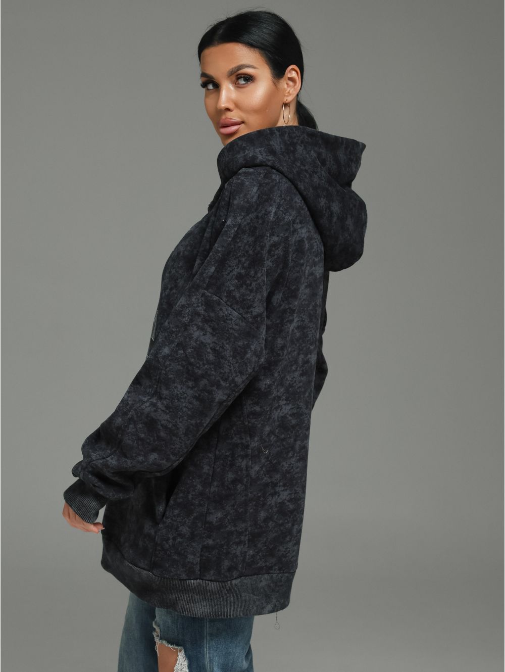 Худи женское oversize с капюшоном. С прорезными карманами.